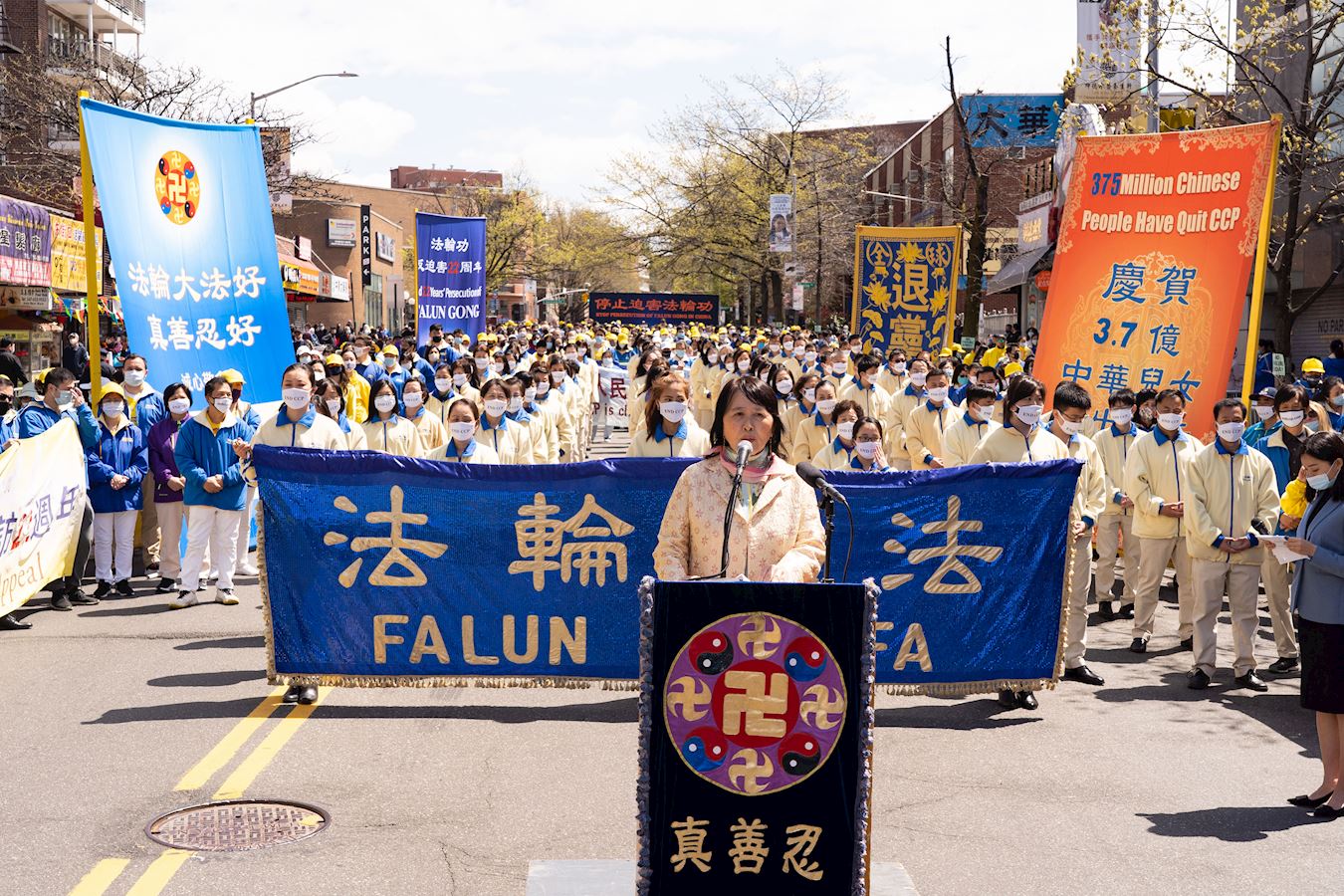 和平上访的真相,并呼吁世人了解法轮功真相,认清中共的邪恶,唾弃中共,三退保平安。 图1~5:二零二一年四月十八日,逾千名纽约法轮功学员在法拉盛举办纪念“四二五”和平上访二十二周年。 |