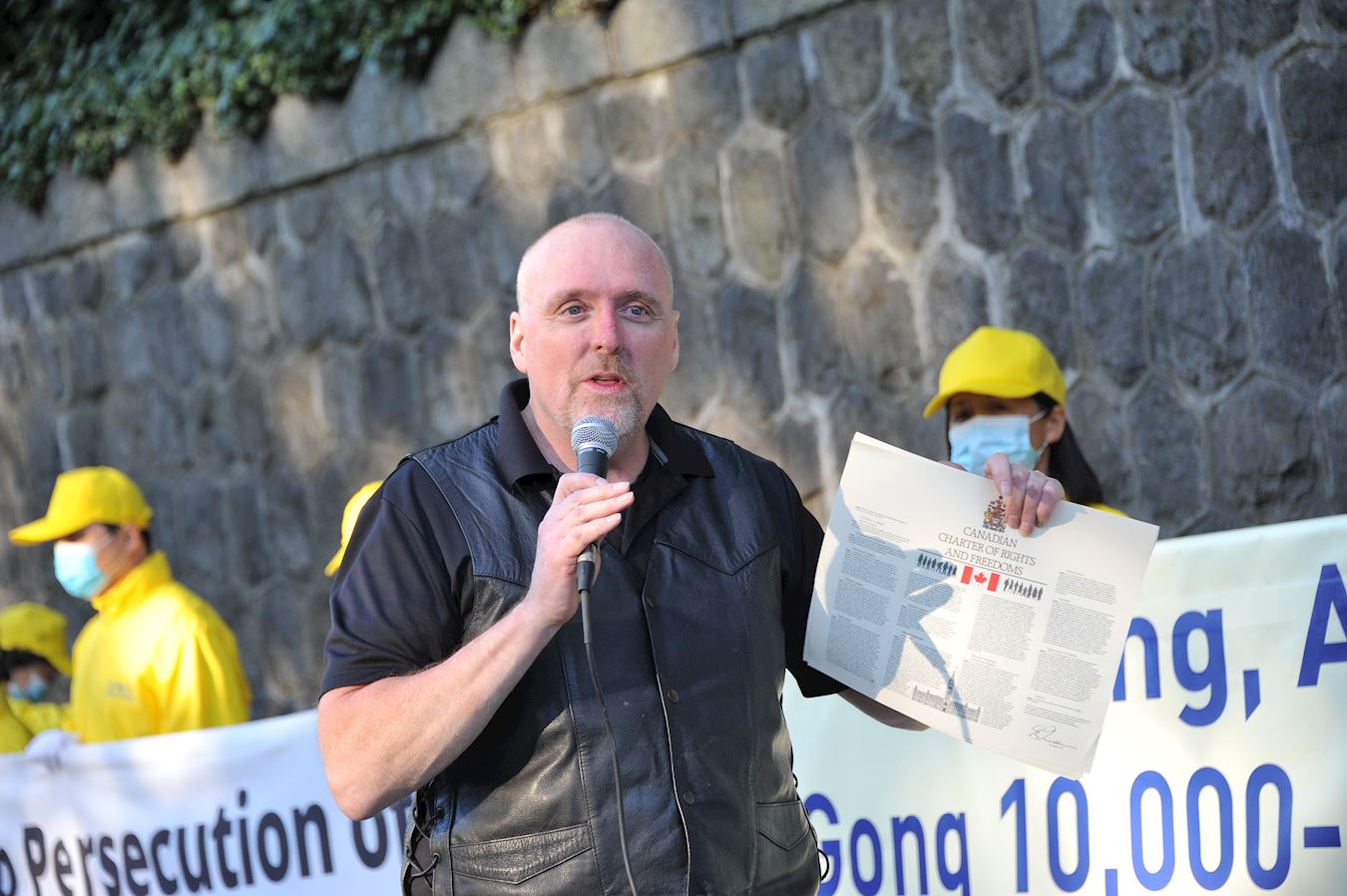 活动中,温哥华法轮大法协会发表声明,谴责中共二十二年来对法轮功这样一个和平的、信仰真、善、忍的团体进行惨无人道的迫害,甚至大规模活摘器官;同时也谴责中共近来对香港法轮功学员真相点的袭击和破坏,呼吁共同制止迫害。