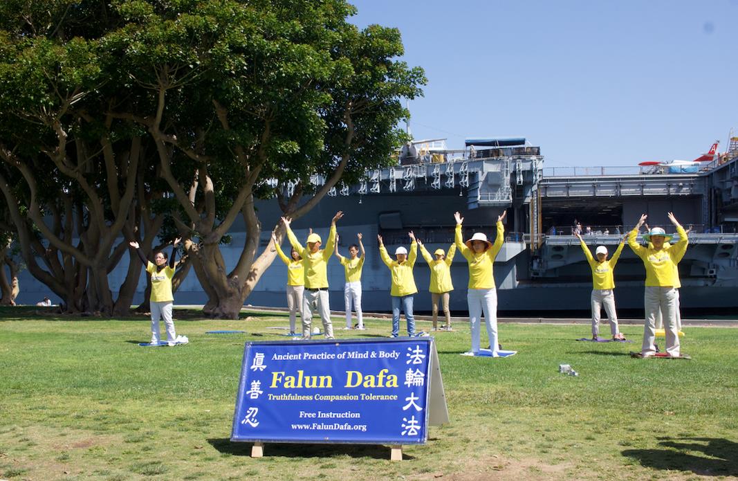 ![]() 图1~5:圣地亚哥部分学员来到中途岛码头举办集体炼功、讲真相活动纪念四·二五 |