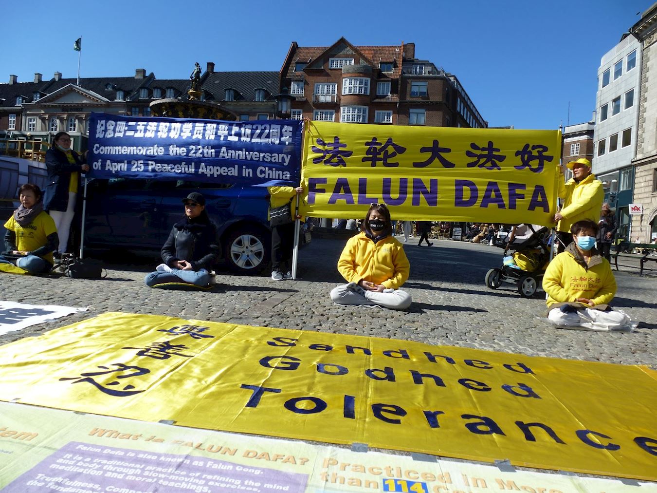 哥本哈根市中心地带,正值政府在中国病毒蔓延趋于平稳期间,有限度的开放了人们的活动空间,在初春的艳阳中,路上行人熙熙攘攘。大法弟子们展开今天的主题横幅,在悠扬的炼功音乐中,或展示功法,或笑脸迎向过往的行人,递上一张传单,向他们讲述大法弟子们向世人传递的重要信息。