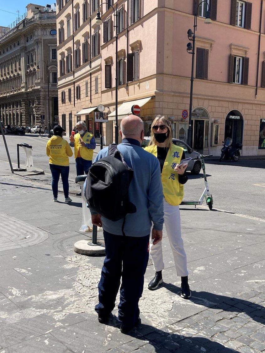 【明慧网二零二一年四月二十八日】二零二一年四月二十五日,罗马法轮功学员在罗马市圣西尔维斯特广场(Piazza San Silvestro)举行了讲真相活动,纪念一九九九年“四·二五”万名法轮功学员在北京和平理性上访;并揭露中共二十二年来对法轮功持续的残酷迫害