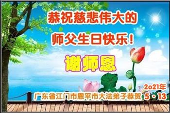 广东省江门市恩平市大法弟子恭祝师父生日快乐!普天同庆世界法轮大法日!恭贺法轮大法洪传二十九周年!