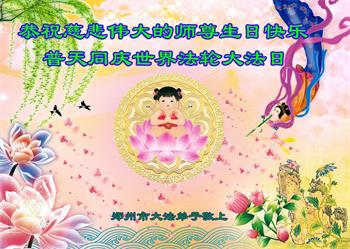 郑州大法弟子恭贺世界法轮大法日暨师尊华诞(19条)