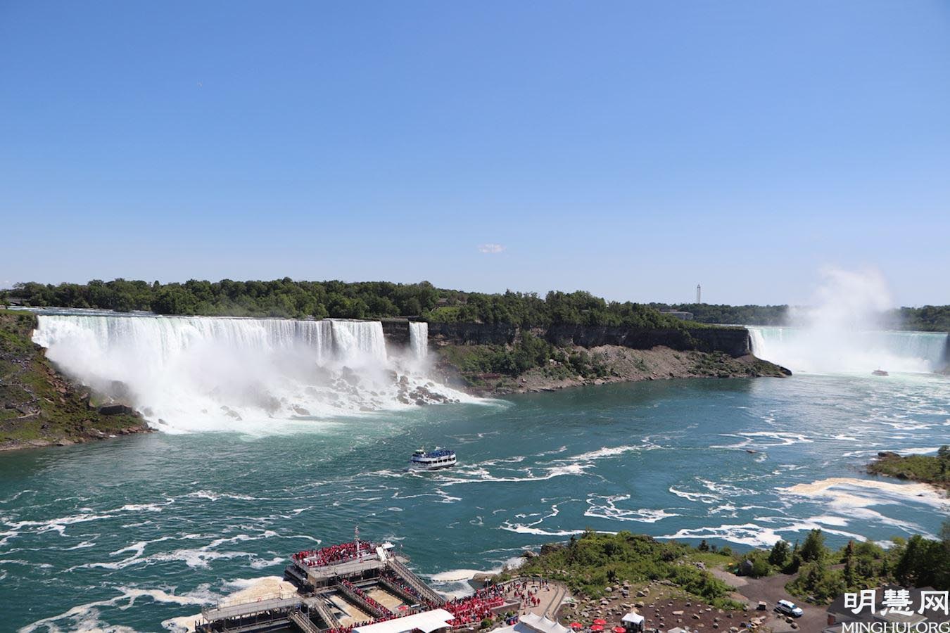 从二零一八年夏天开始,多伦多的法轮功学员在尼亚加拉瀑布建立了炼功点,每到夏天,距离瀑布开车一个半小时路程的多伦多学员每天都开车到此洪法和讲真相。