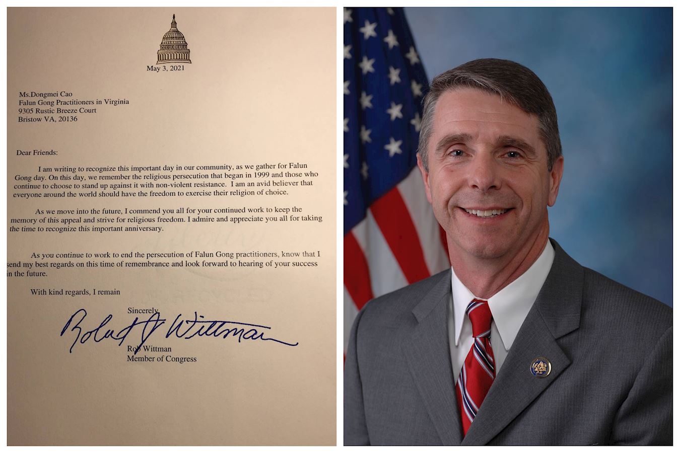 图4:美国维吉尼亚州联邦众议员罗伯特·惠特曼(Robert Wittman)为“世界法轮大法日”发贺信。