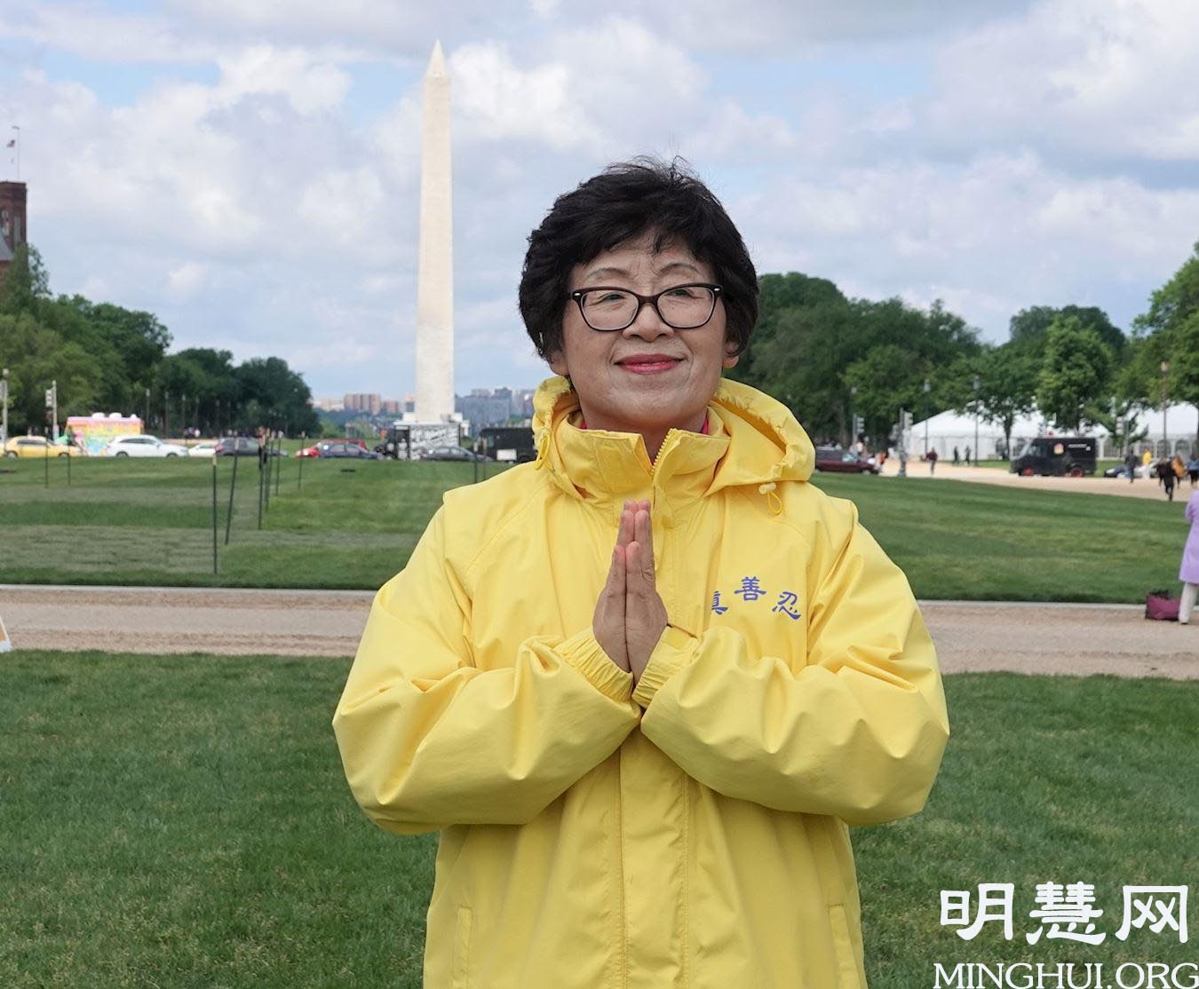 '图5:华府法轮功学员姚香兰感恩李洪志师父'