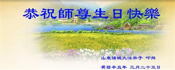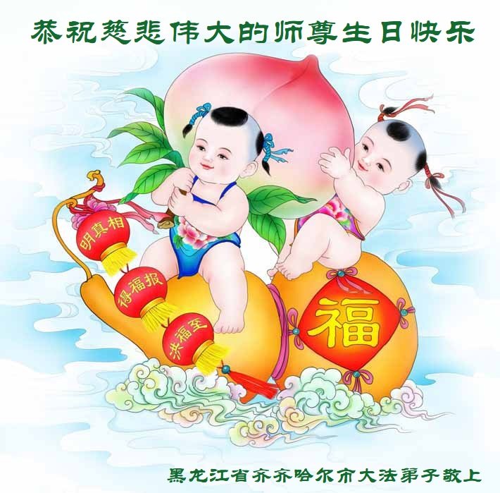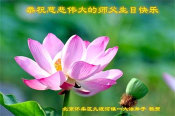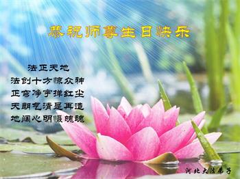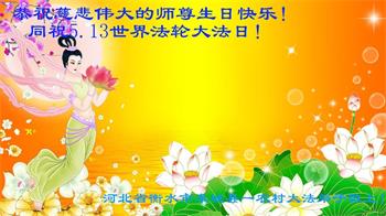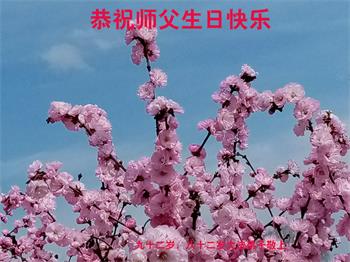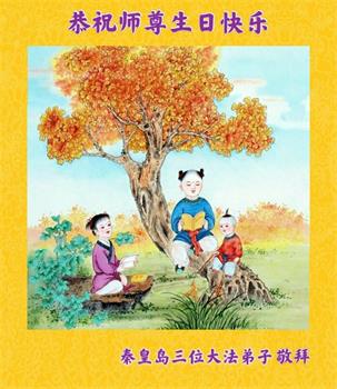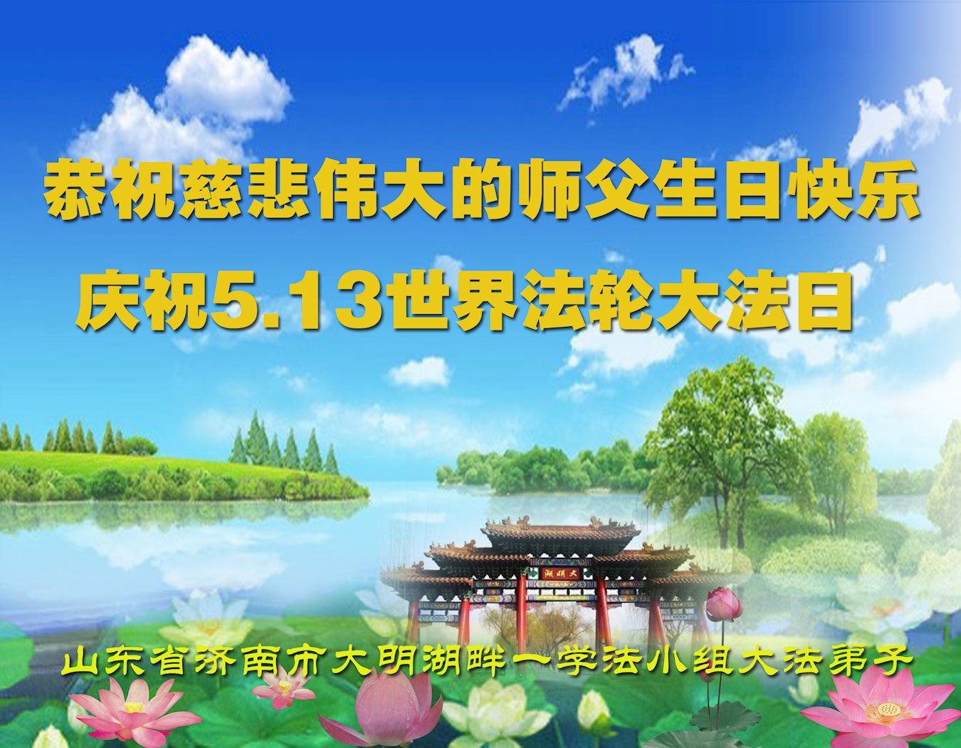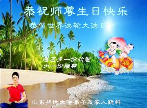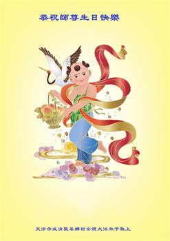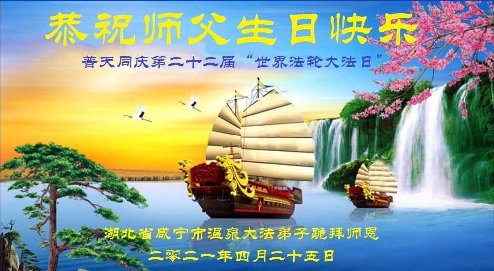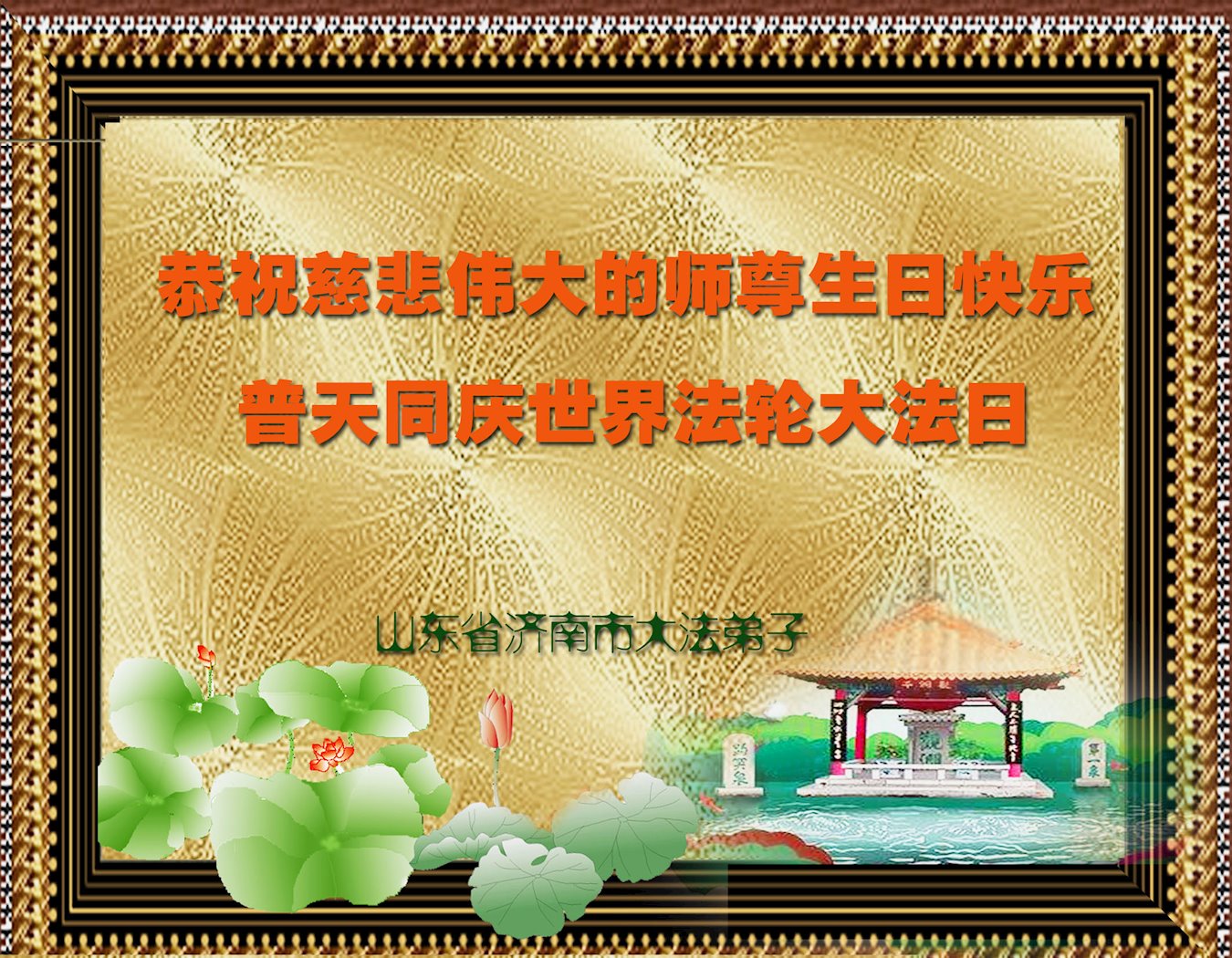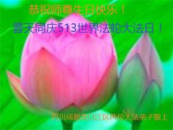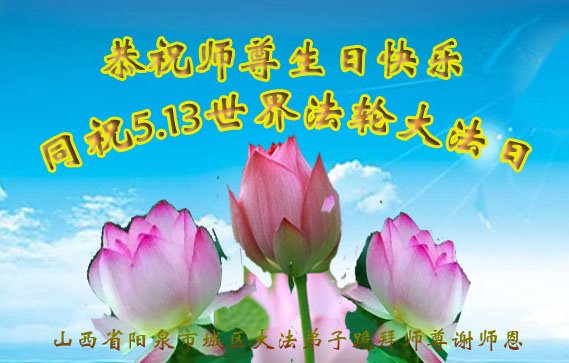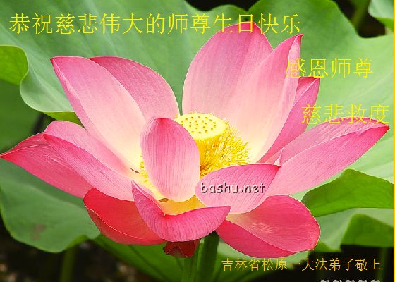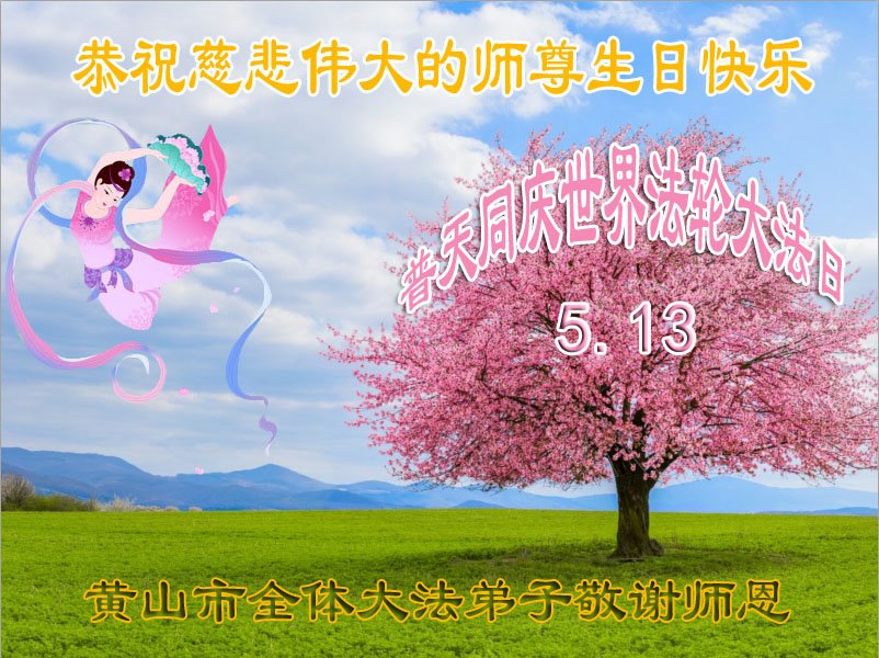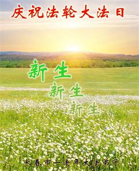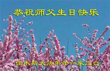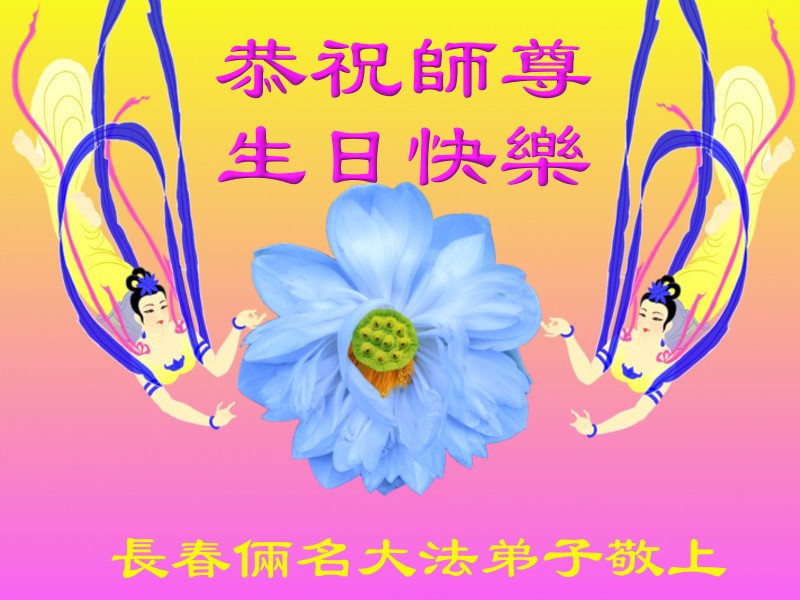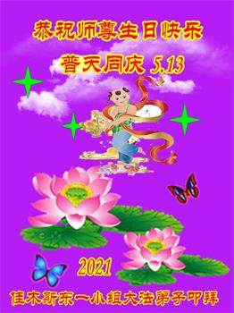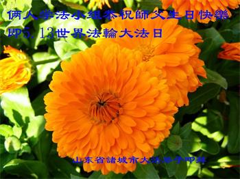 师尊您好!弟子恭祝师尊华诞!恭贺世界法轮大法日!在这普天同庆的日子里,弟子同歌同颂师尊之无量慈悲:感恩师尊把大法传给弟子,指引我们走上返本归真的大道;感恩师尊教导弟子做一个为他的生命,危难中不忘救度众生。弟子一定不忘使命,学好法,多救人,带领众生圆满随师还!弟子叩谢师恩!