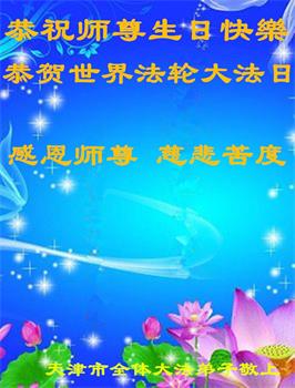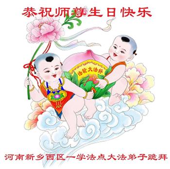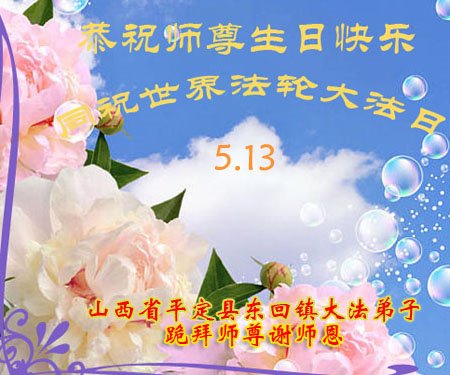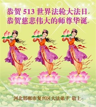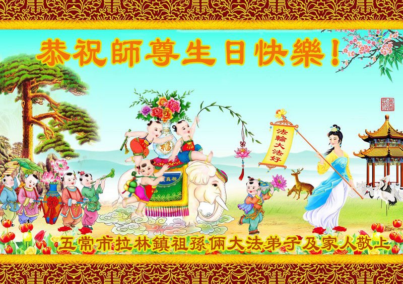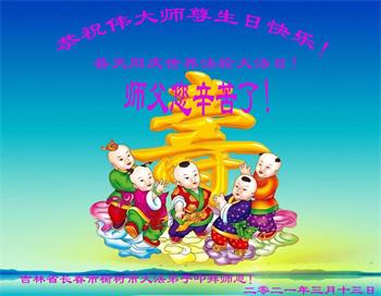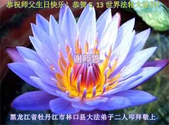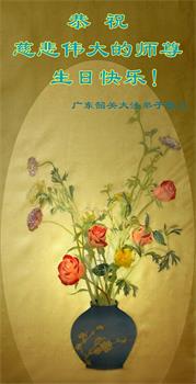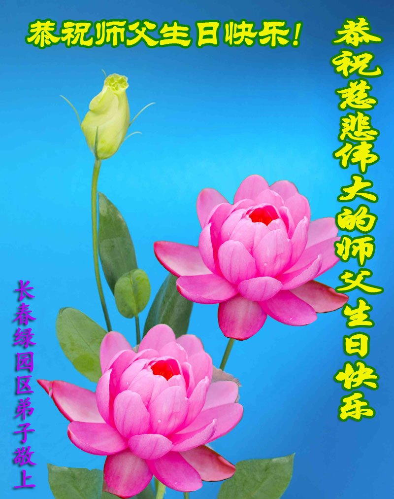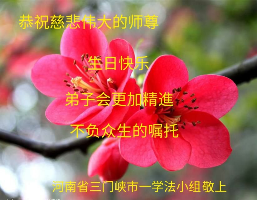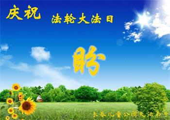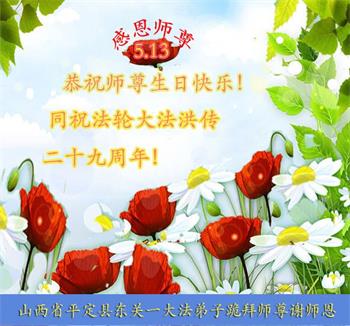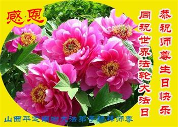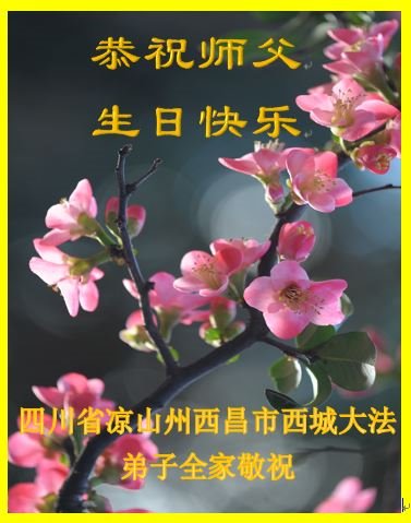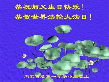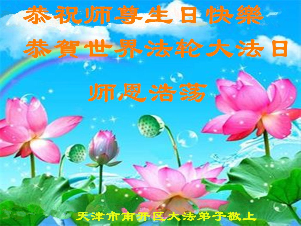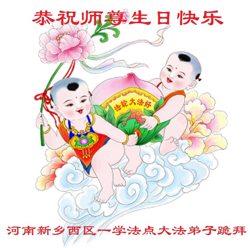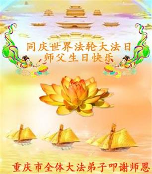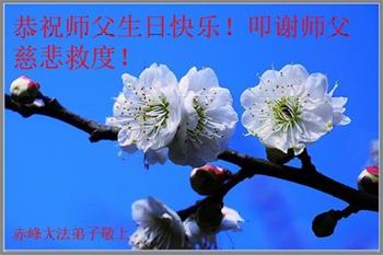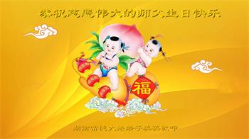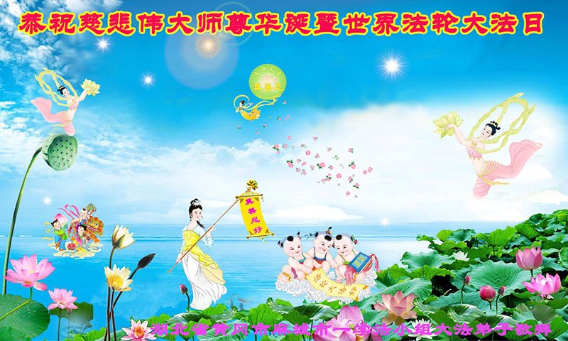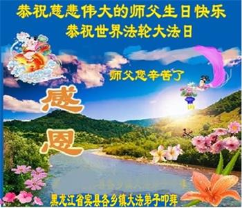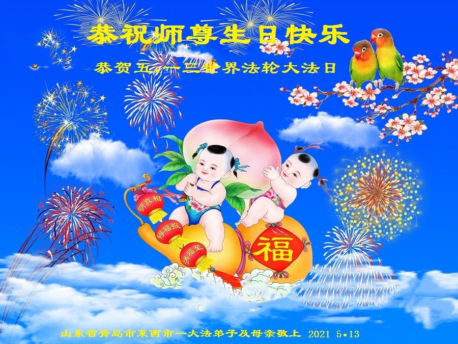 师尊您好!弟子恭祝师尊华诞!恭贺世界法轮大法日!在这普天同庆的日子里,弟子同歌同颂师尊之无量慈悲:感恩师尊把大法传给弟子,指引我们走上返本归真的大道;感恩师尊教导弟子做一个为他的生命,危难中不忘救度众生。弟子一定不忘使命,学好法,多救人,带领众生圆满随师还!弟子叩谢师恩!
