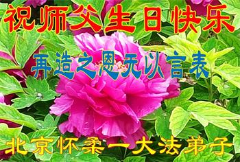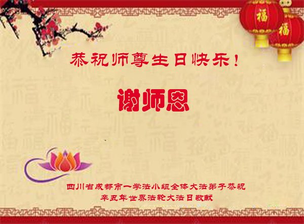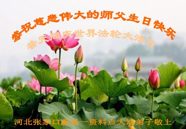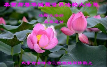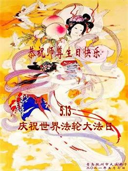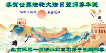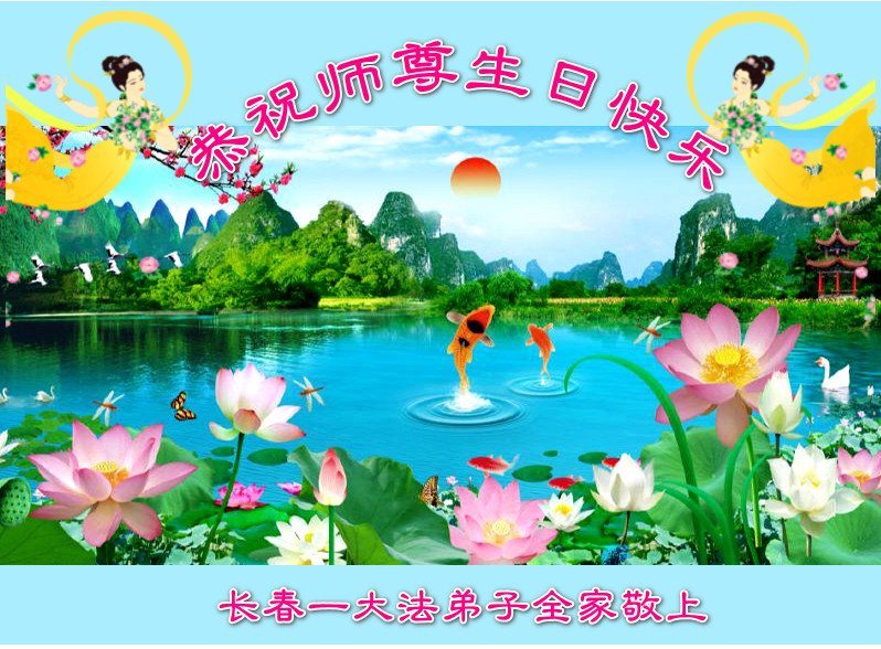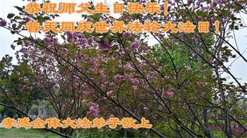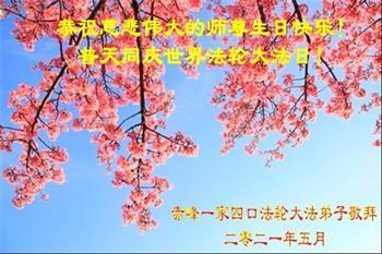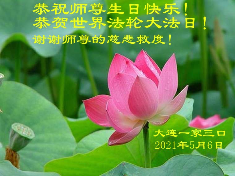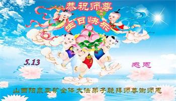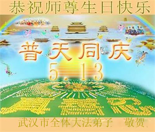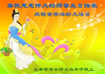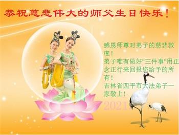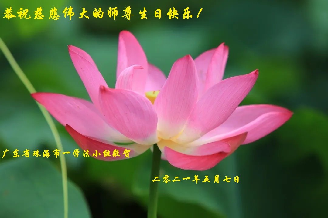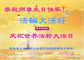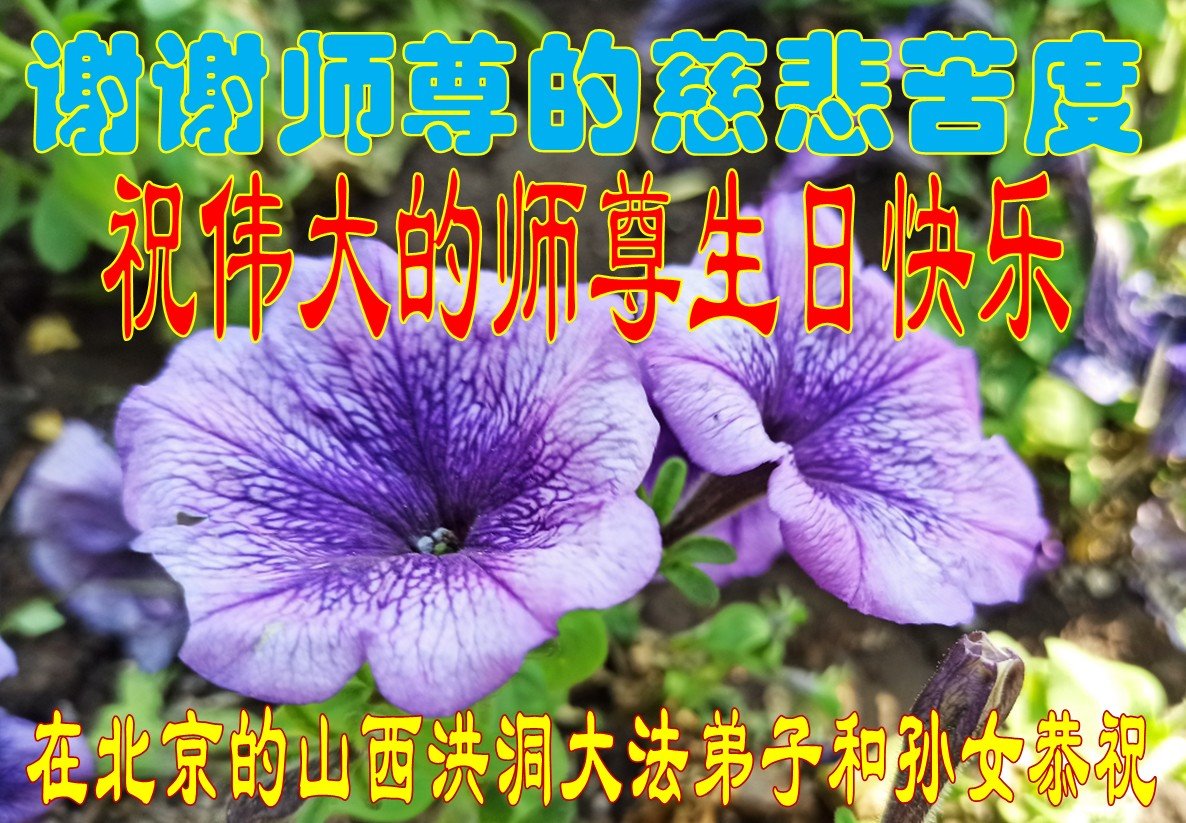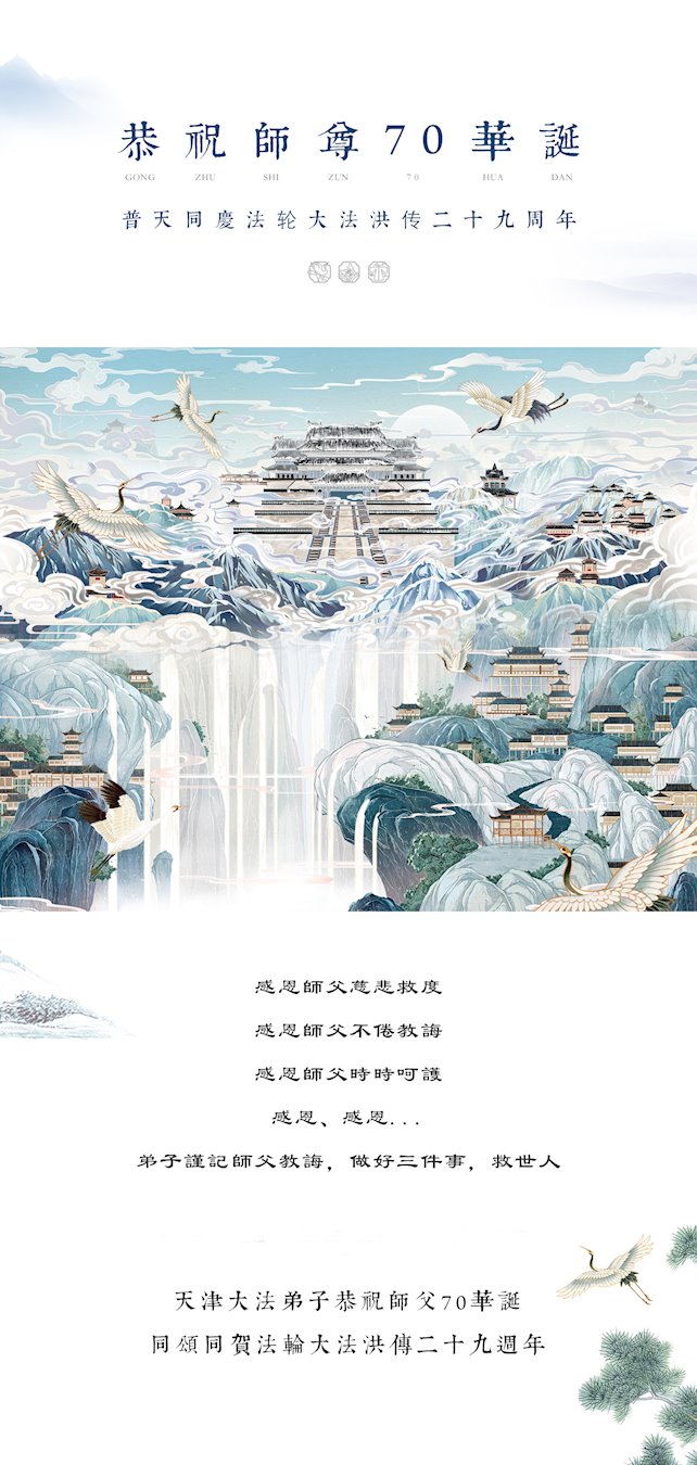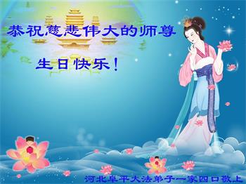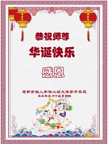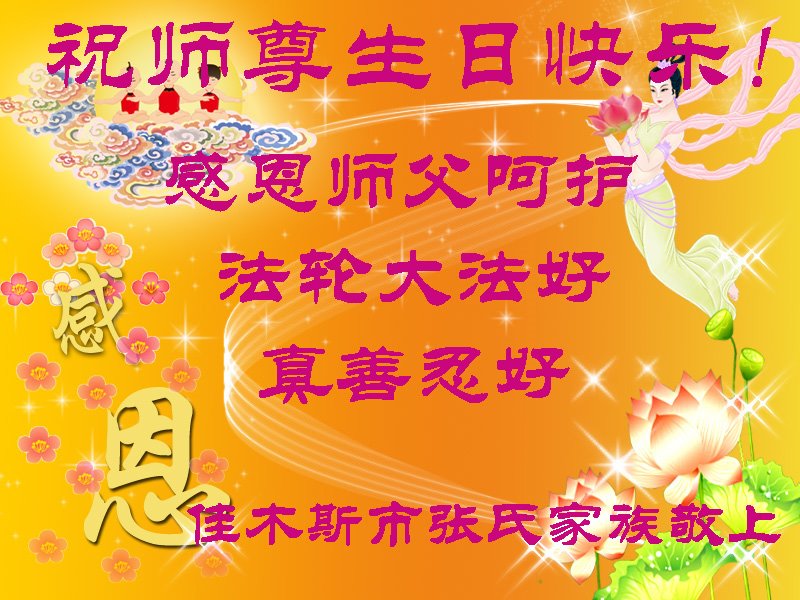 师尊您好!弟子恭祝师尊华诞!恭贺世界法轮大法日!在这普天同庆的日子里,弟子同歌同颂师尊之无量慈悲:感恩师尊把大法传给弟子,指引我们走上返本归真的大道;感恩师尊教导弟子做一个为他的生命,危难中不忘救度众生。弟子一定不忘使命,学好法,多救人,带领众生圆满随师还!弟子叩谢师恩!