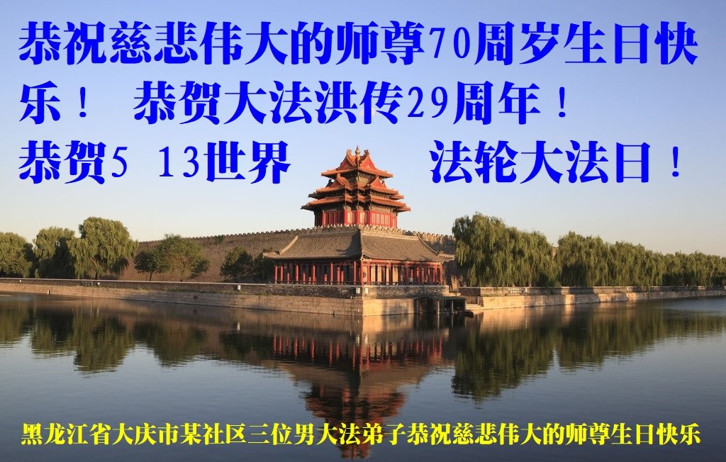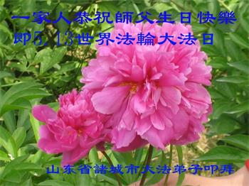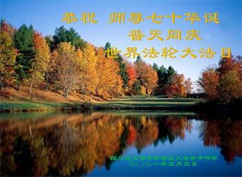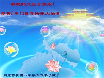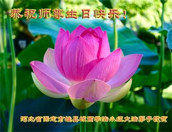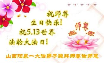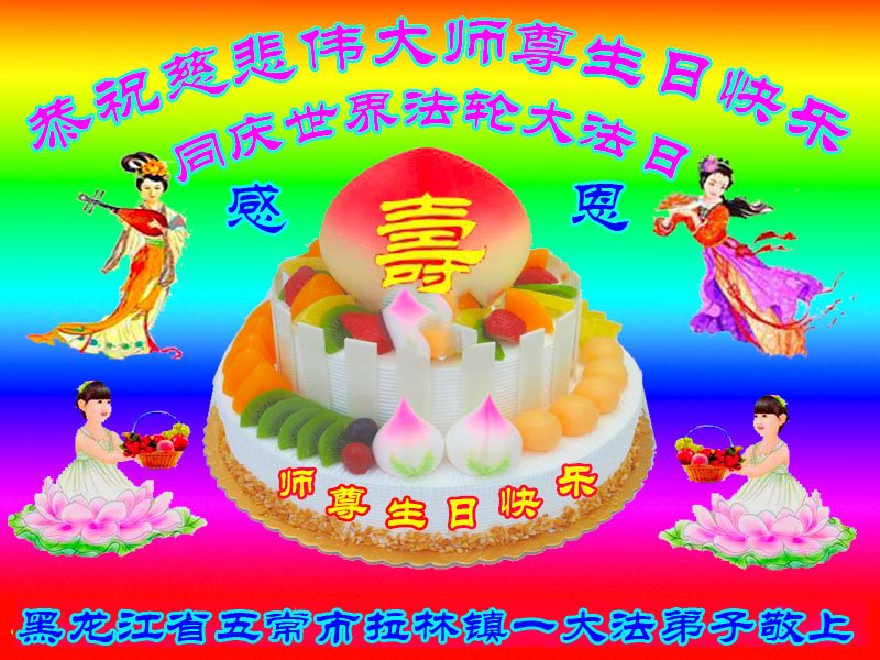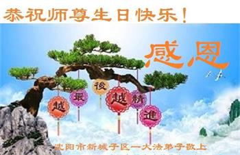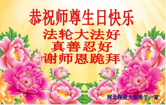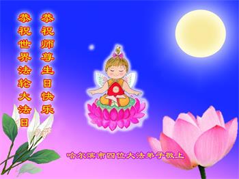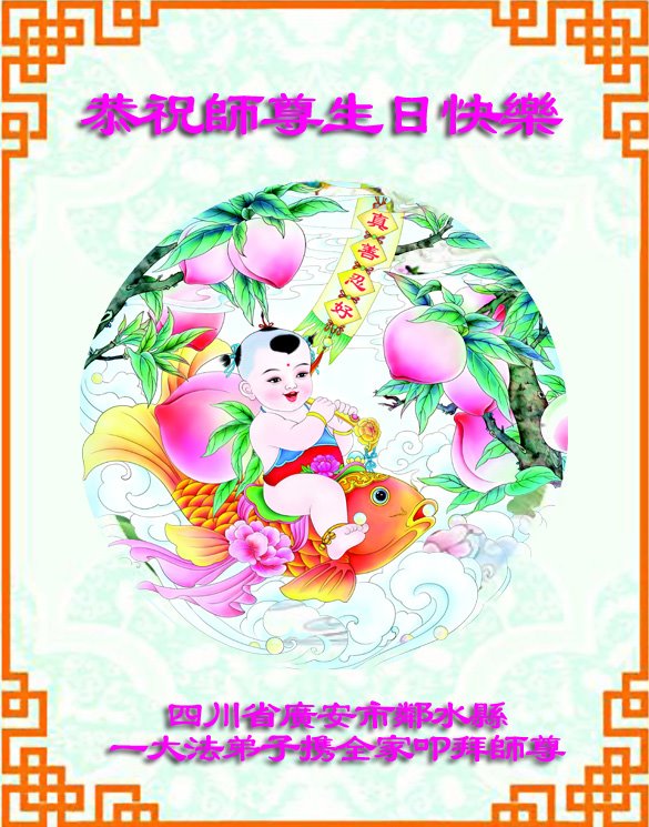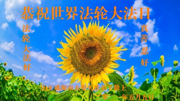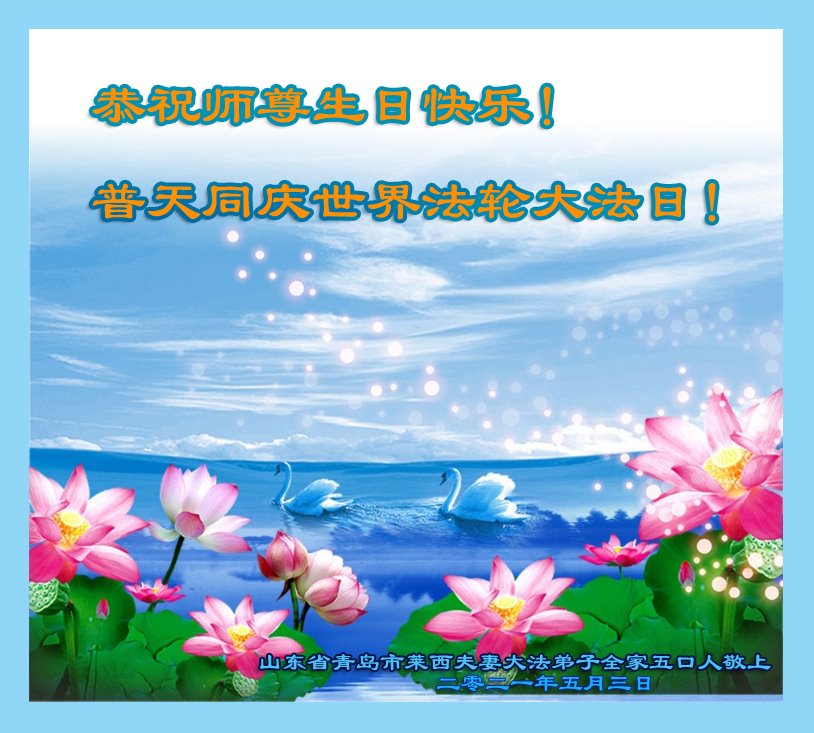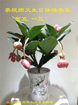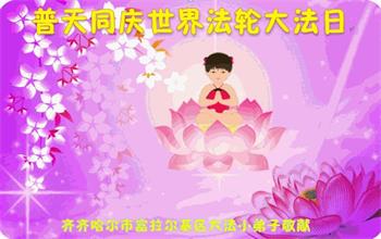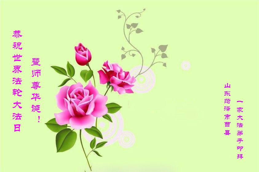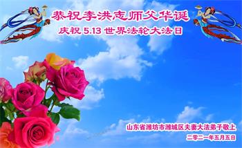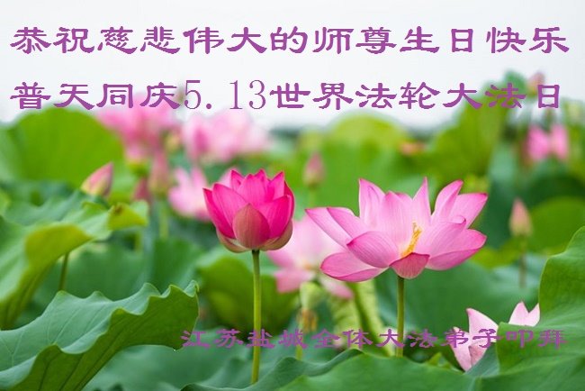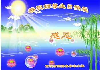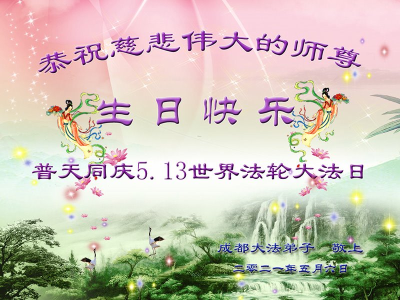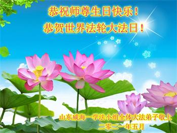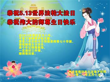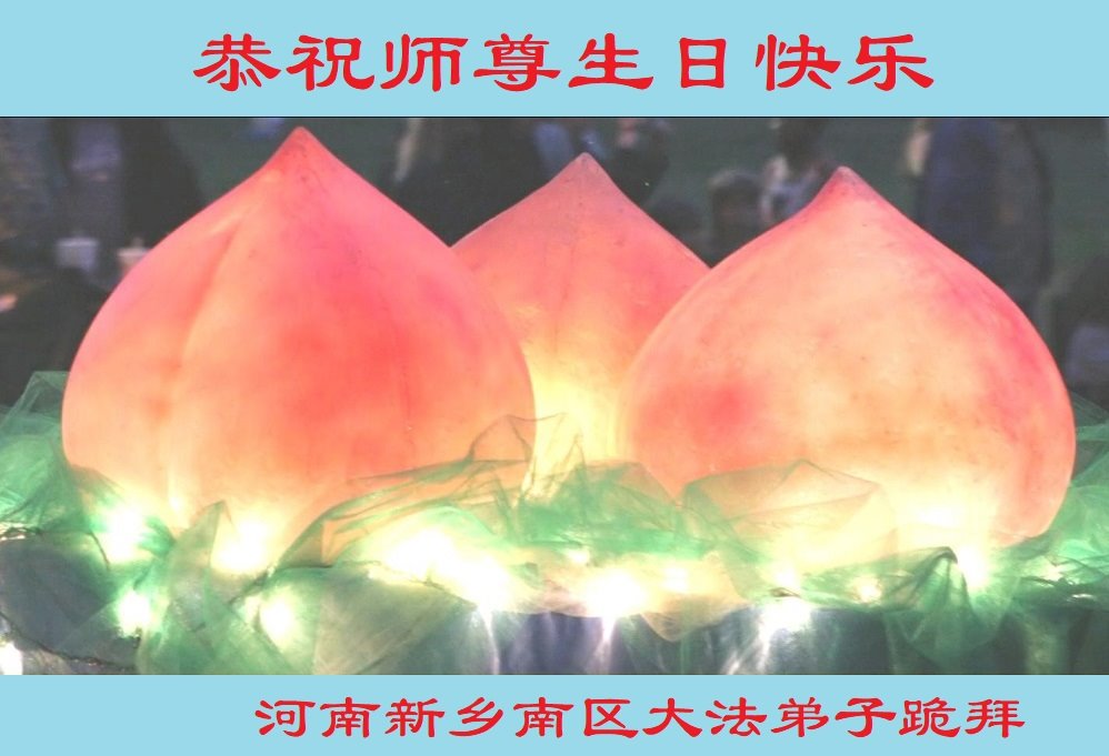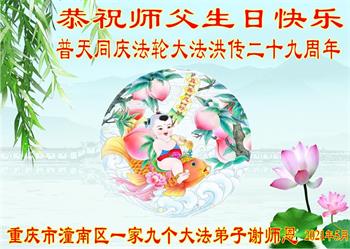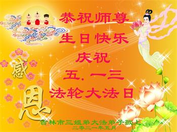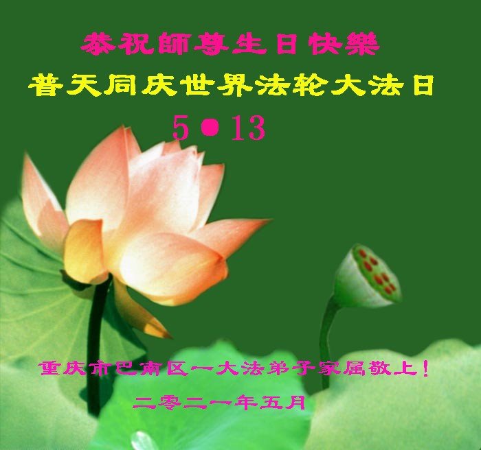 师尊您好!弟子恭祝师尊华诞!恭贺世界法轮大法日!在这普天同庆的日子里,弟子同歌同颂师尊之无量慈悲:感恩师尊把大法传给弟子,指引我们走上返本归真的大道;感恩师尊教导弟子做一个为他的生命,危难中不忘救度众生。弟子一定不忘使命,学好法,多救人,带领众生圆满随师还!弟子叩谢师恩!