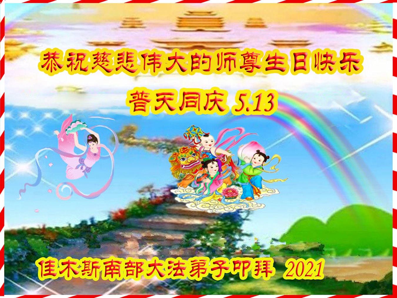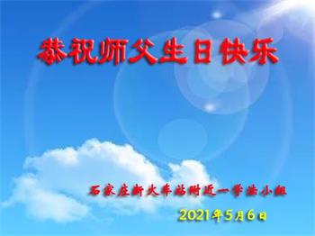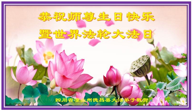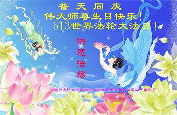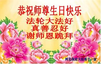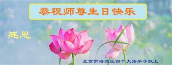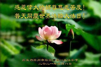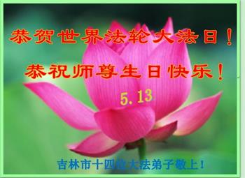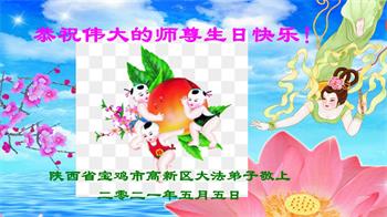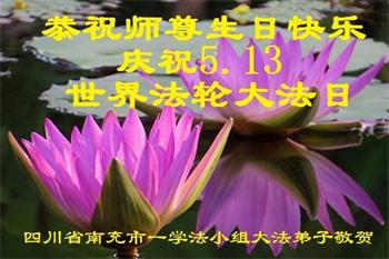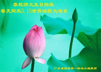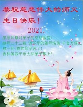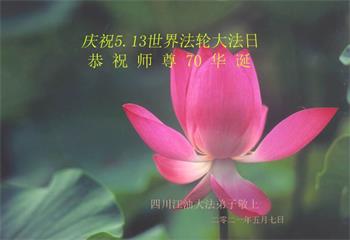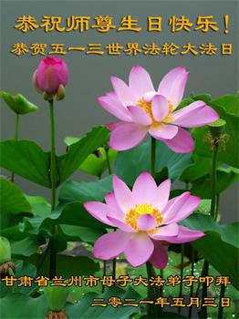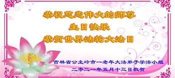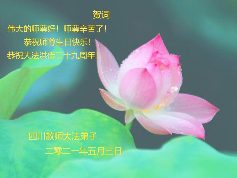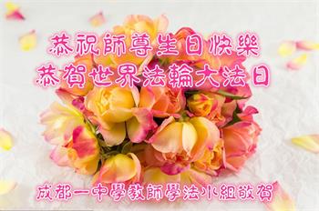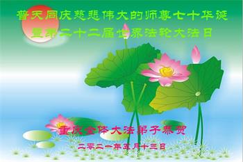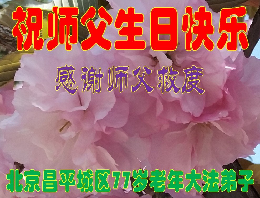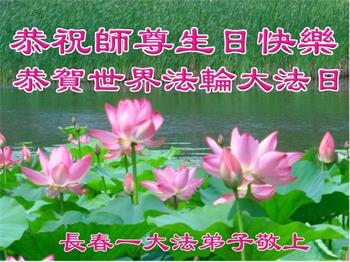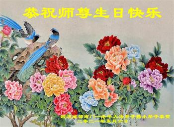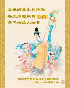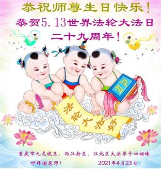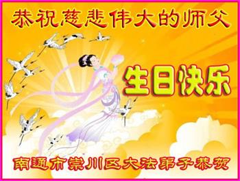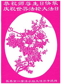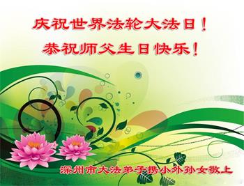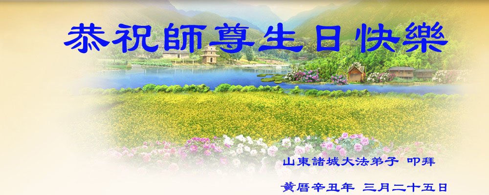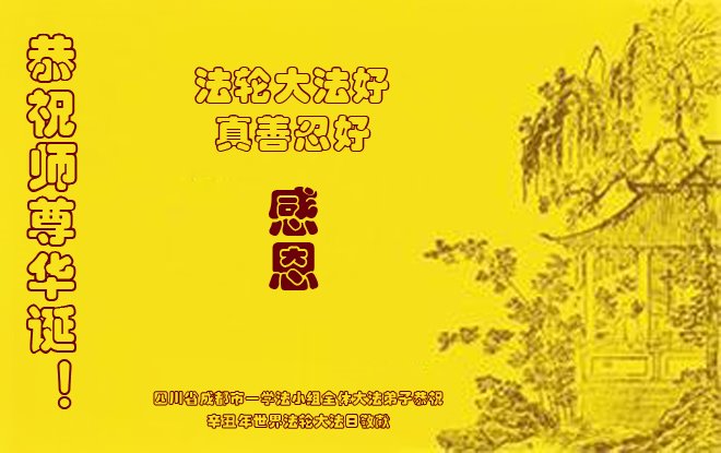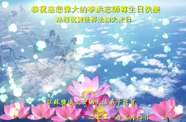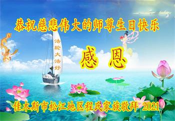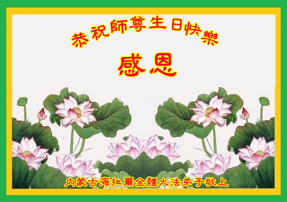师尊您好!弟子恭祝师尊华诞!恭贺世界法轮大法日!在这普天同庆的日子里,弟子同歌同颂师尊之无量慈悲:感恩师尊把大法传给弟子,指引我们走上返本归真的大道;感恩师尊教导弟子做一个为他的生命,危难中不忘救度众生。弟子一定不忘使命,学好法,多救人,带领众生圆满随师还!弟子叩谢师恩!