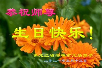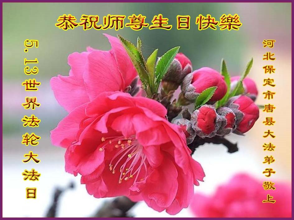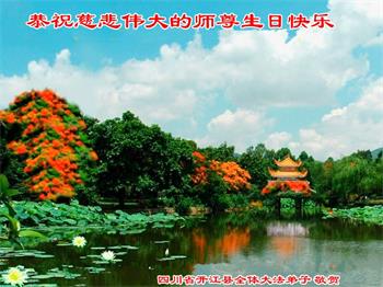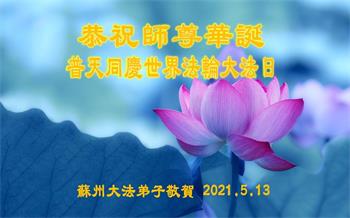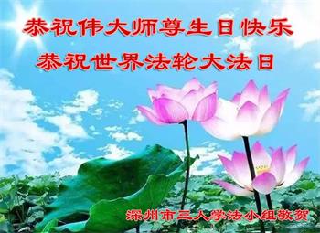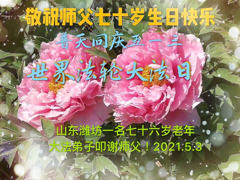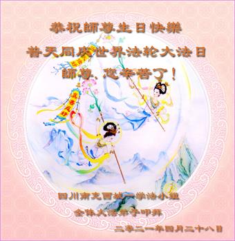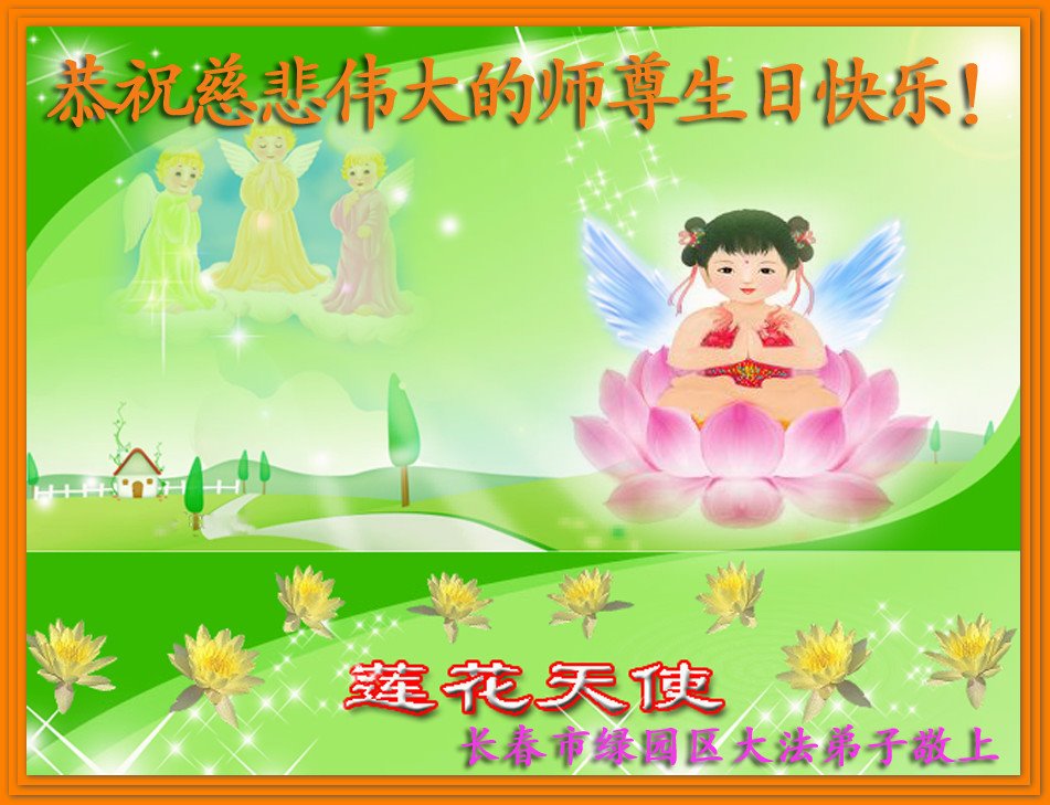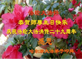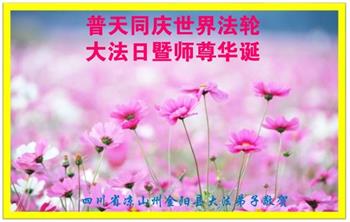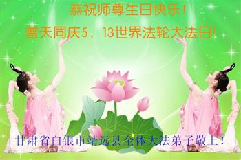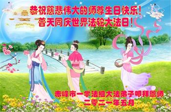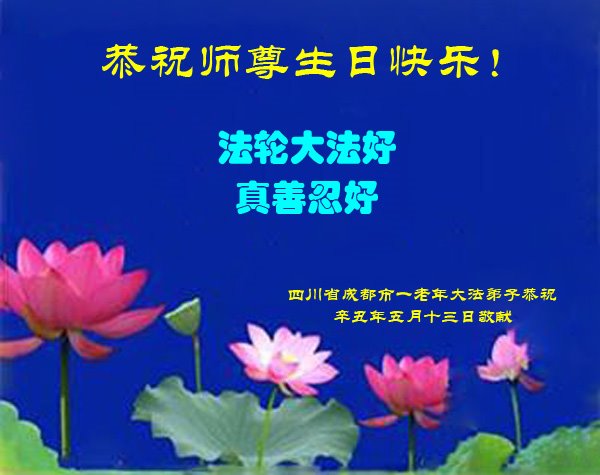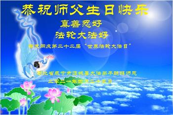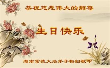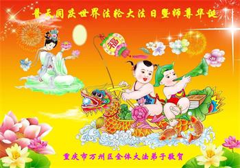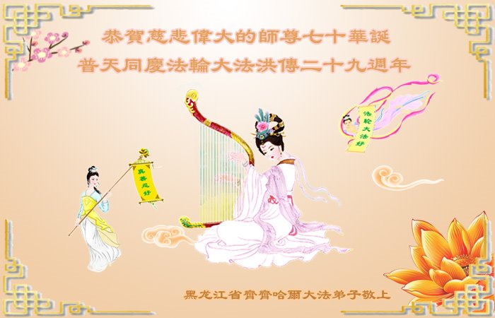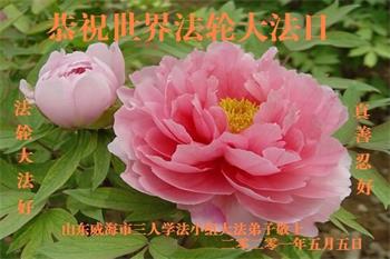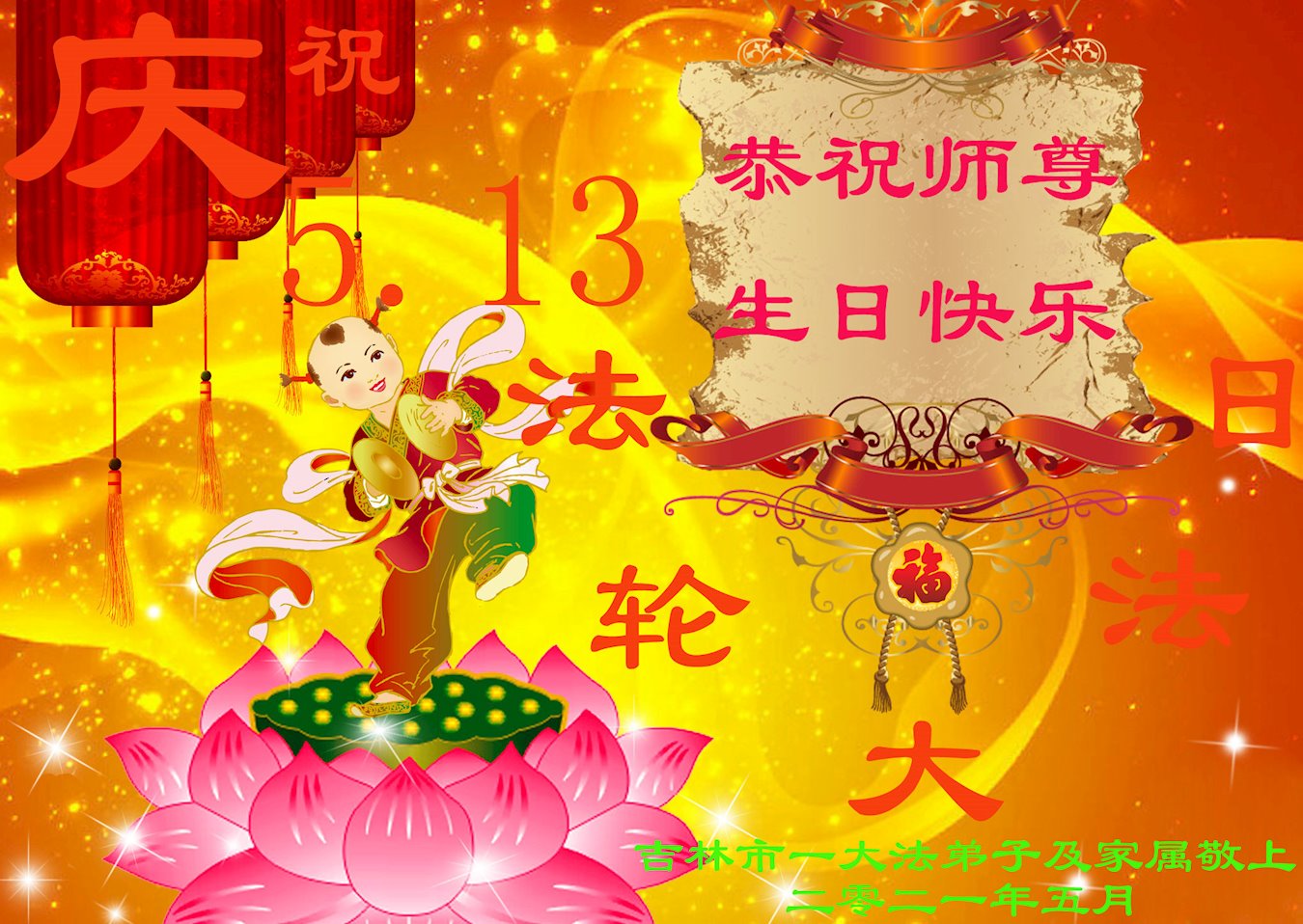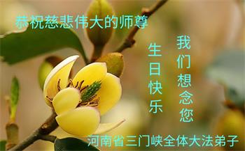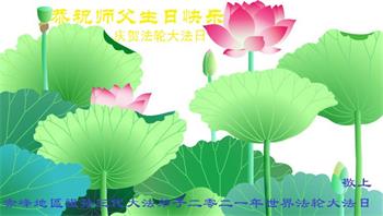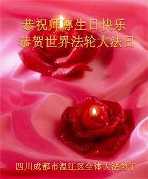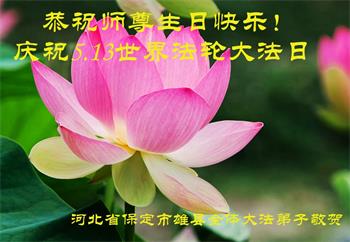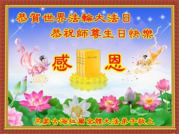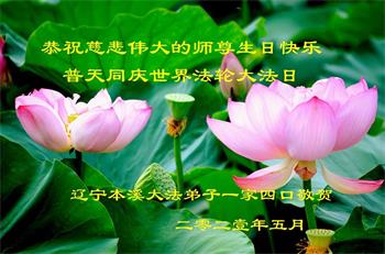 师尊您好!弟子恭祝师尊华诞!恭贺世界法轮大法日!在这普天同庆的日子里,弟子同歌同颂师尊之无量慈悲:感恩师尊把大法传给弟子,指引我们走上返本归真的大道;感恩师尊教导弟子做一个为他的生命,危难中不忘救度众生。弟子一定不忘使命,学好法,多救人,带领众生圆满随师还!弟子叩谢师恩!