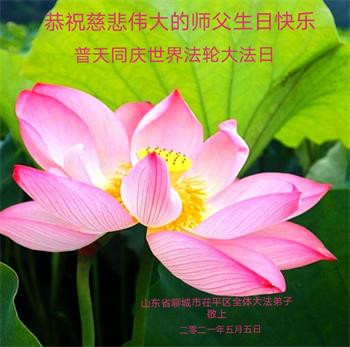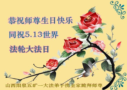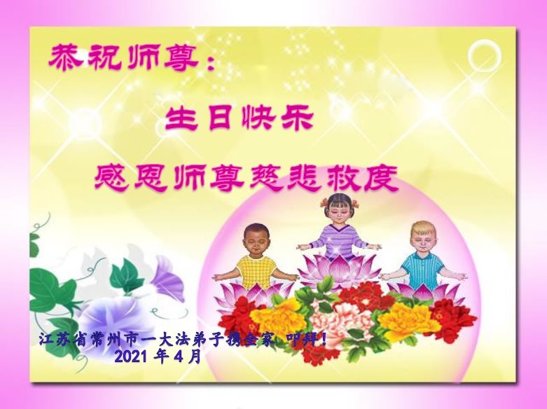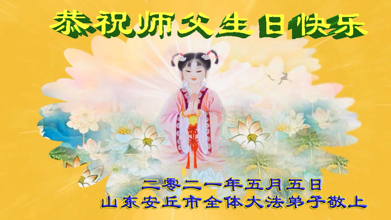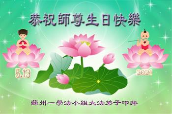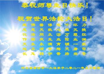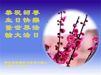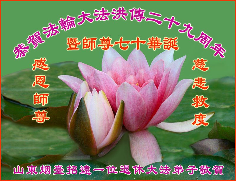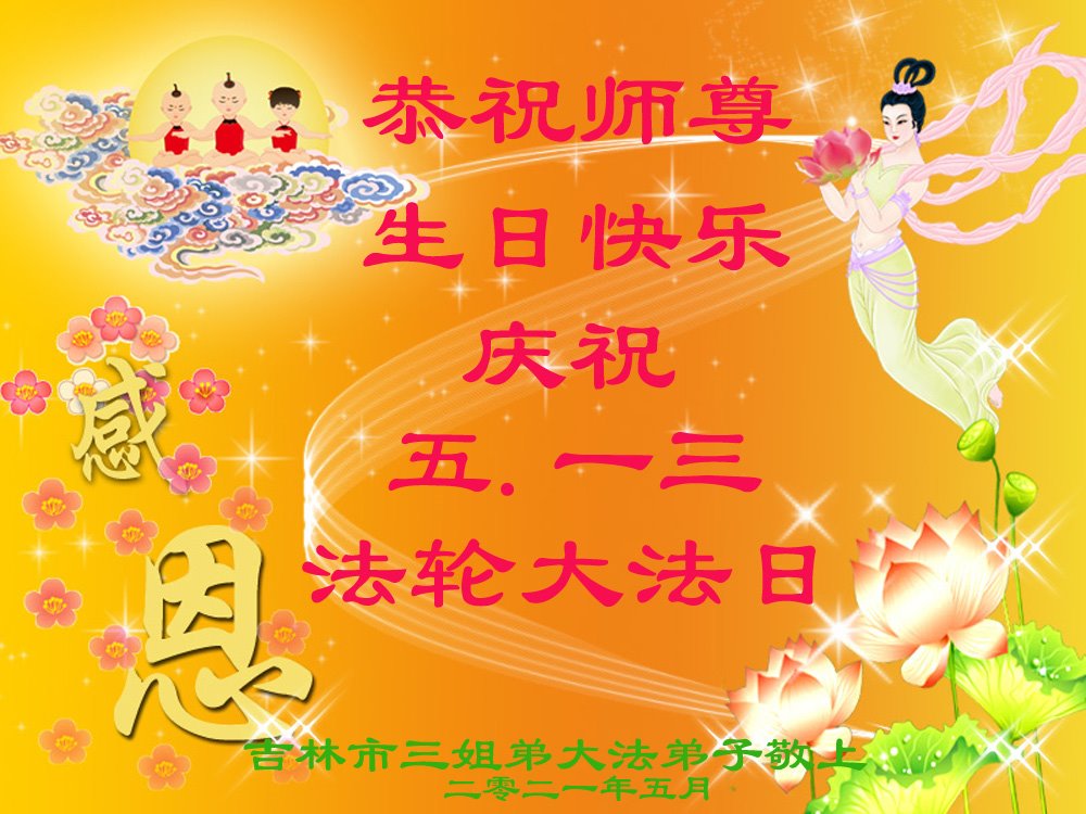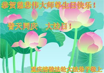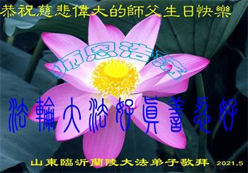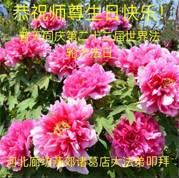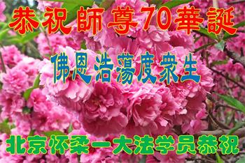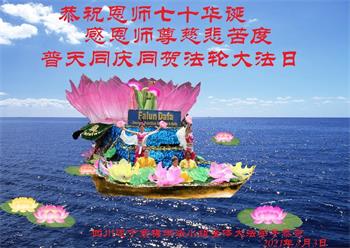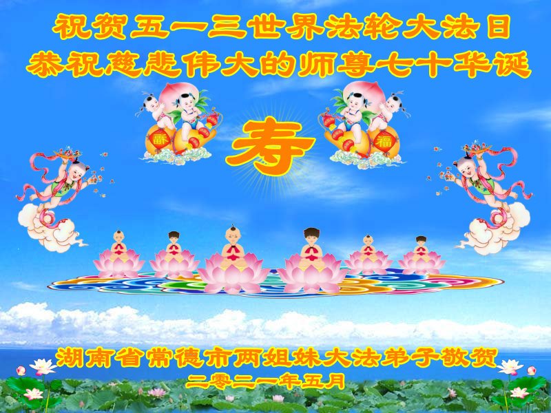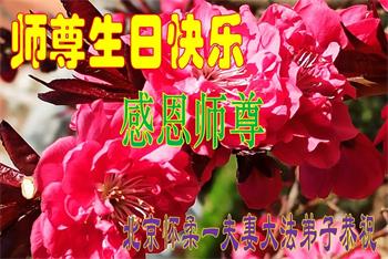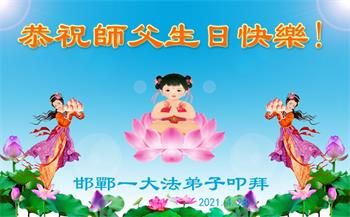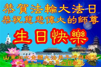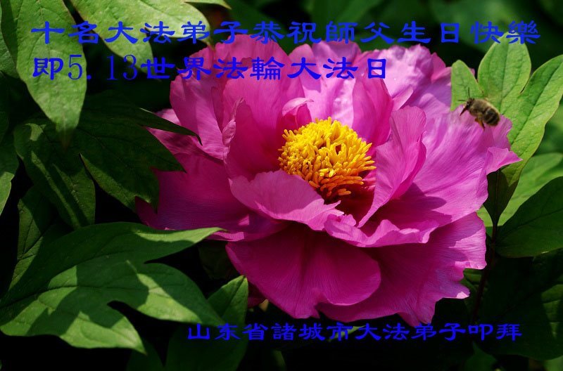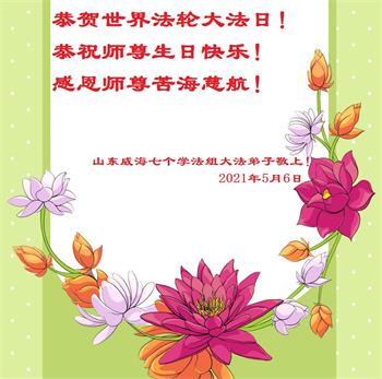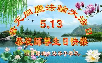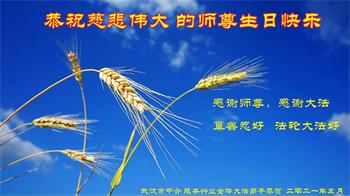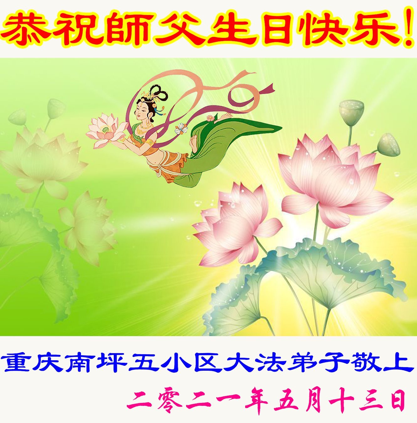 师尊您好!弟子恭祝师尊华诞!恭贺世界法轮大法日!在这普天同庆的日子里,弟子同歌同颂师尊之无量慈悲:感恩师尊把大法传给弟子,指引我们走上返本归真的大道;感恩师尊教导弟子做一个为他的生命,危难中不忘救度众生。弟子一定不忘使命,学好法,多救人,带领众生圆满随师还!弟子叩谢师恩!
