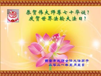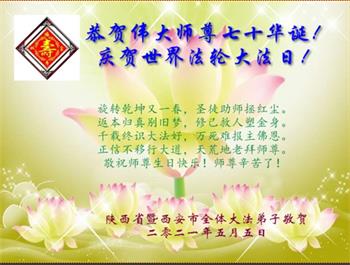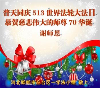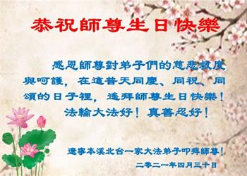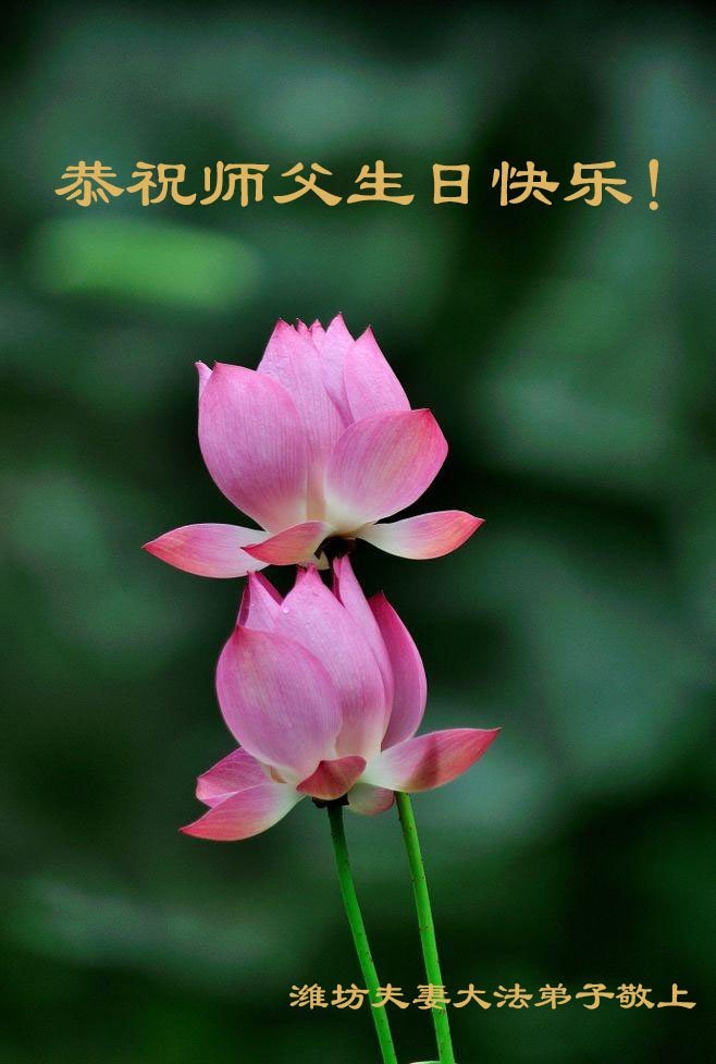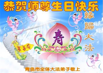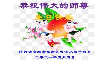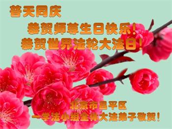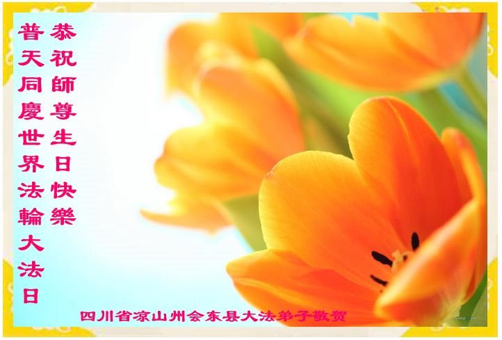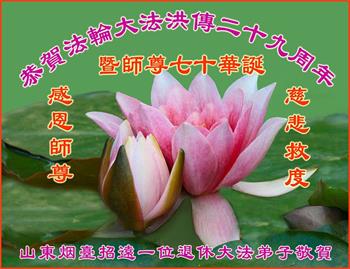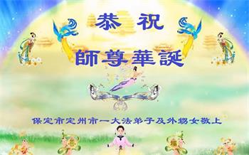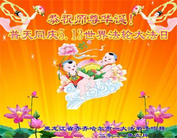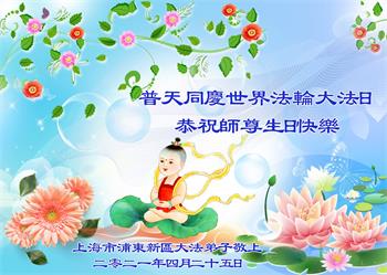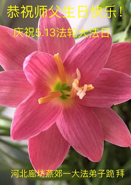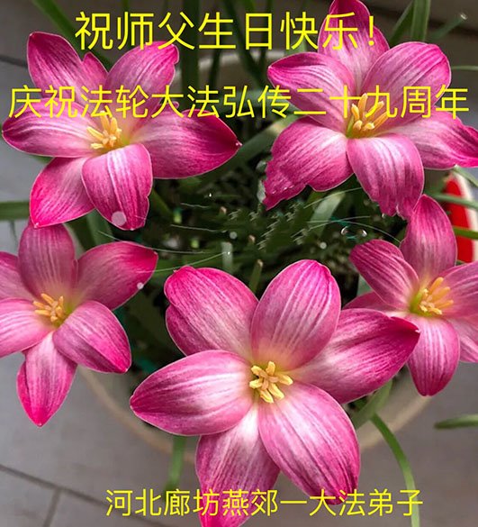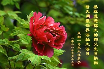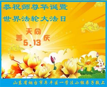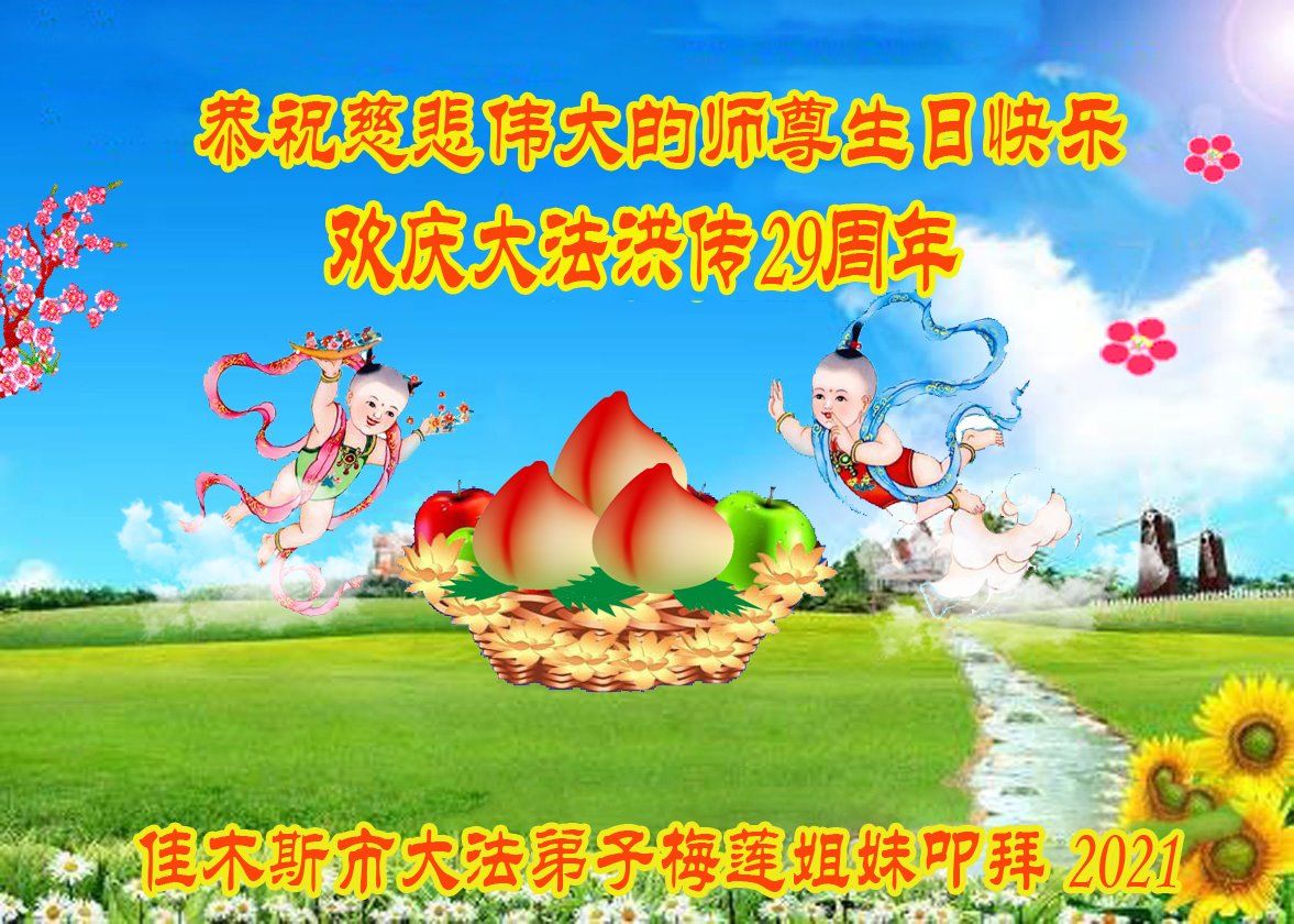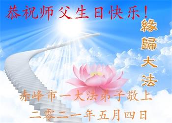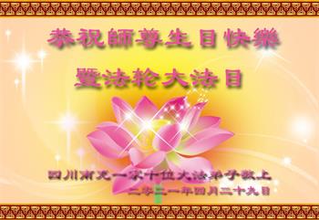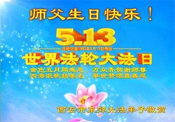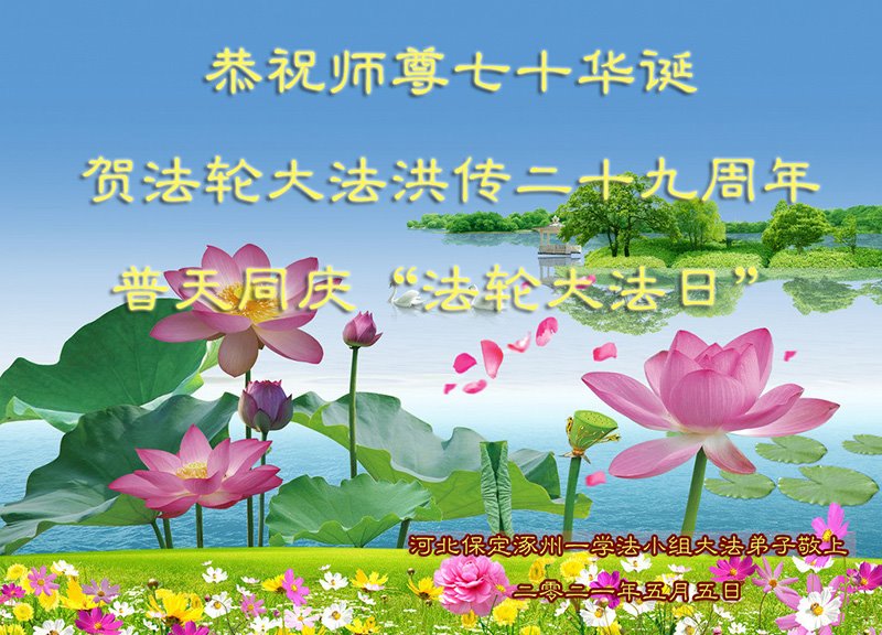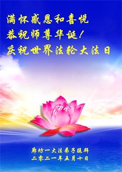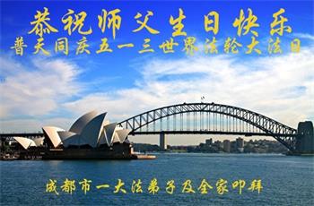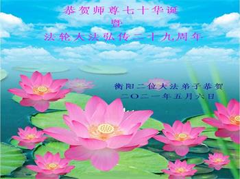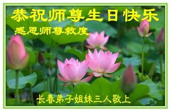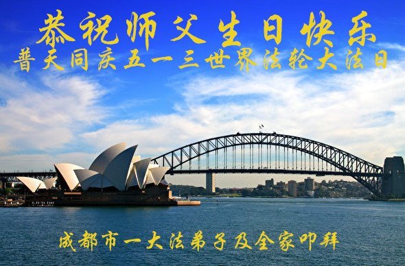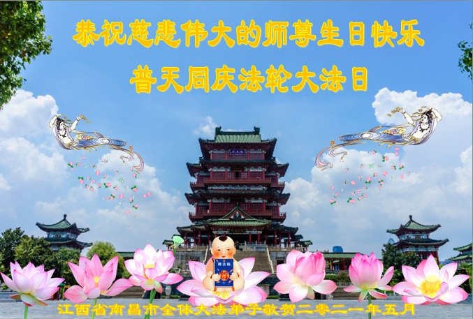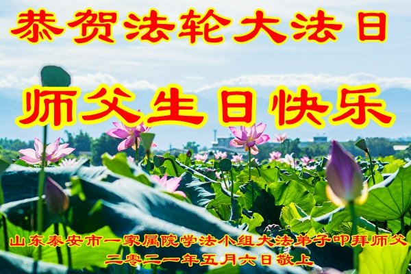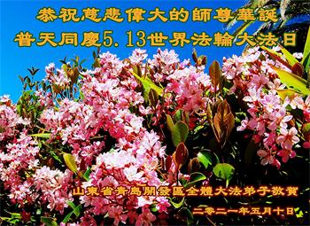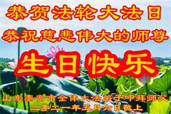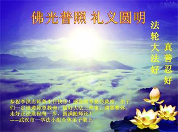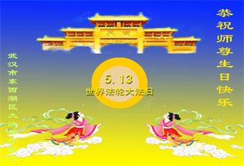 师尊您好!弟子恭祝师尊华诞!恭贺世界法轮大法日!在这普天同庆的日子里,弟子同歌同颂师尊之无量慈悲:感恩师尊把大法传给弟子,指引我们走上返本归真的大道;感恩师尊教导弟子做一个为他的生命,危难中不忘救度众生。弟子一定不忘使命,学好法,多救人,带领众生圆满随师还!弟子叩谢师恩!
