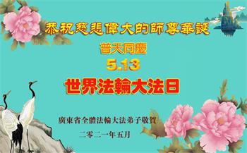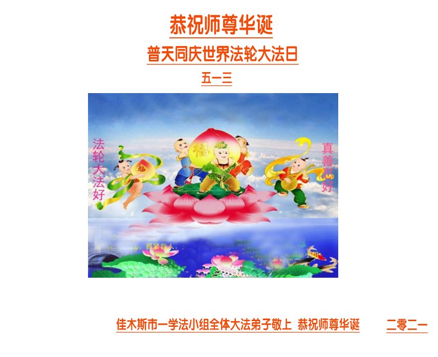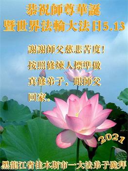 【明慧网二零二一年五月十日】人类走过漫长的历史,千万年的轮回,人们寻觅着生命从哪里来、向何处去?一九九二年的五月十三日,尊敬的李洪志师父第一次向迷中的人们揭示了生命的真谛;得法的人们在欣喜、震撼中传颂着──法轮大法是生命回归的渡船。