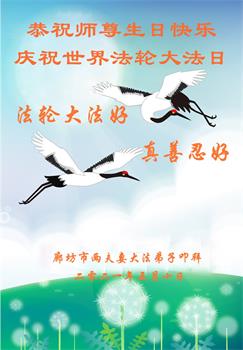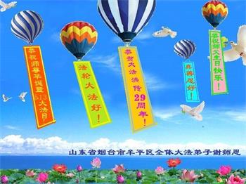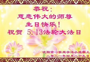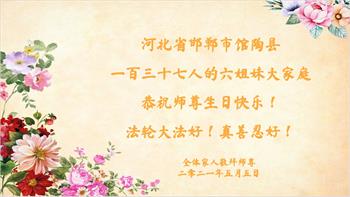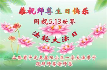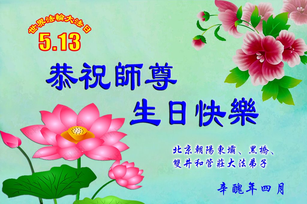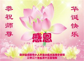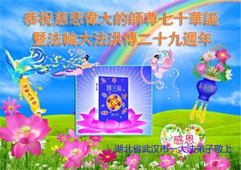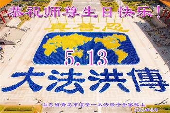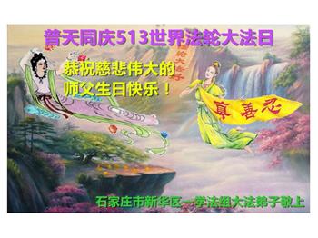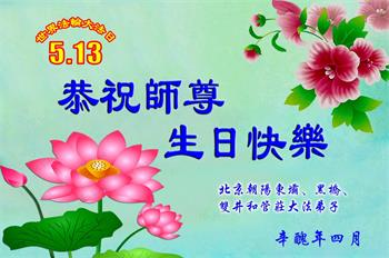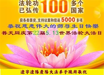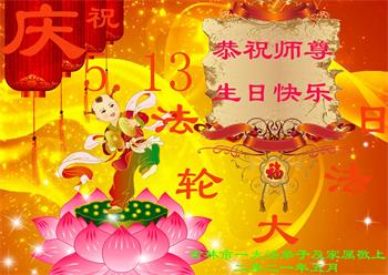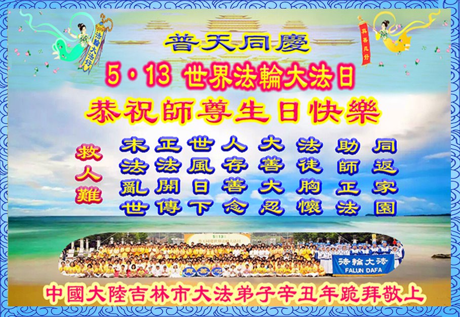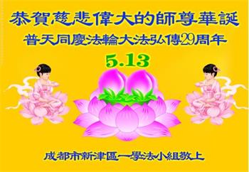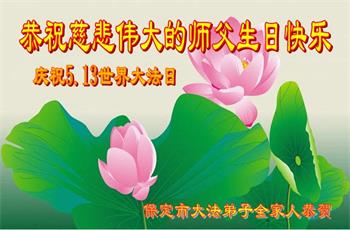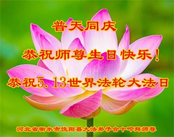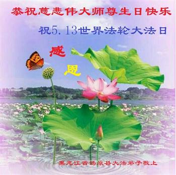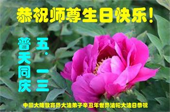 二十九年来,大法修炼者遍布中国大陆各个领域,在工作、学习、日常生活着践行着真、善、忍。值此五月十三日来临之际,来自中国五十余行业的大法弟子,遥祝慈悲伟大的师父华诞快乐!同贺世界法轮大法日!