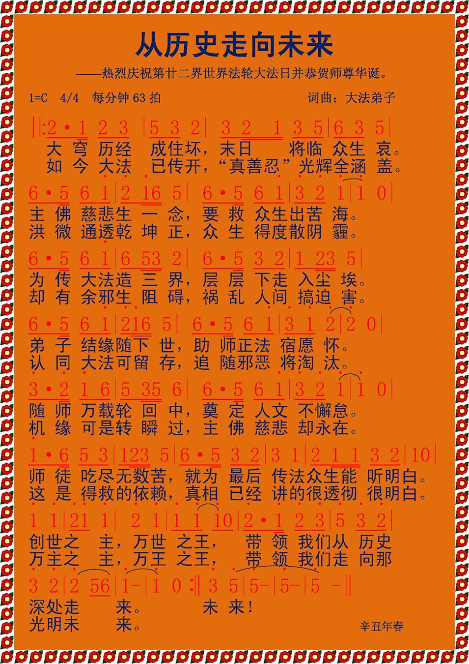 大法弟子在创世主无量慈悲的保护下,历尽了二十二年的迫害后,依然走在师尊指引的“真、善、忍”的光明大道上,无怨无悔的救度着迷中的世人,愿所有的世人能早日明白真相,走过历史的劫难,走向创世主开创的新纪元!