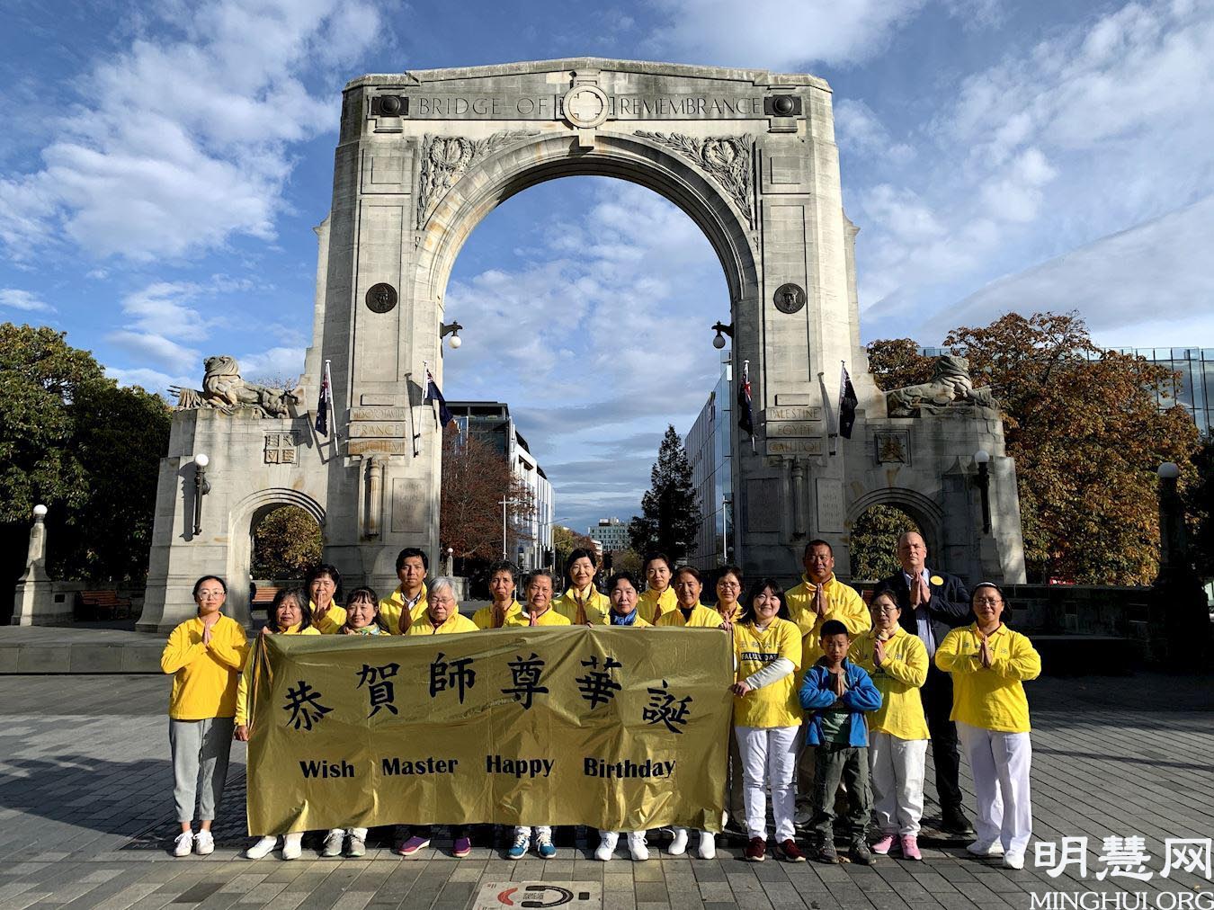 '图1:基督城法轮功学员恭祝师尊华诞'