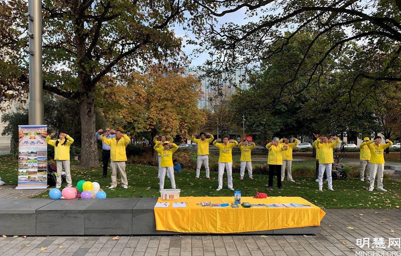 一位当地中年男子被法轮功学员平和优雅的炼功场面所吸引,他说这个炼功场充满了正能量。当他了解法轮大法弘传世界,而在中国大陆被中共迫害的真相后,立即在征签表上签名,并表示一定不能让邪恶的共产主义把自由民主的新西兰毁掉。他向学员要了关于中共活摘器官牟利的真相资料,准备回去后仔细了解相关信息。