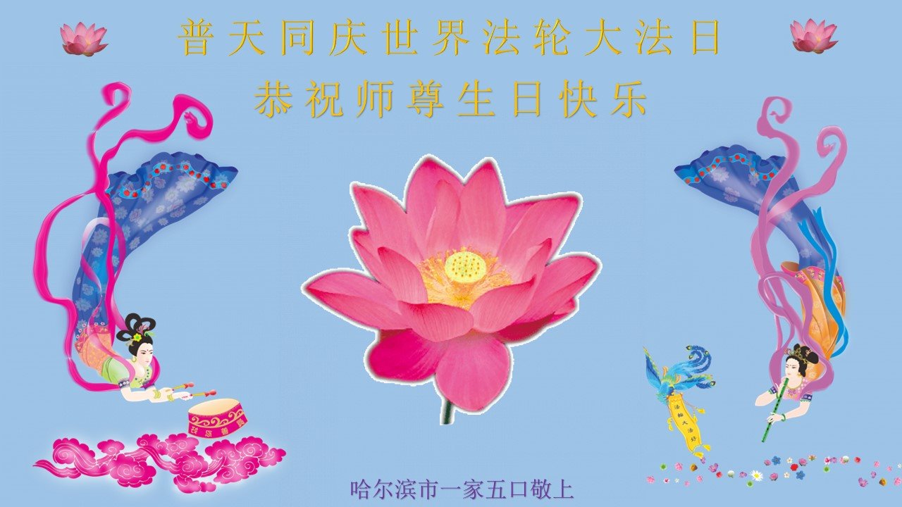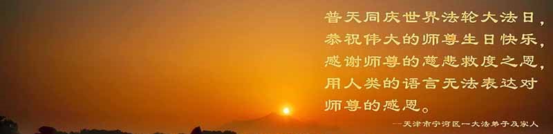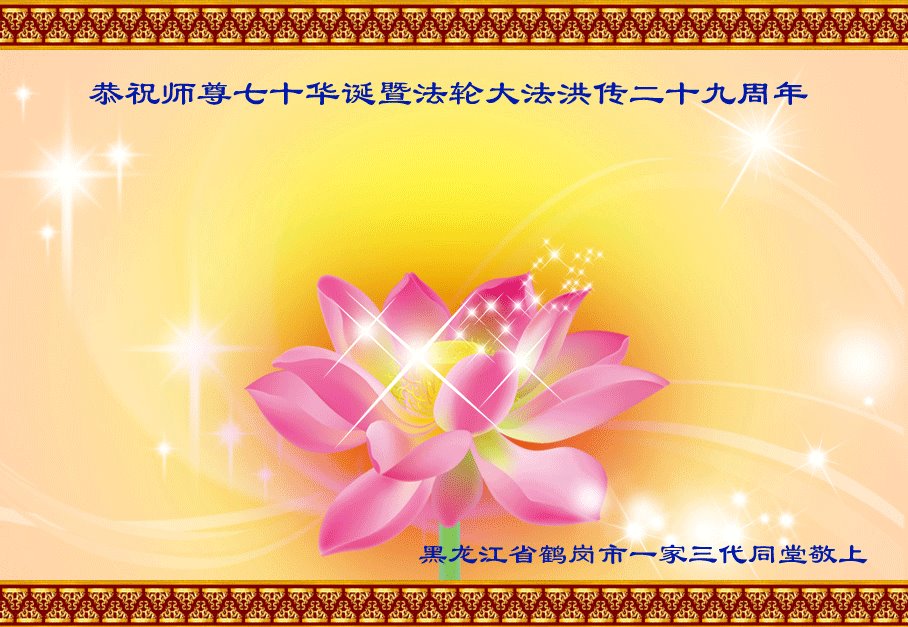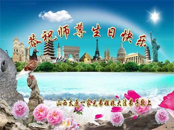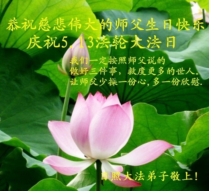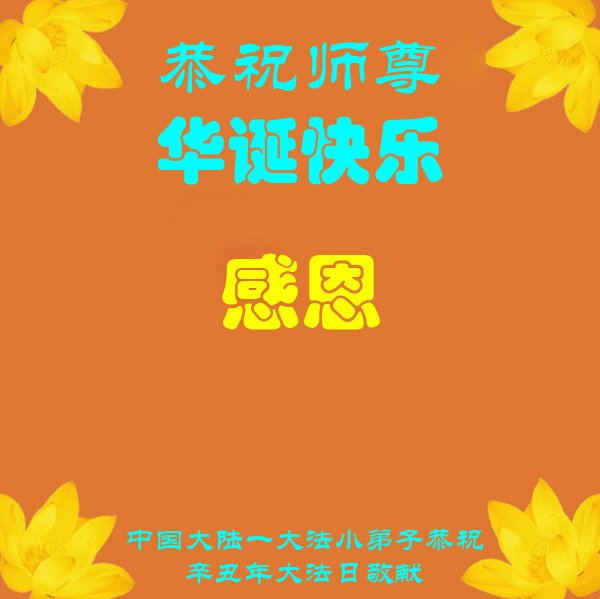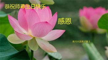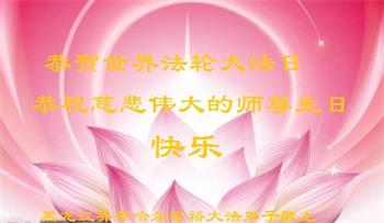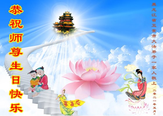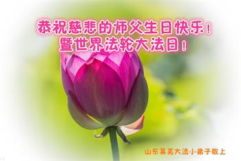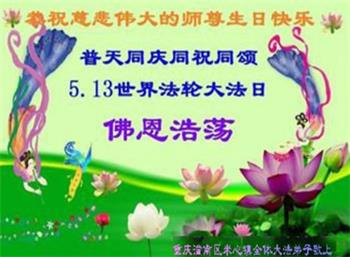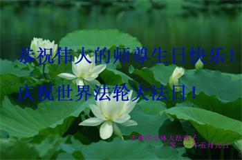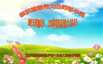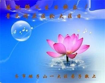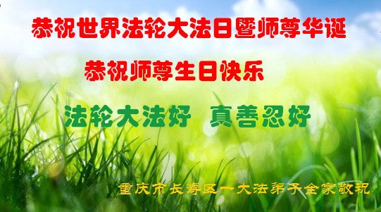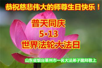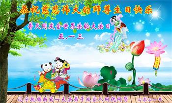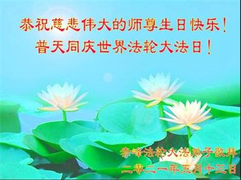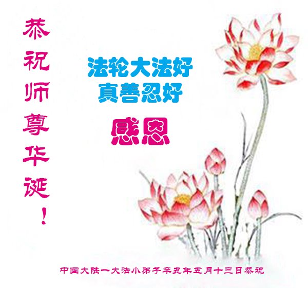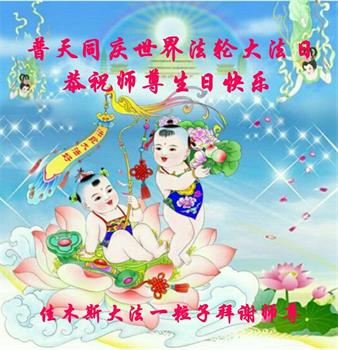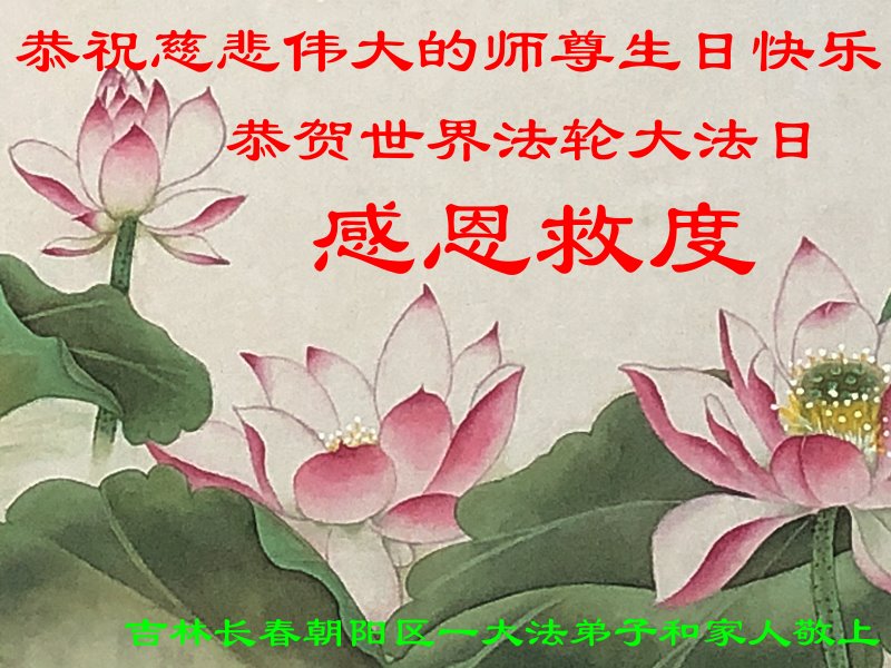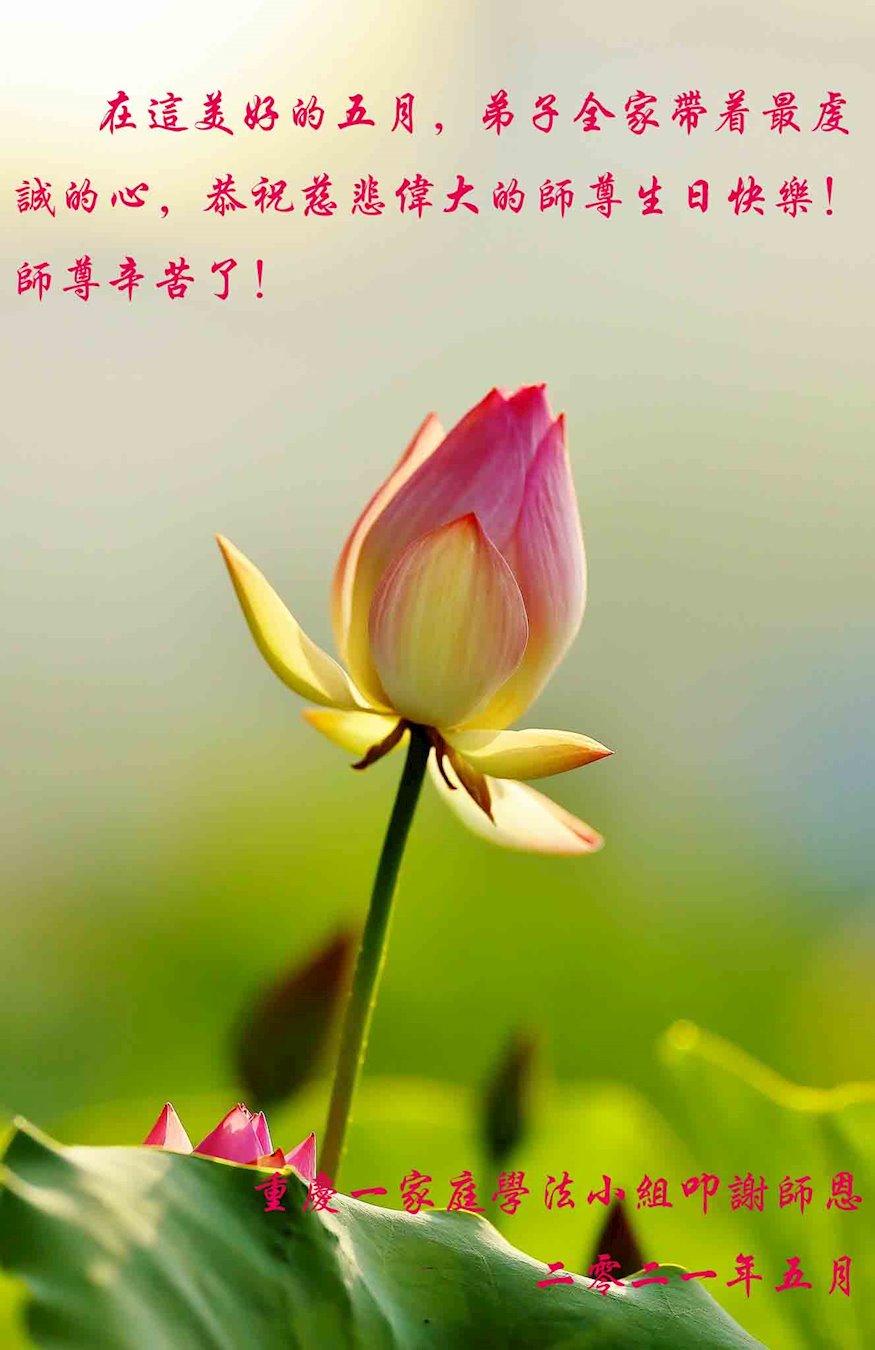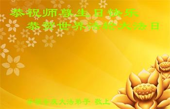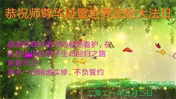 在师尊华诞暨世界法轮大法日来临之际,中国大陆一新学员及家人同修恭祝慈悲伟大的师尊生日快乐!谢谢师尊的慈悲苦度!