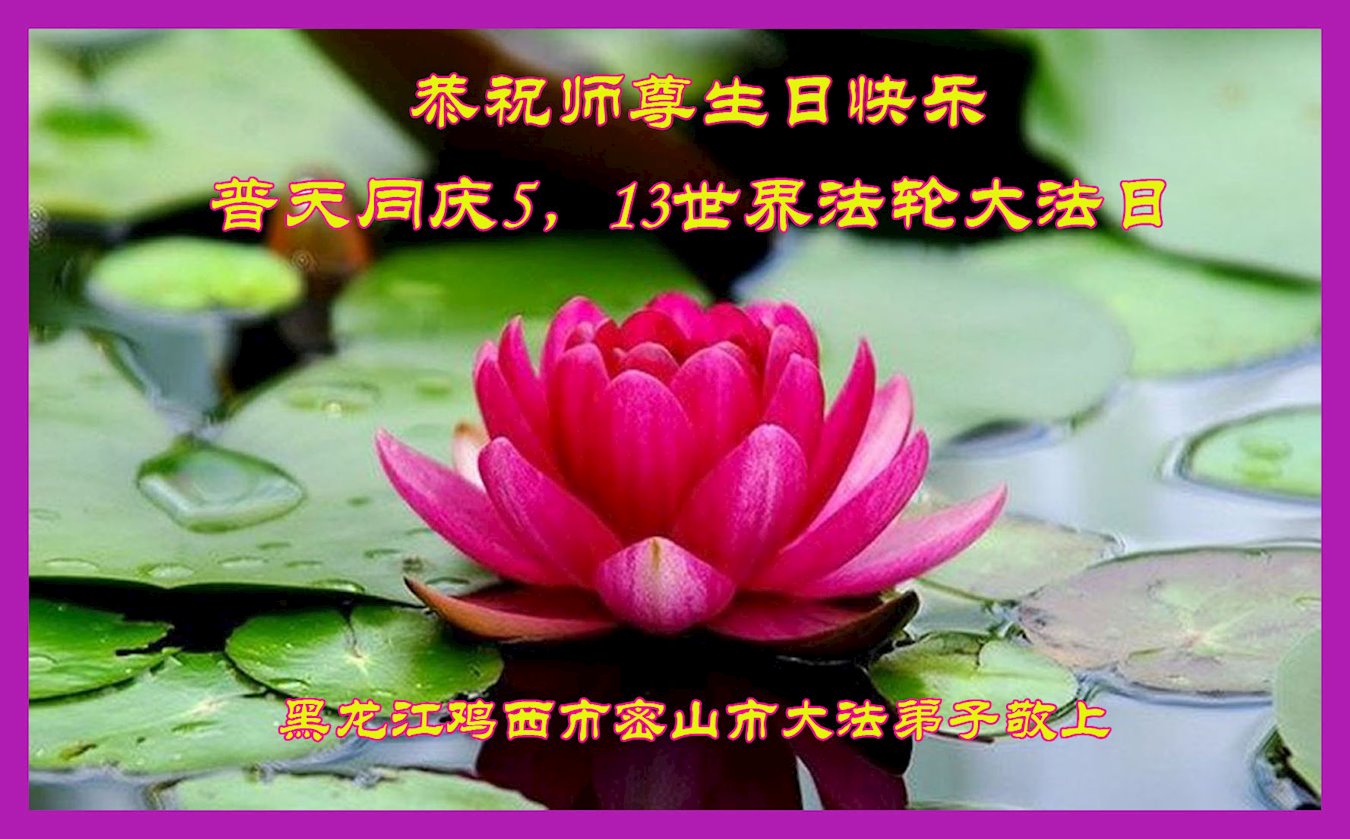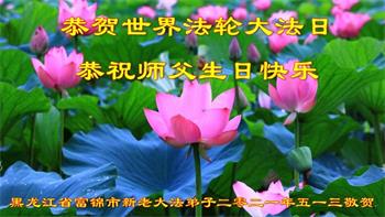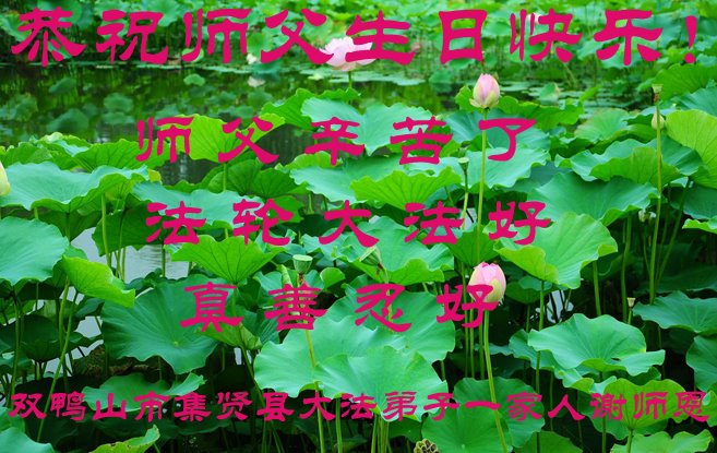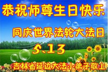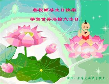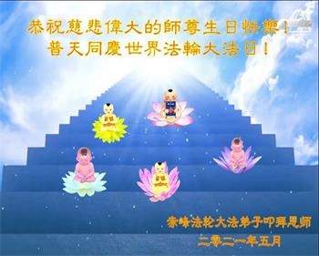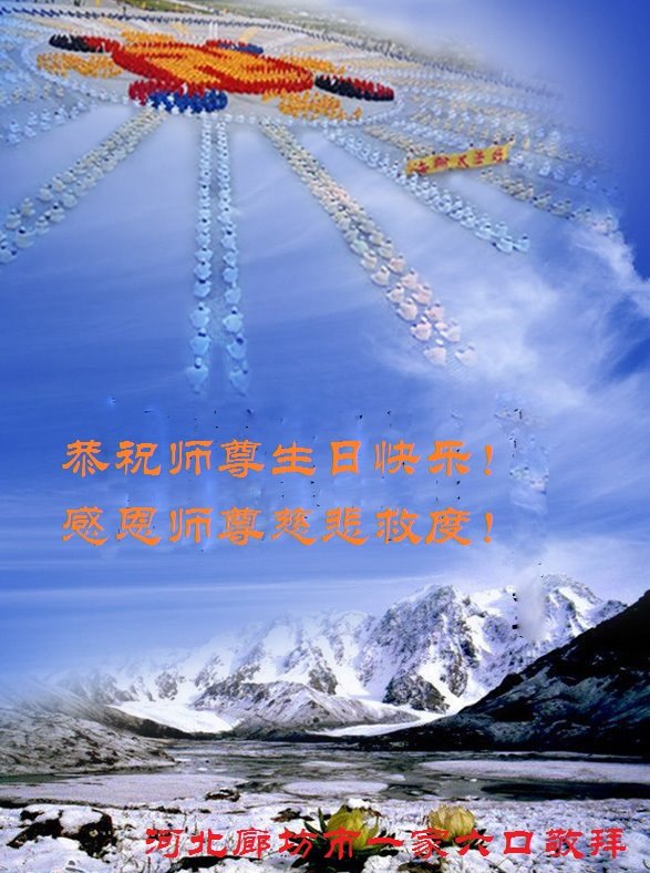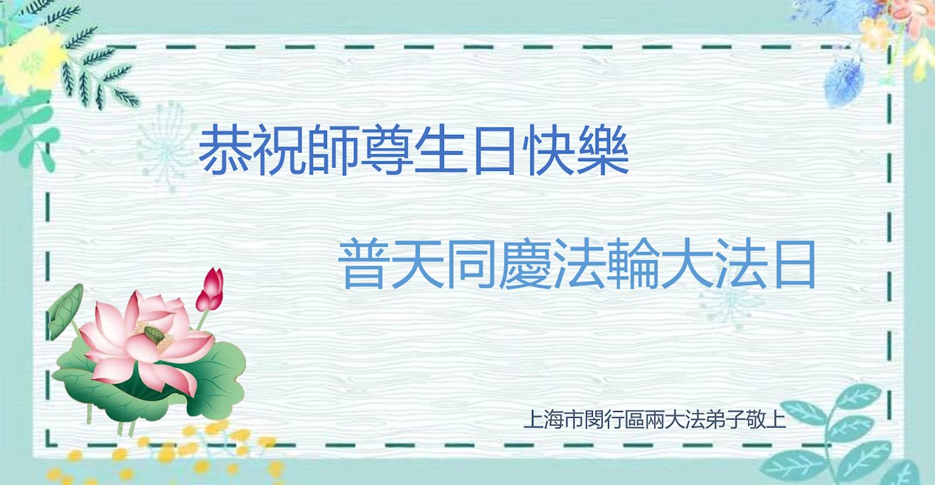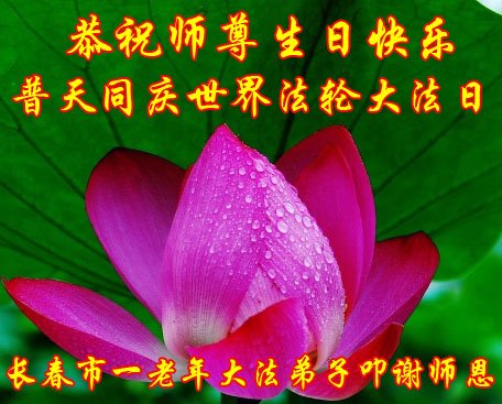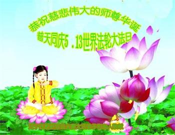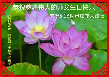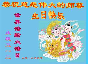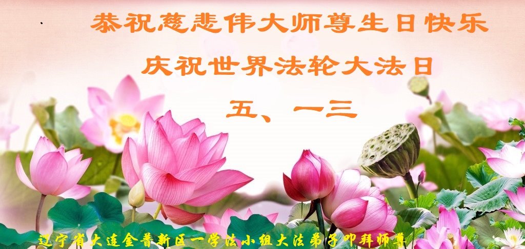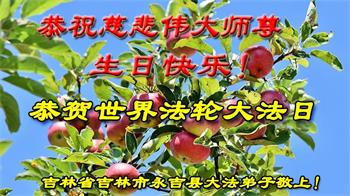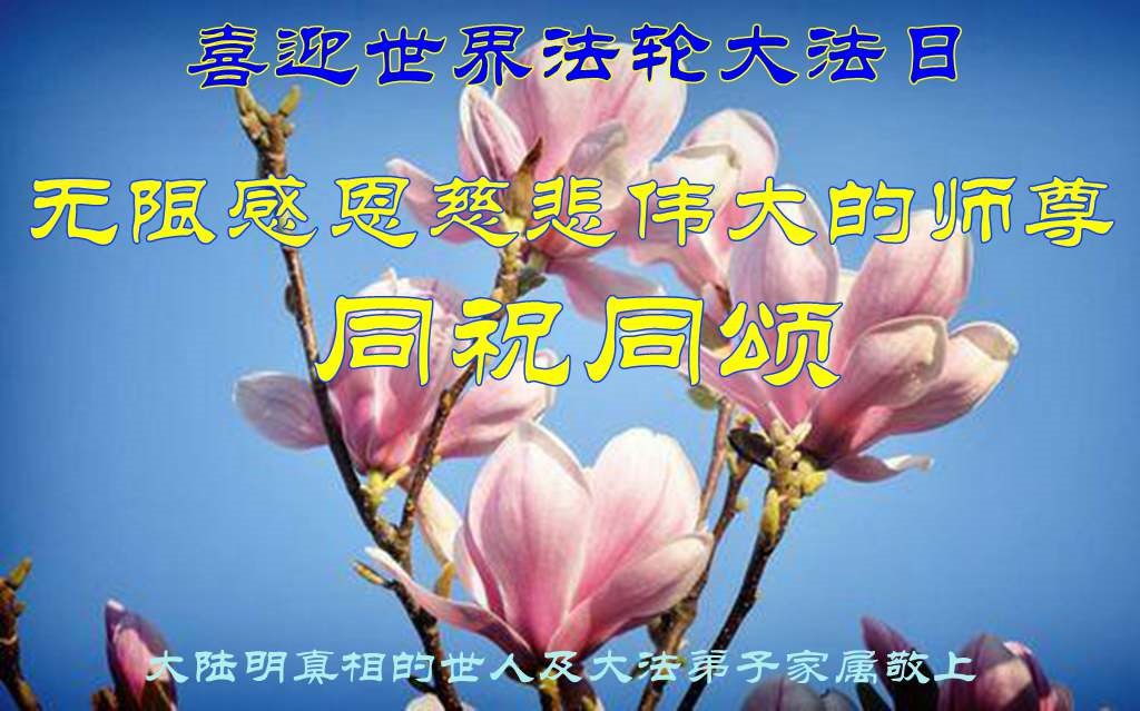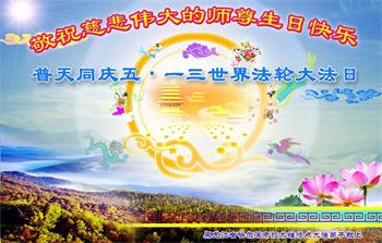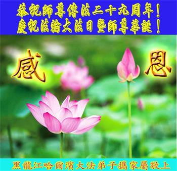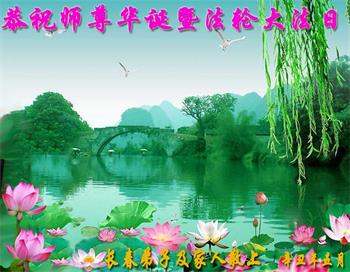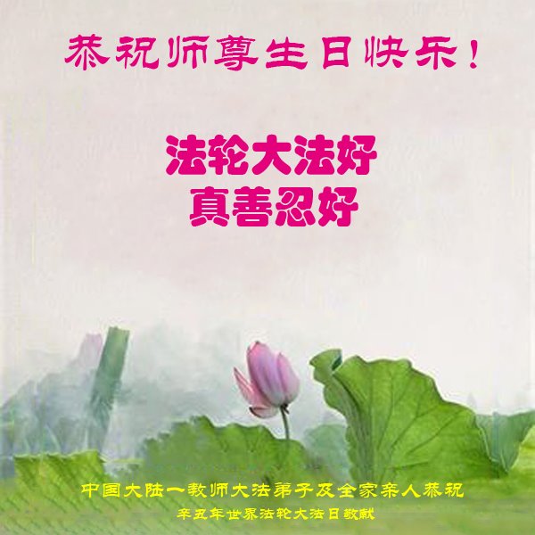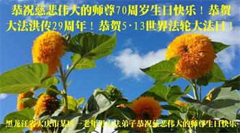 在师尊华诞暨世界法轮大法日来临之际,中国大陆一新学员及家人同修恭祝慈悲伟大的师尊生日快乐!谢谢师尊的慈悲苦度!