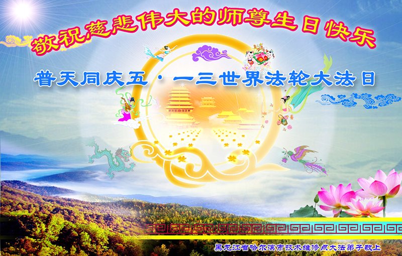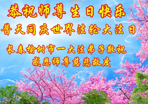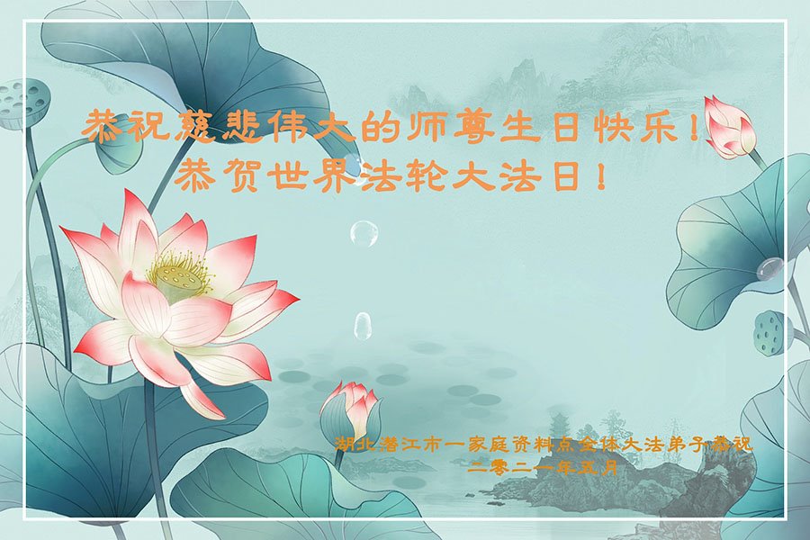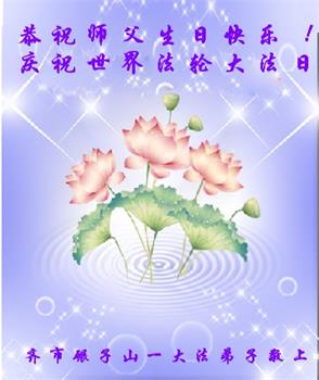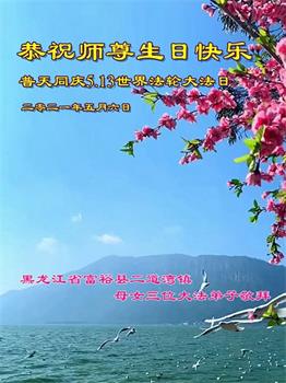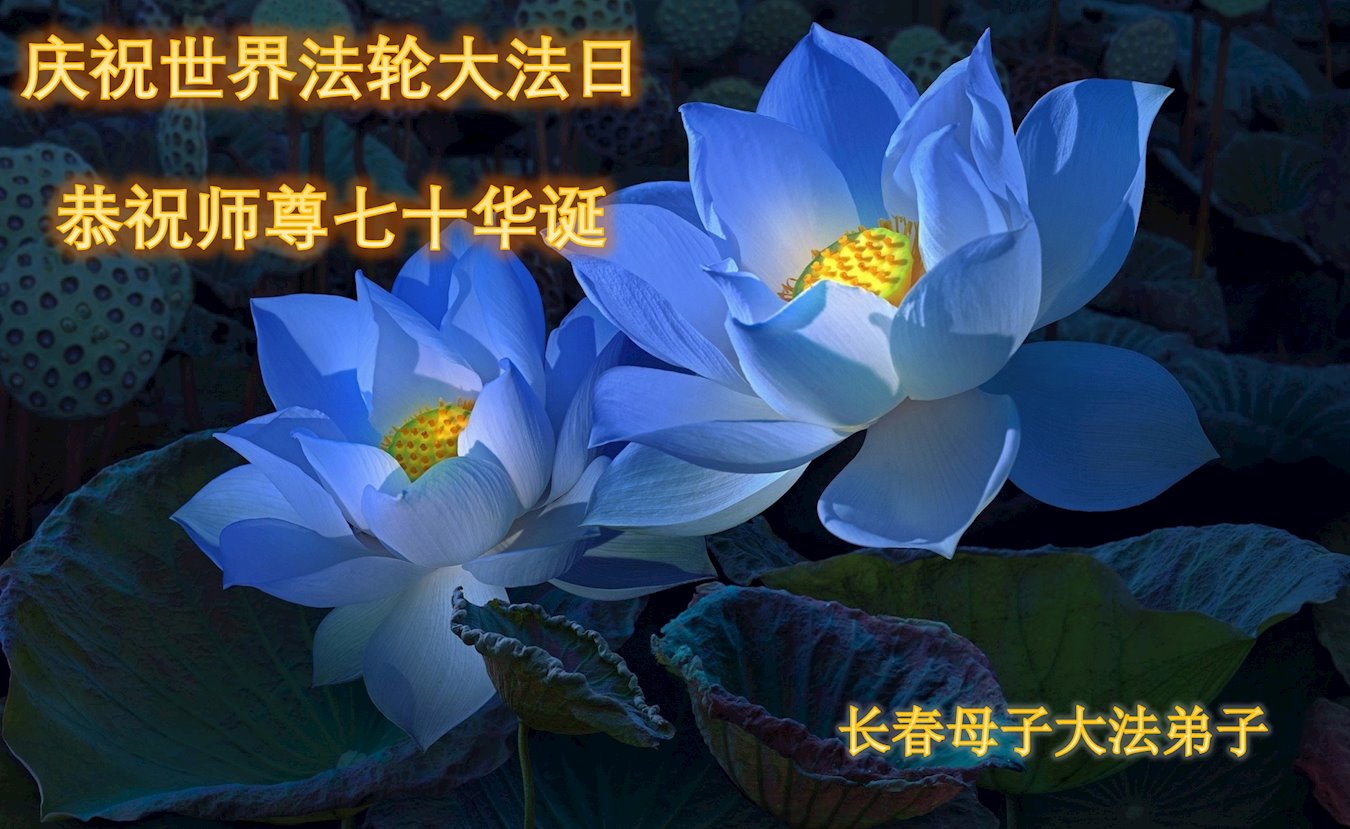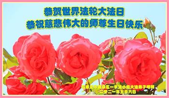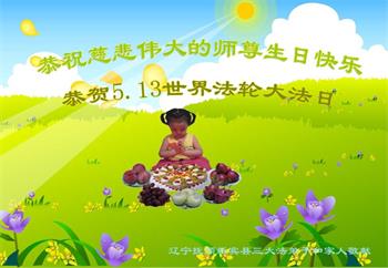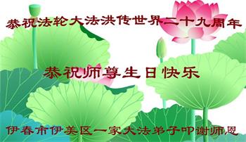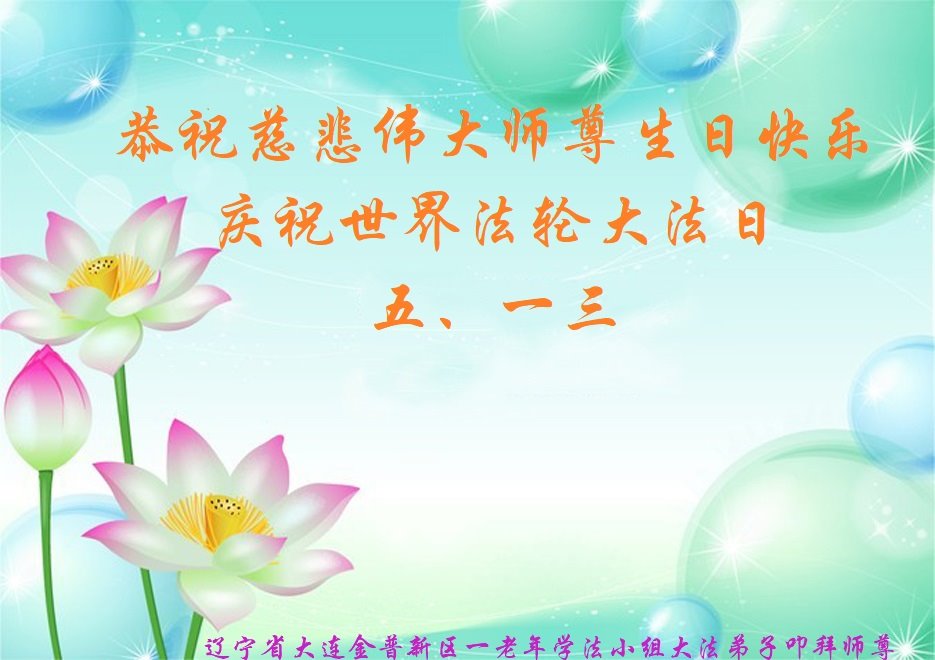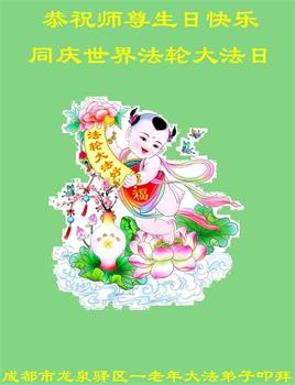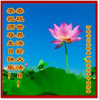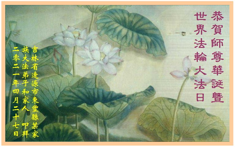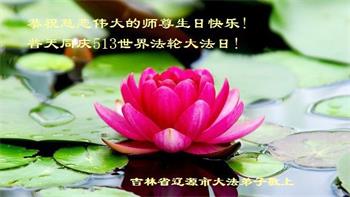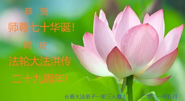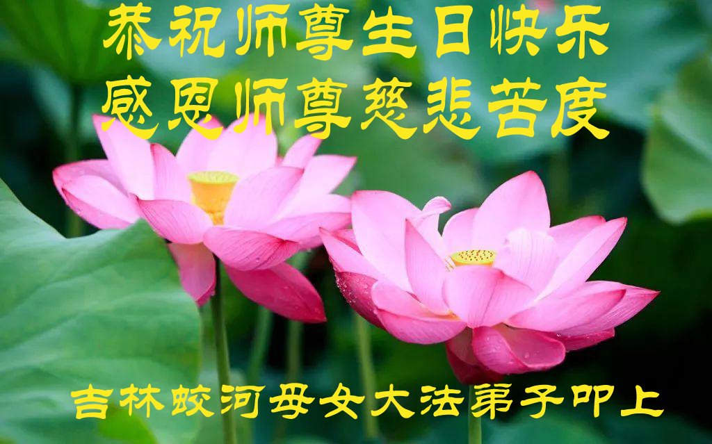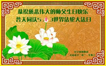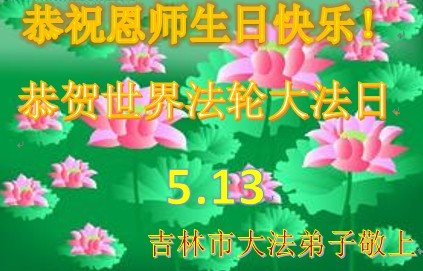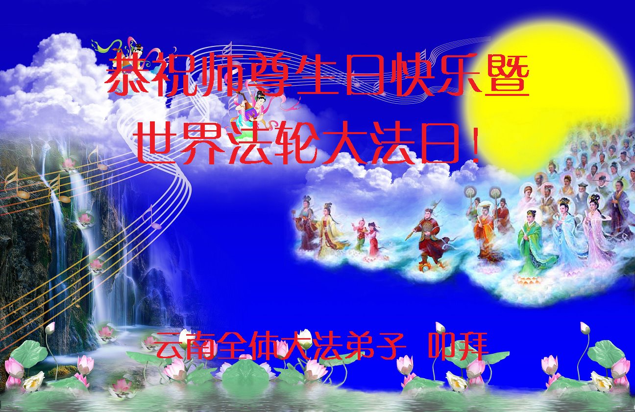 在师尊华诞暨世界法轮大法日来临之际,中国大陆一新学员及家人同修恭祝慈悲伟大的师尊生日快乐!谢谢师尊的慈悲苦度!