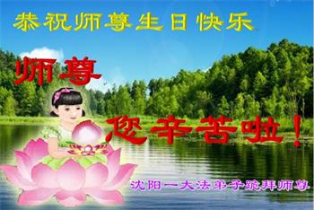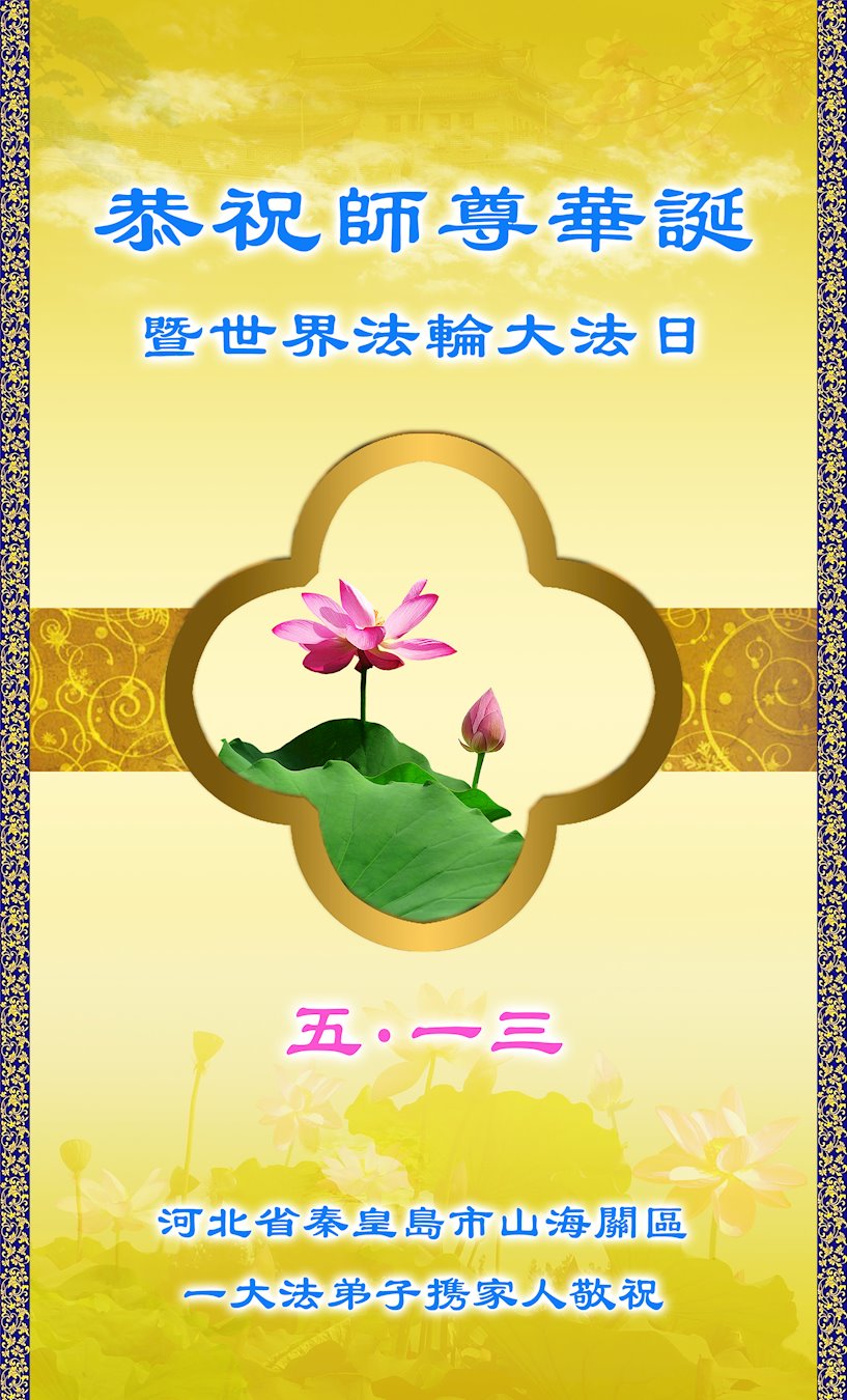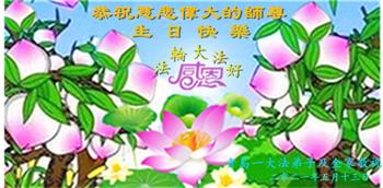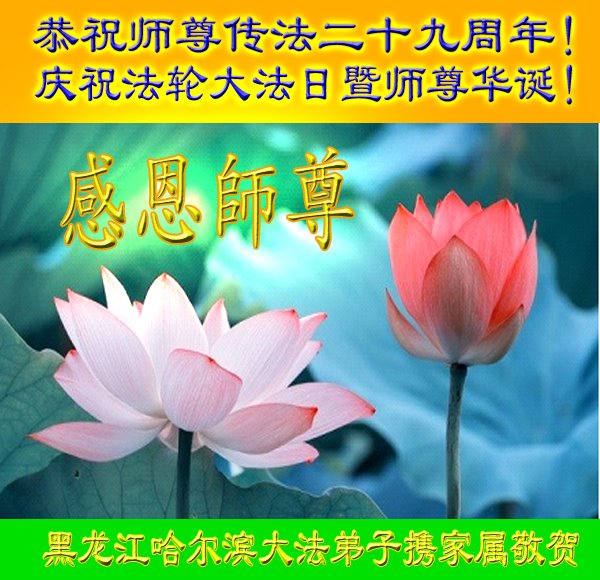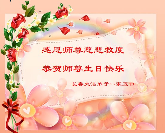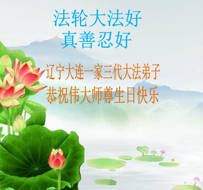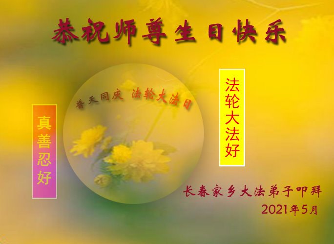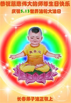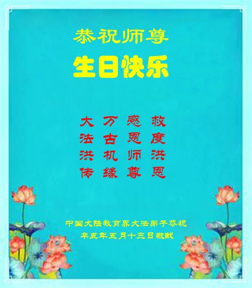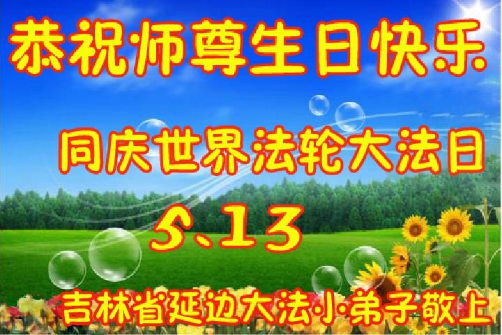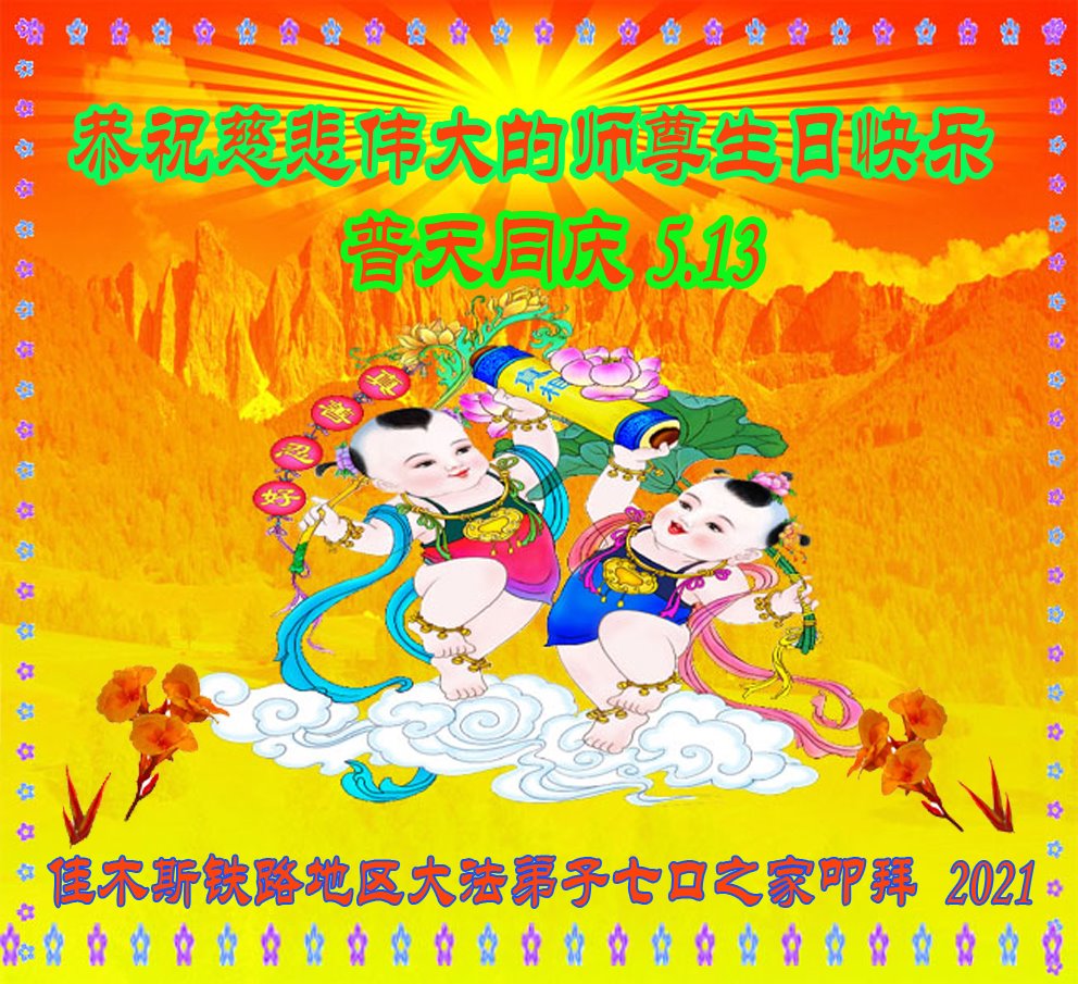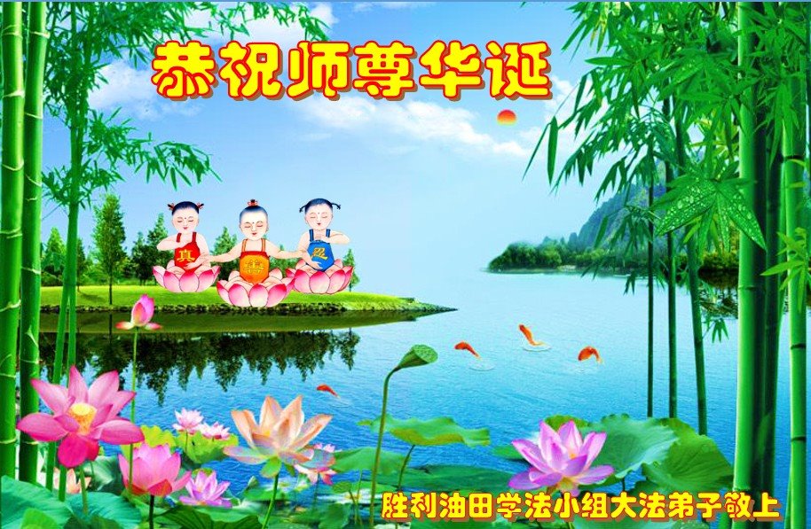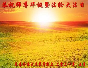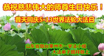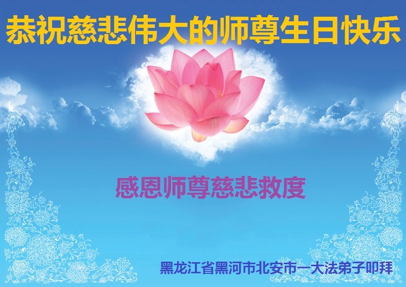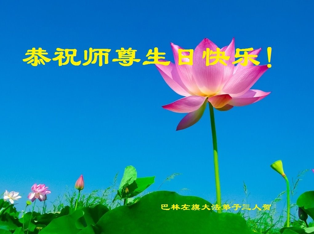 在师尊华诞暨世界法轮大法日来临之际,中国大陆一新学员及家人同修恭祝慈悲伟大的师尊生日快乐!谢谢师尊的慈悲苦度!