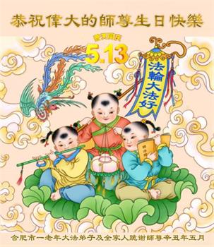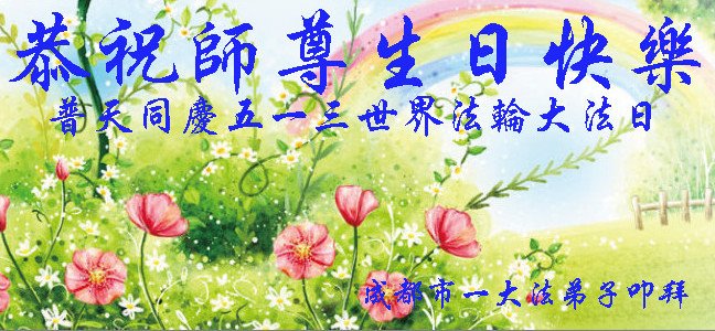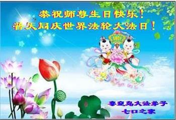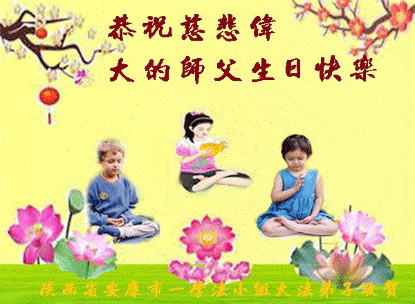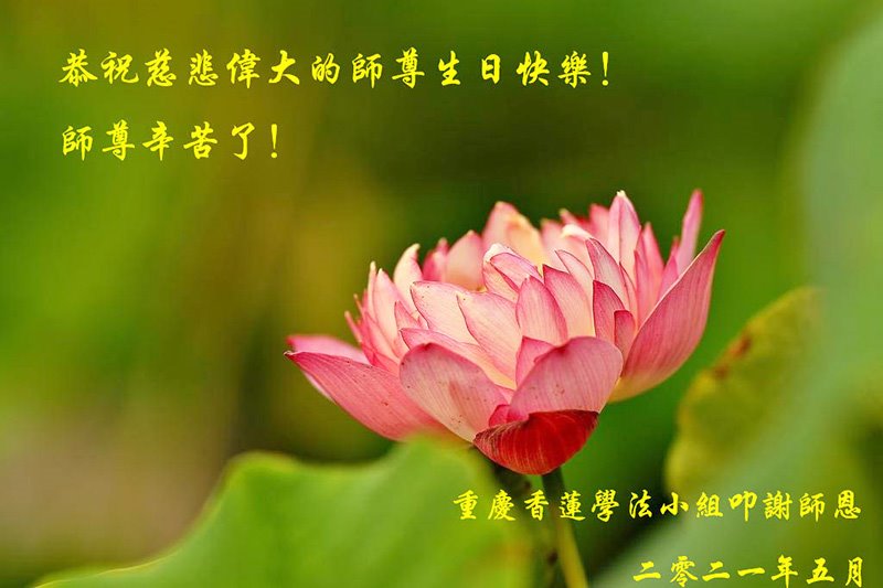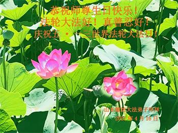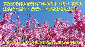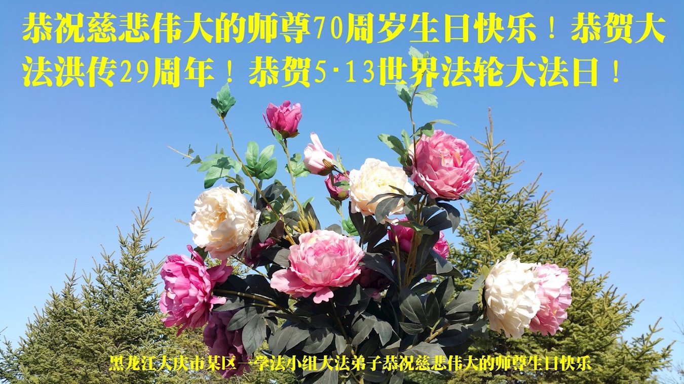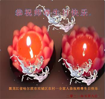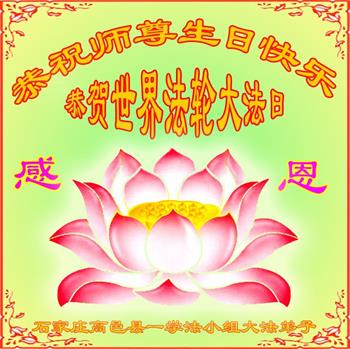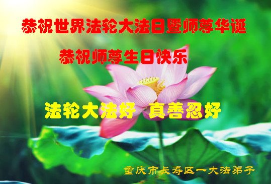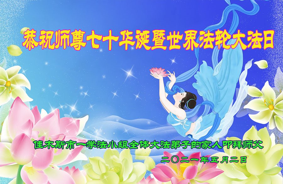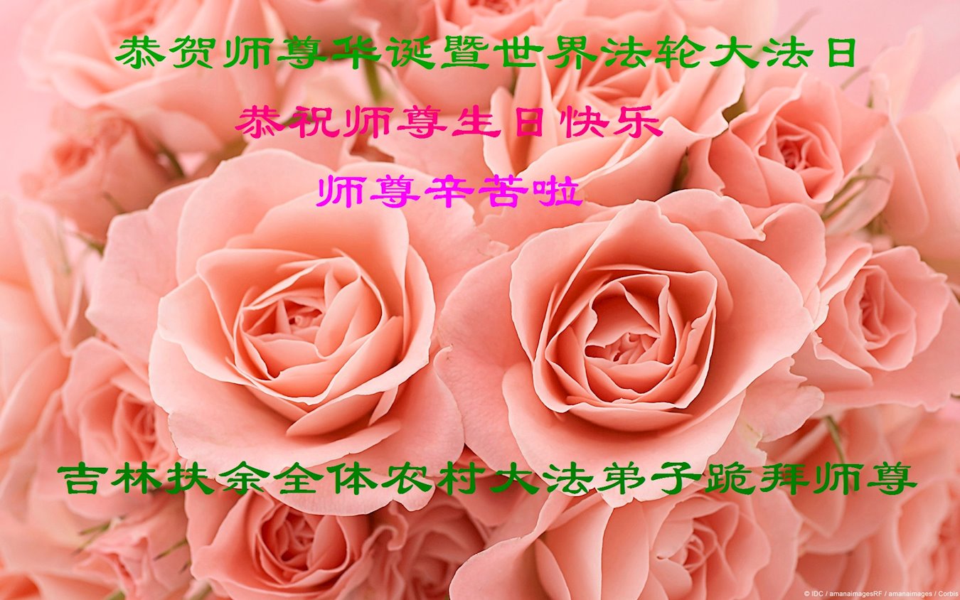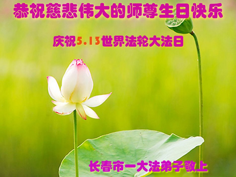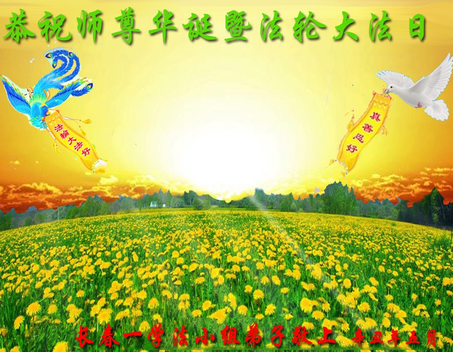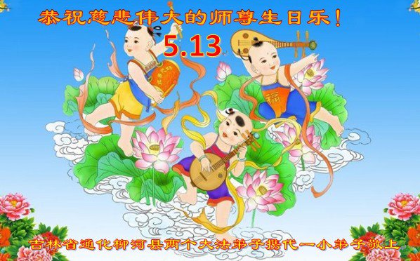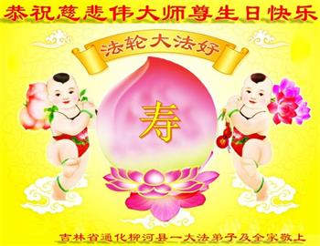 在师尊华诞暨世界法轮大法日来临之际,中国大陆一新学员及家人同修恭祝慈悲伟大的师尊生日快乐!谢谢师尊的慈悲苦度!