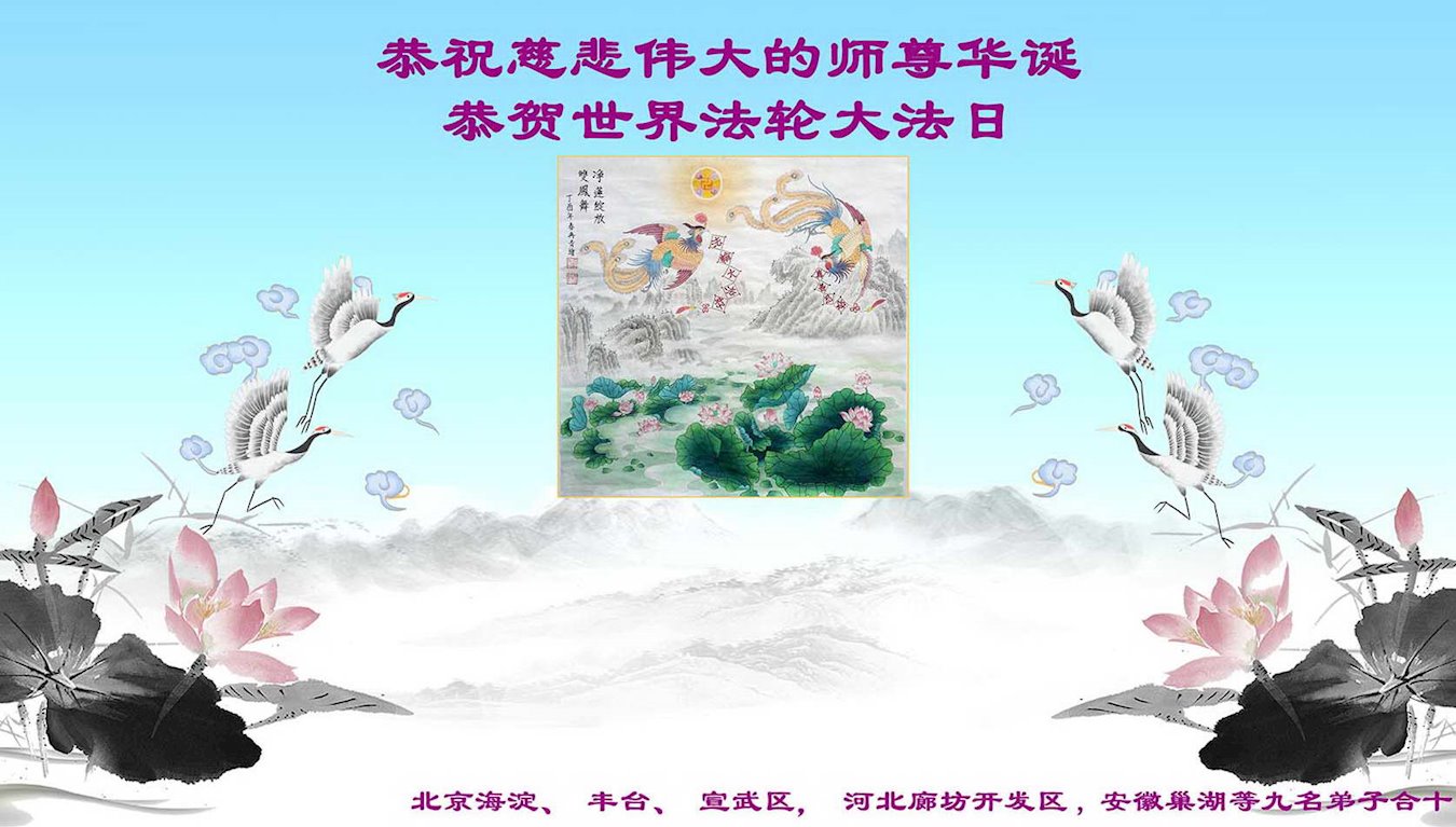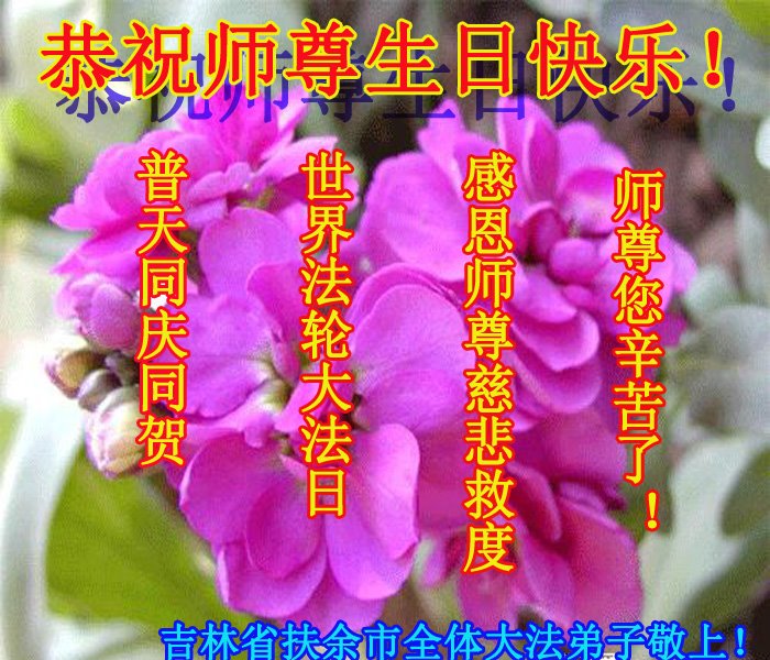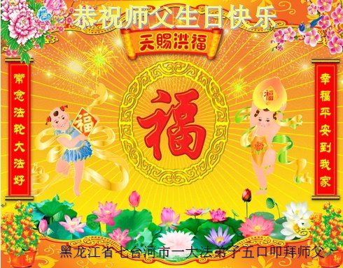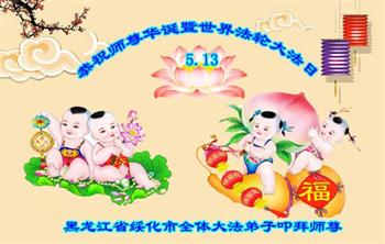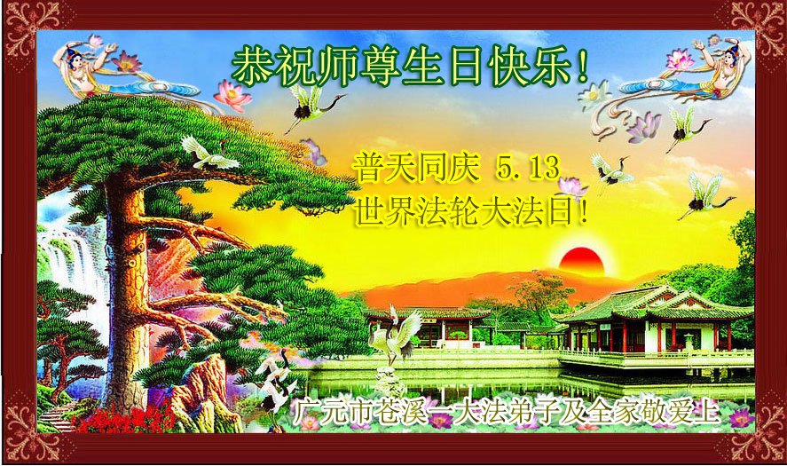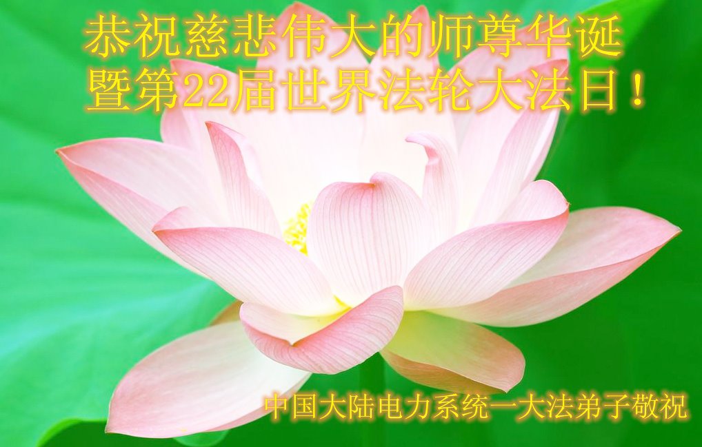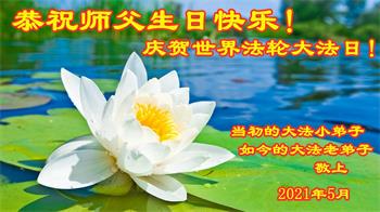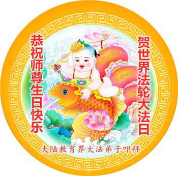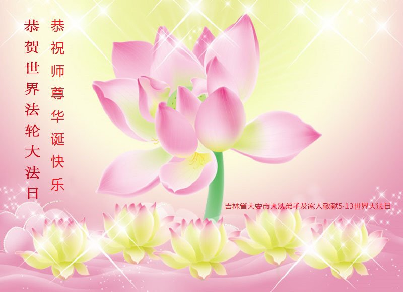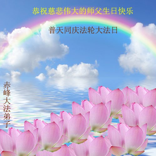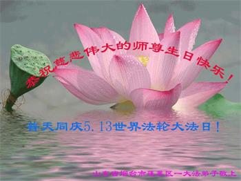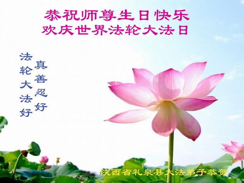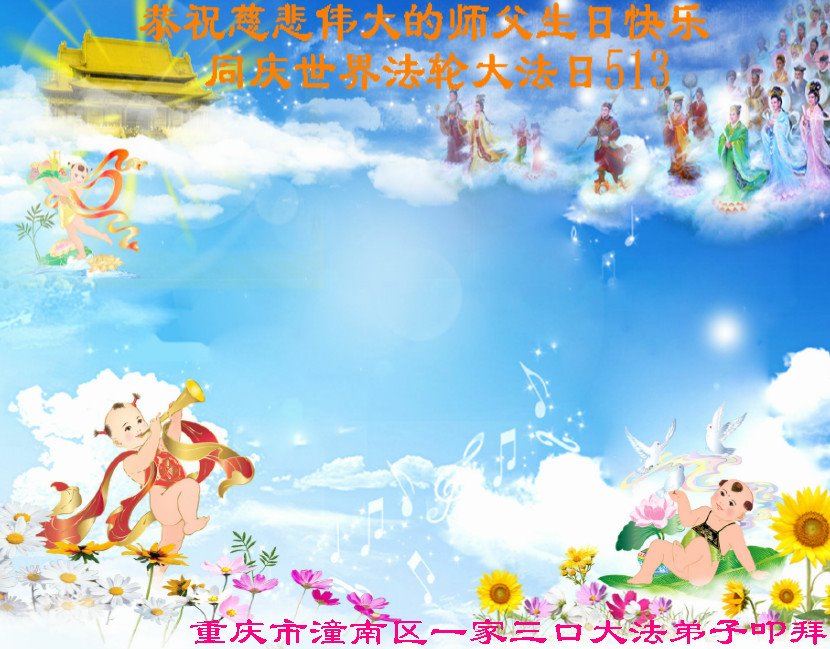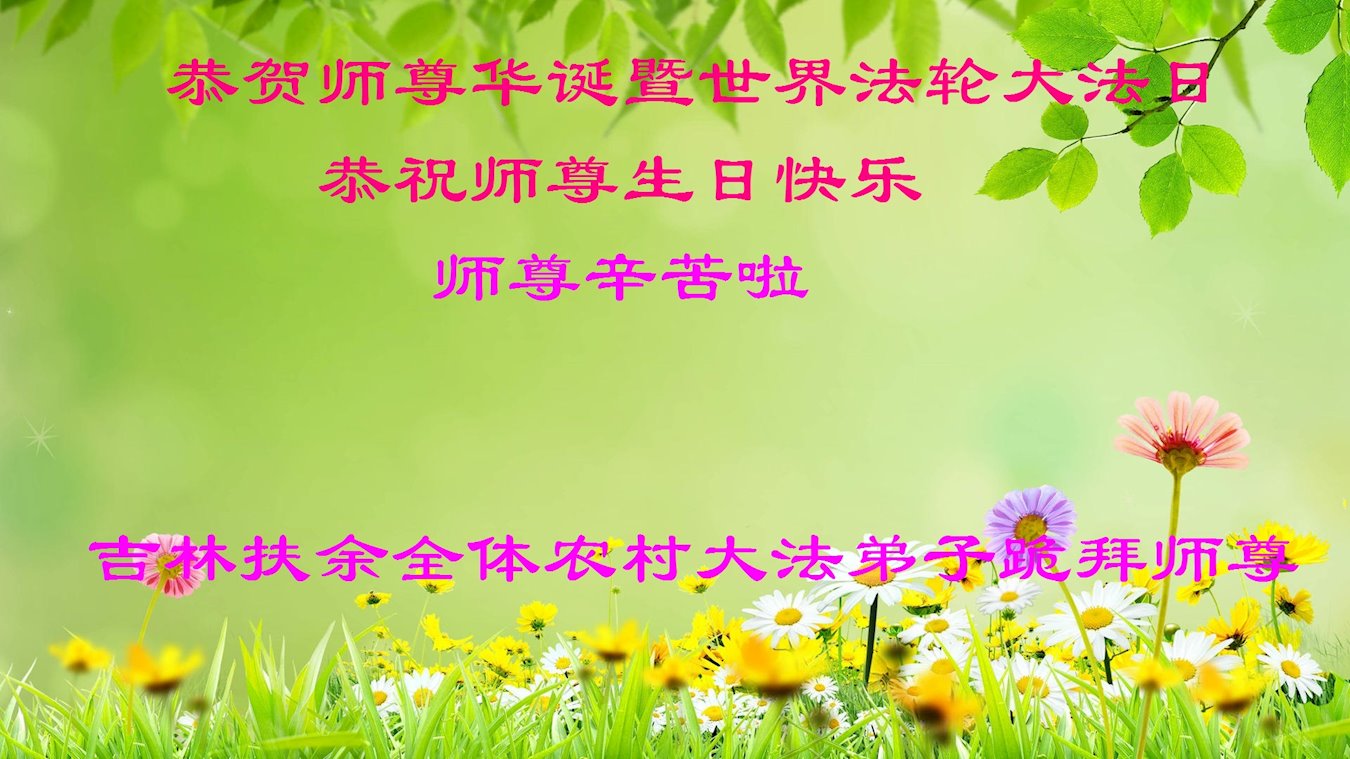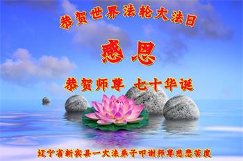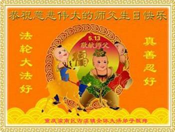 在师尊华诞暨世界法轮大法日来临之际,中国大陆一新学员及家人同修恭祝慈悲伟大的师尊生日快乐!谢谢师尊的慈悲苦度!