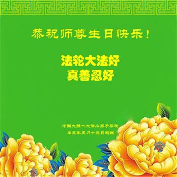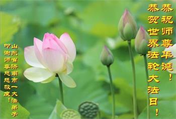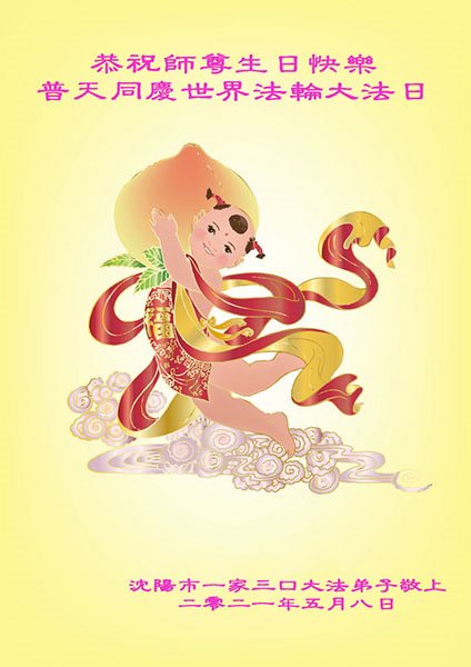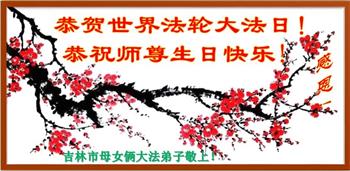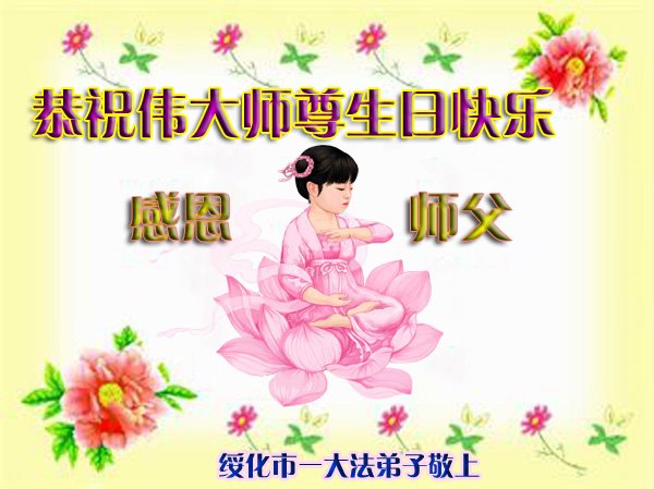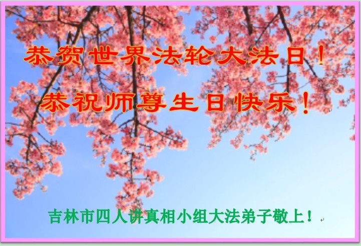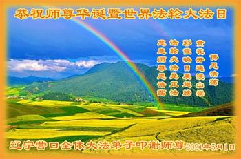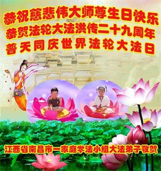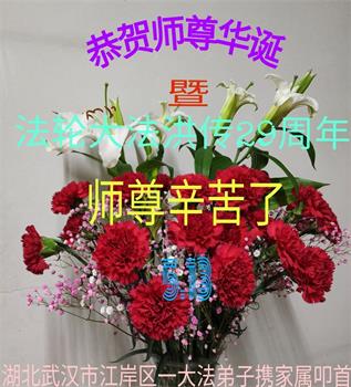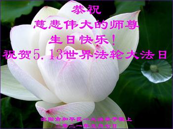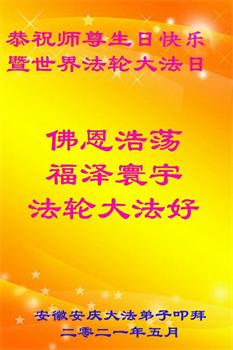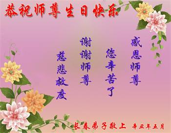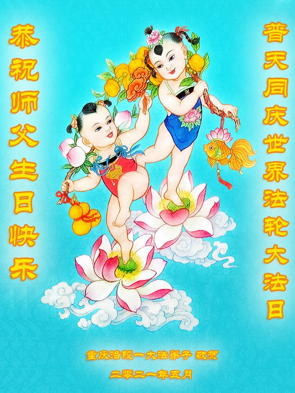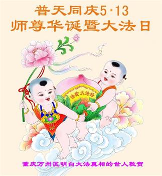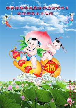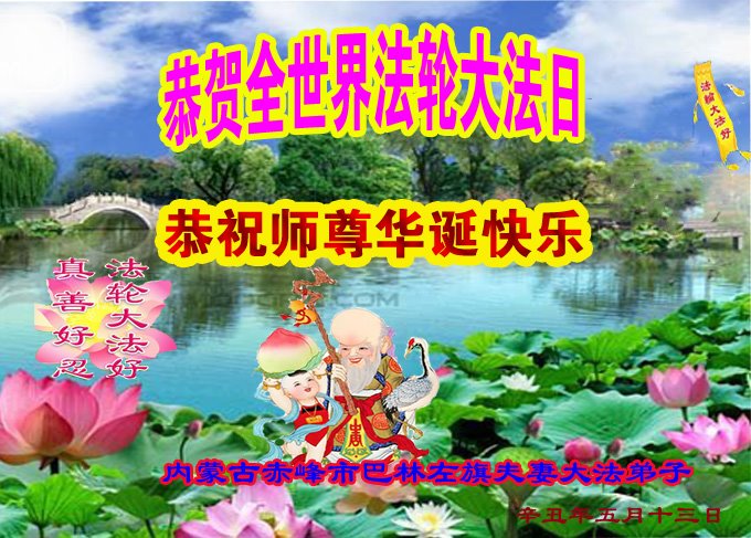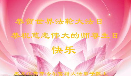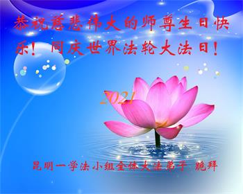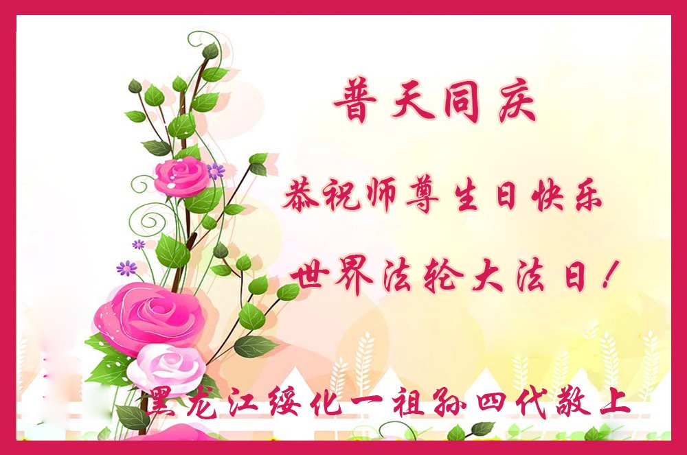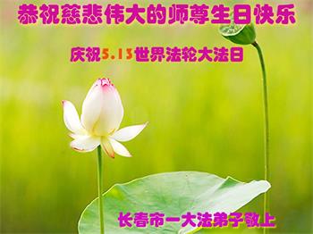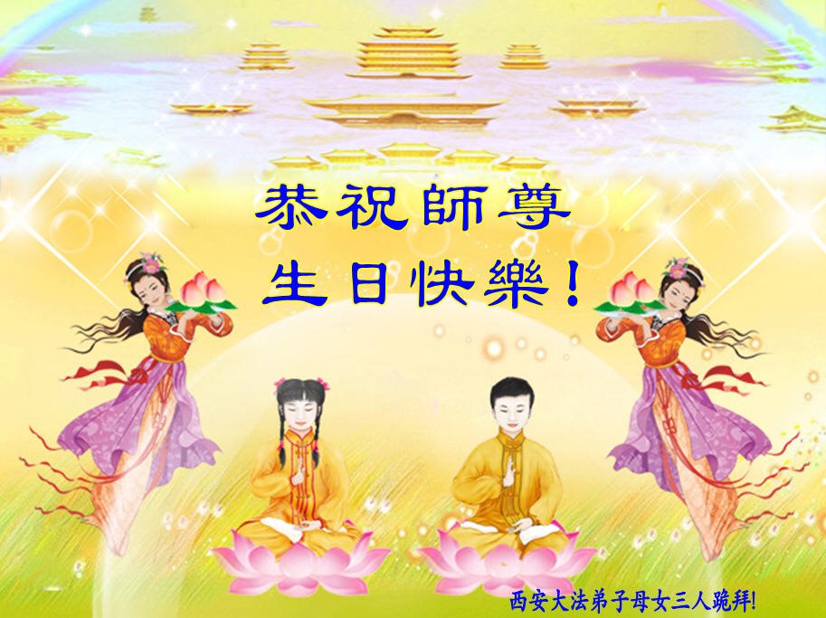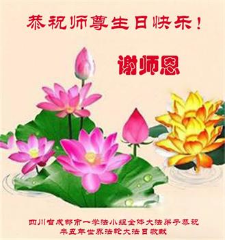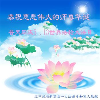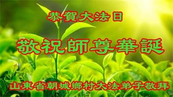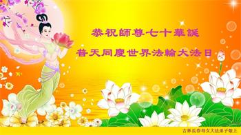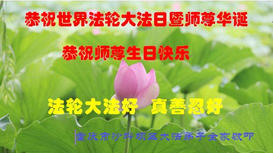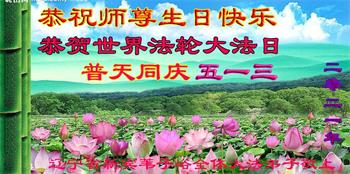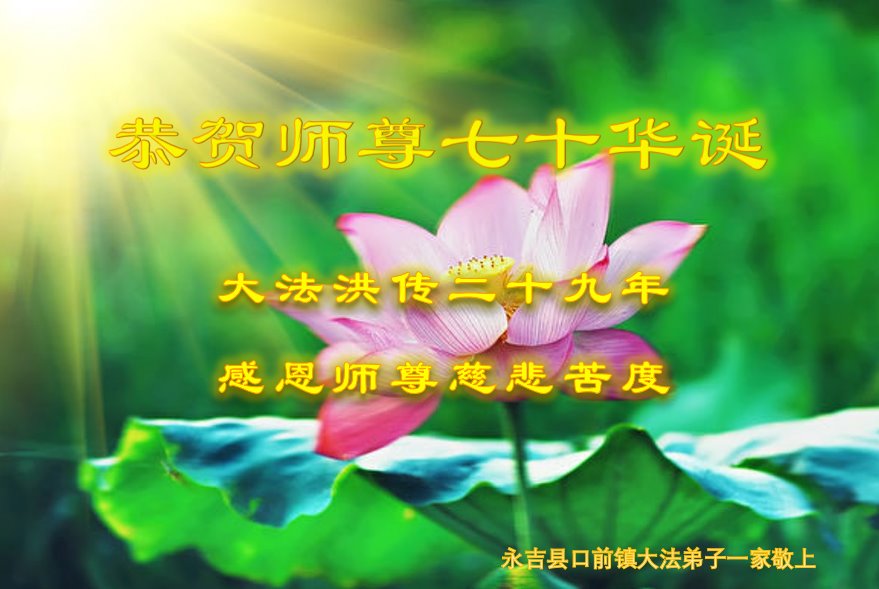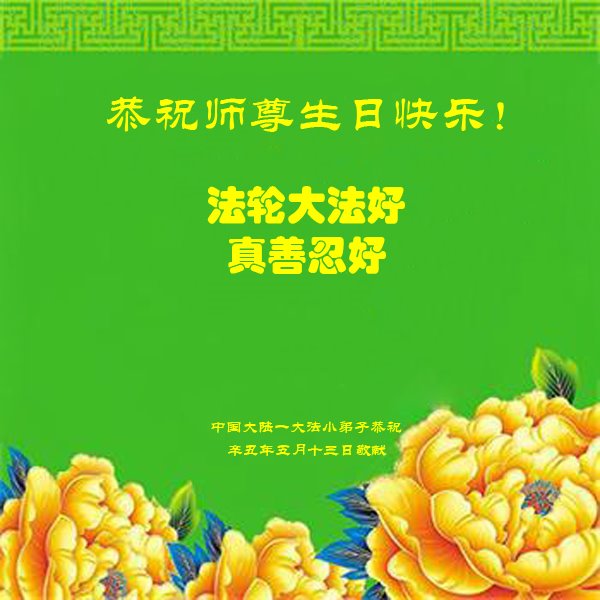 在师尊华诞暨世界法轮大法日来临之际,中国大陆一新学员及家人同修恭祝慈悲伟大的师尊生日快乐!谢谢师尊的慈悲苦度!
