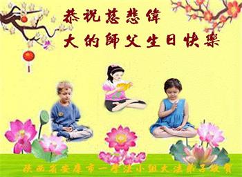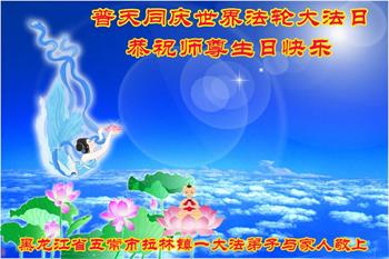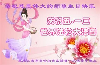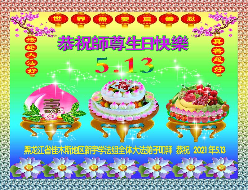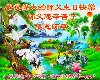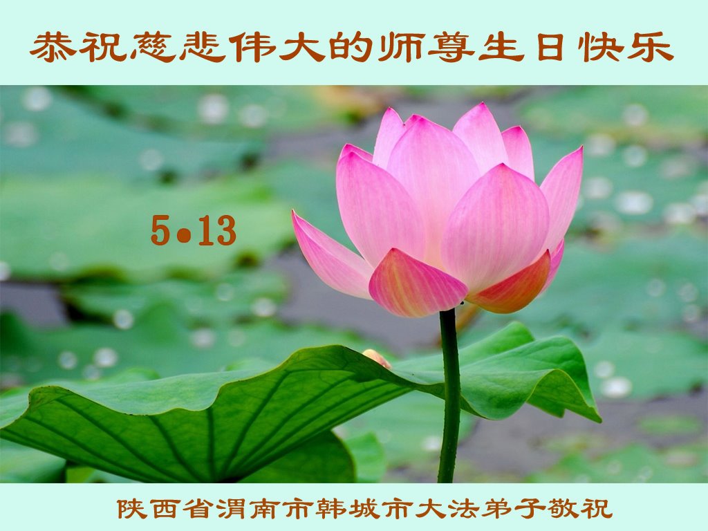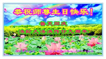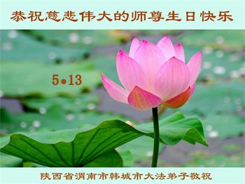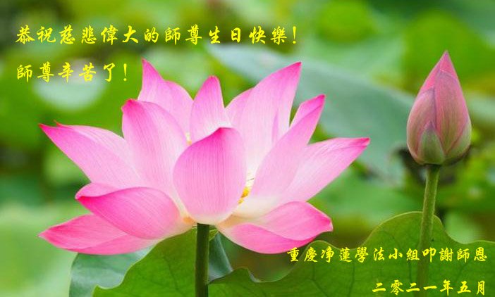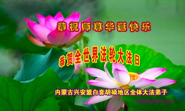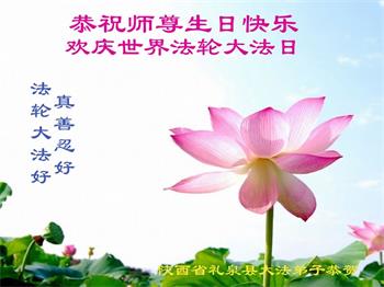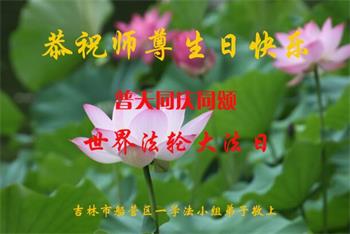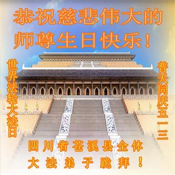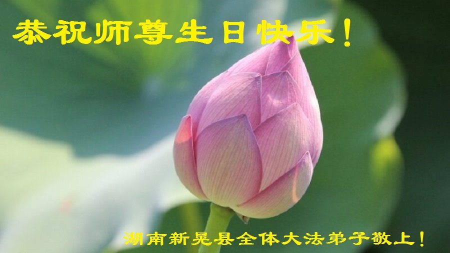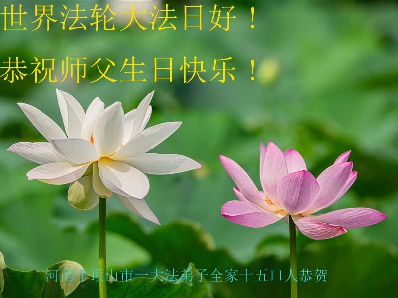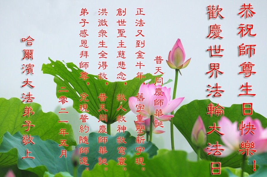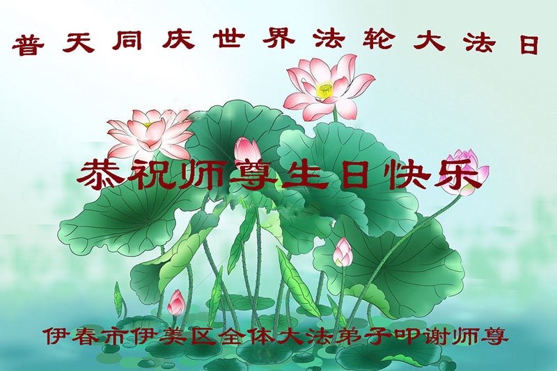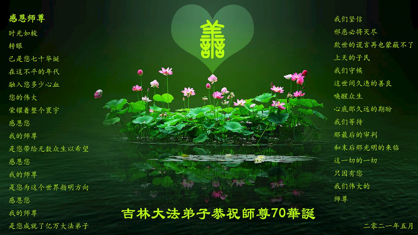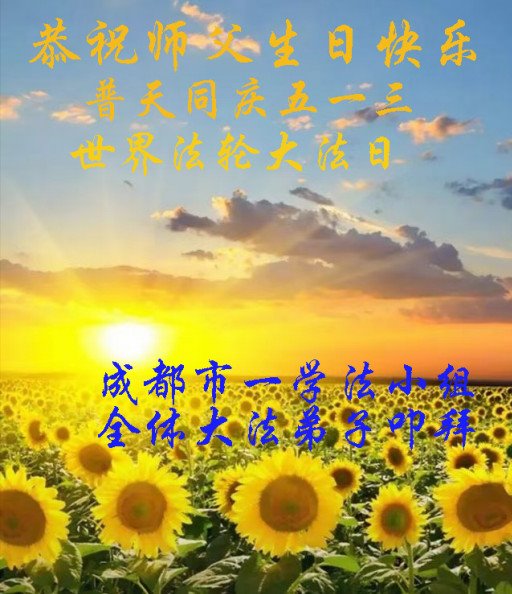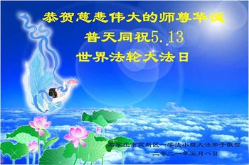 在师尊华诞暨世界法轮大法日来临之际,中国大陆一新学员及家人同修恭祝慈悲伟大的师尊生日快乐!谢谢师尊的慈悲苦度!