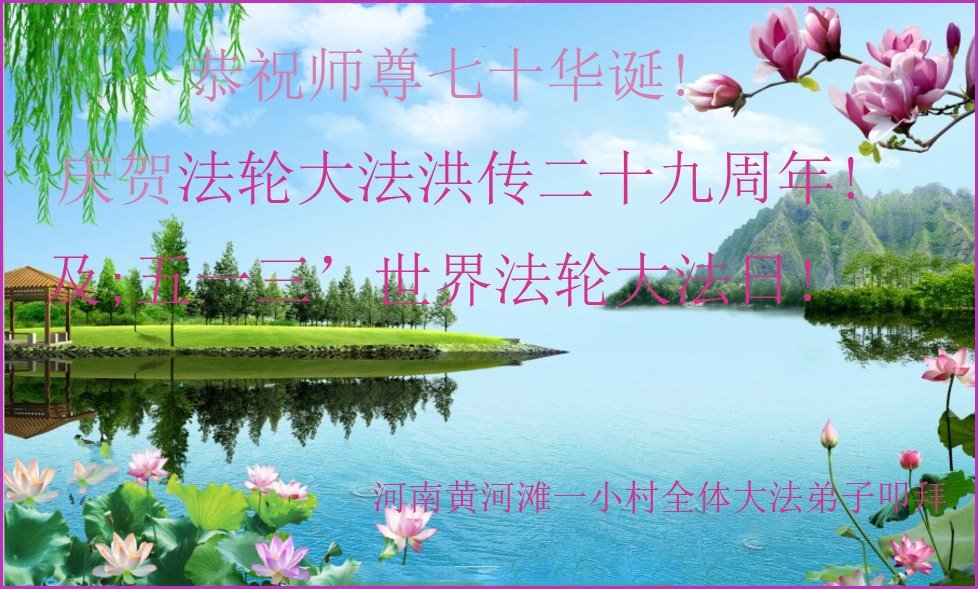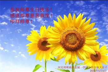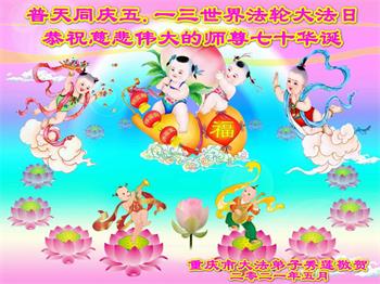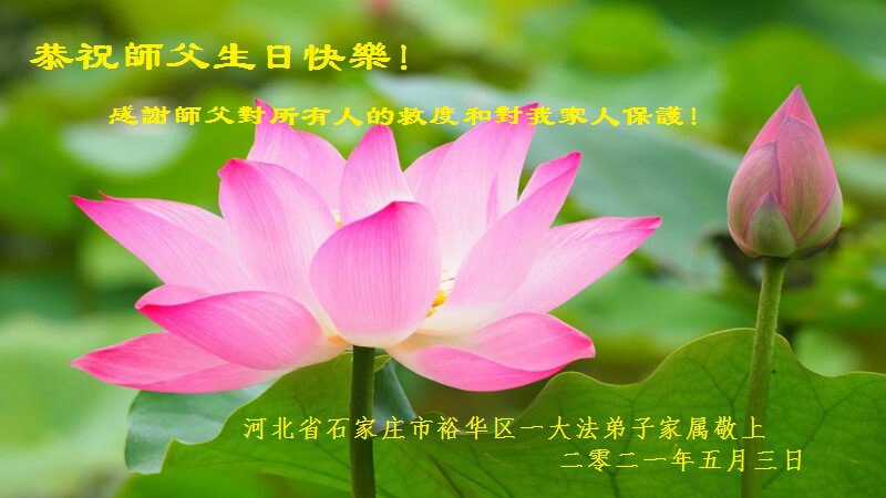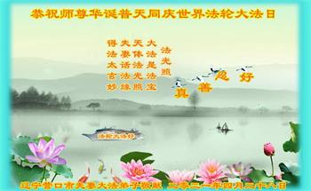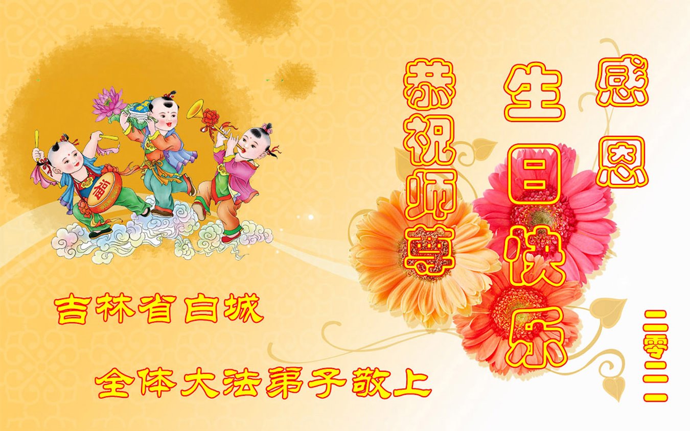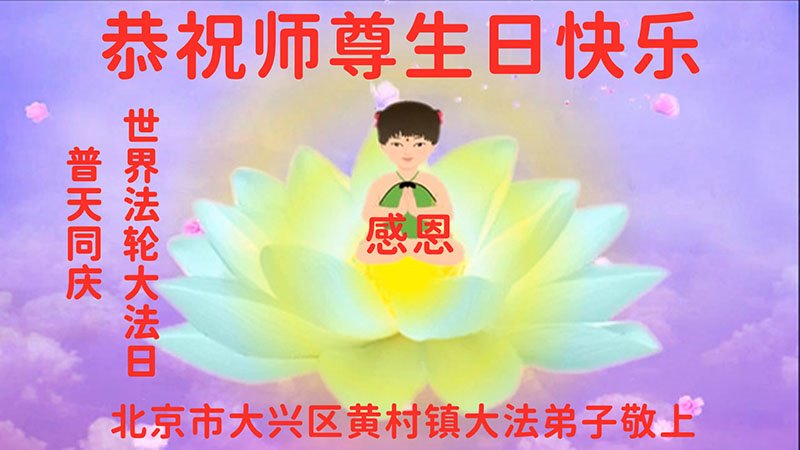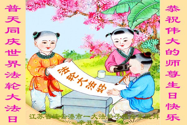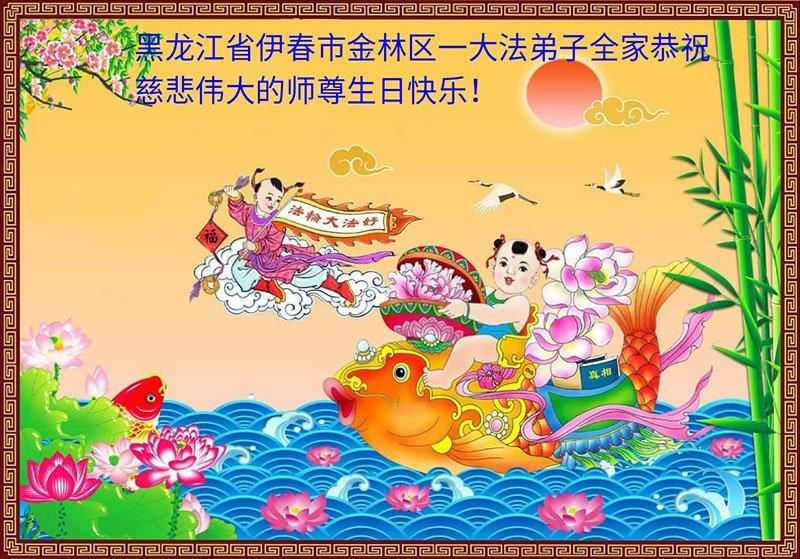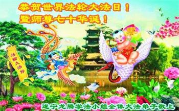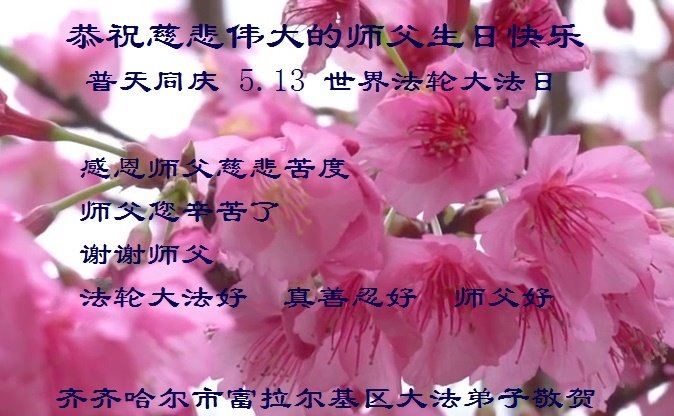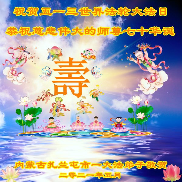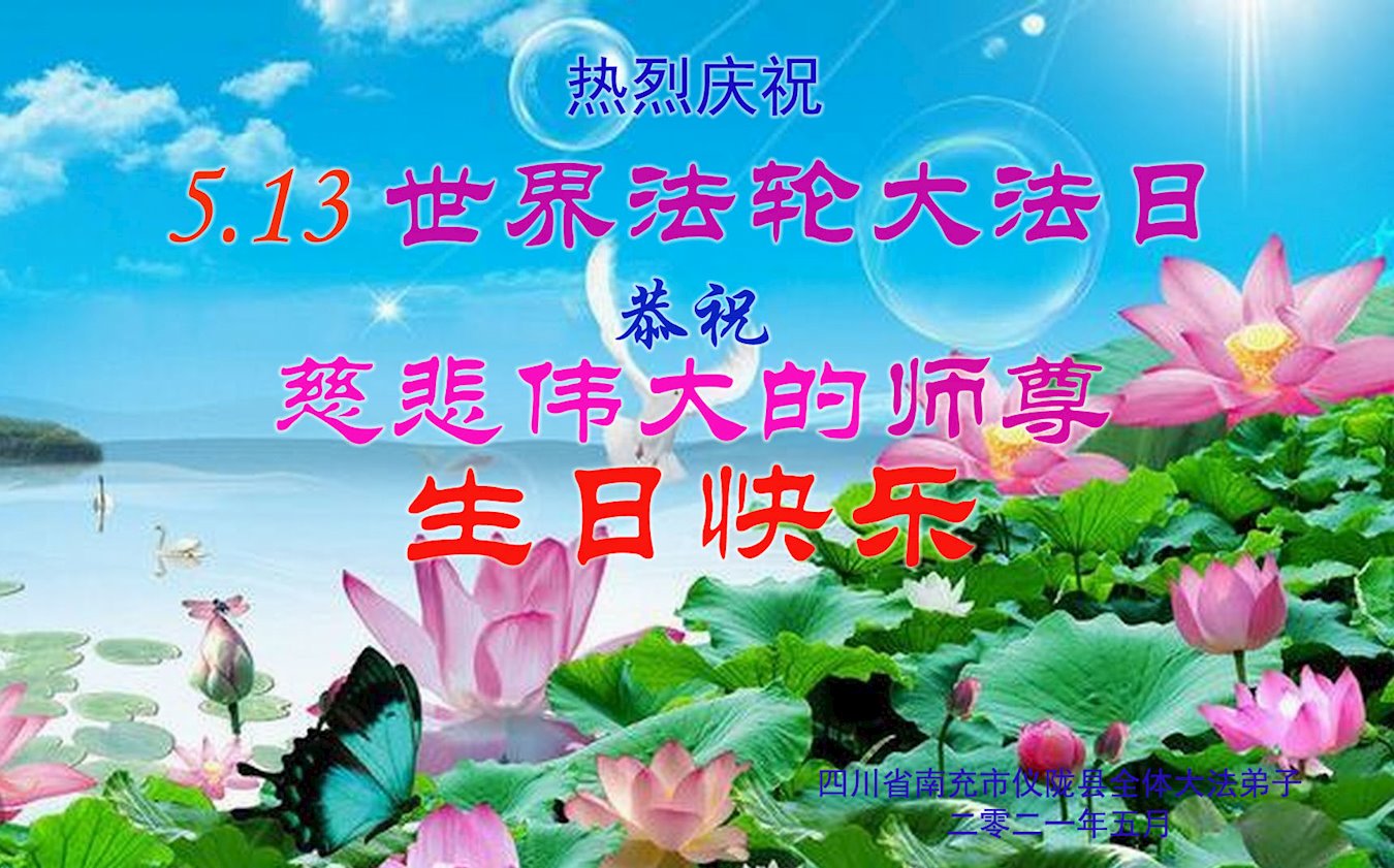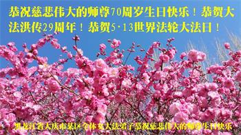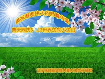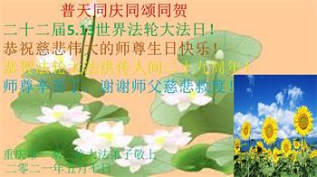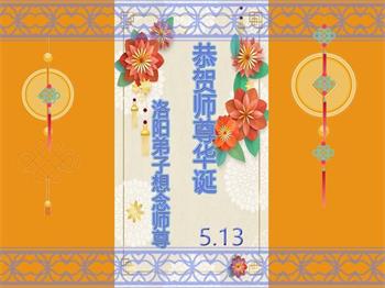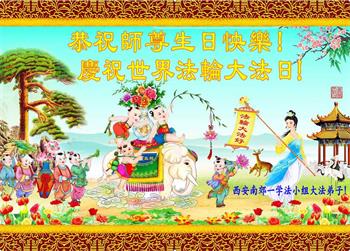 在师尊华诞暨世界法轮大法日来临之际,中国大陆一新学员及家人同修恭祝慈悲伟大的师尊生日快乐!谢谢师尊的慈悲苦度!