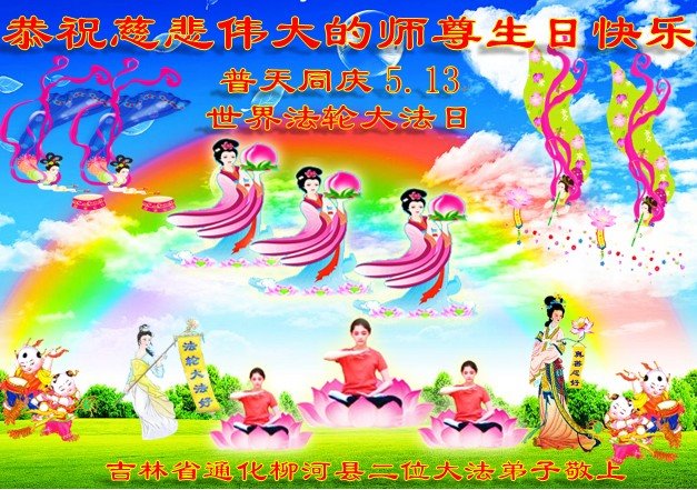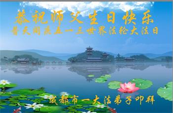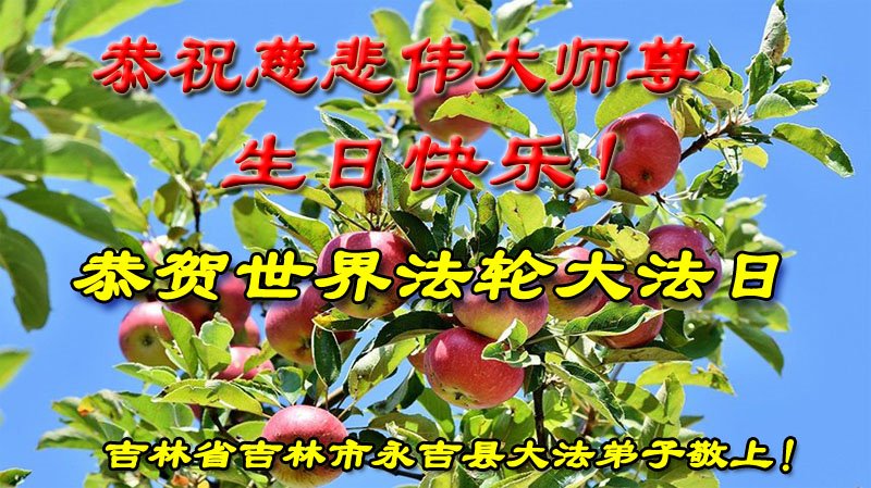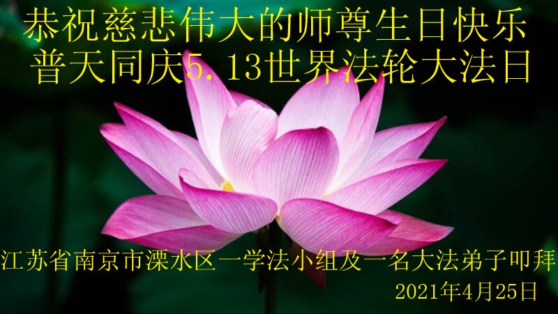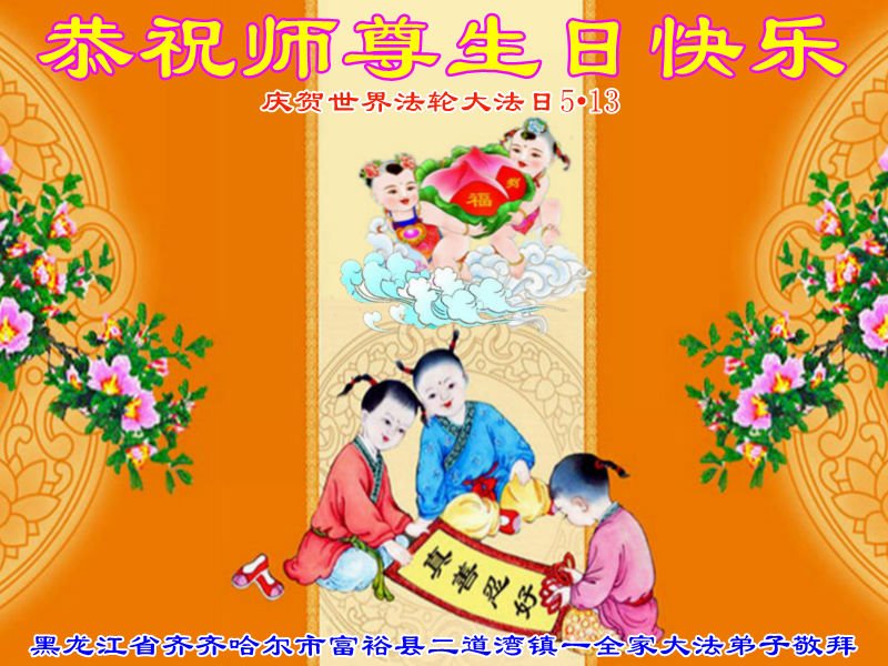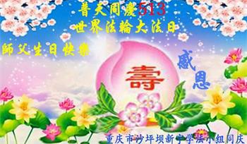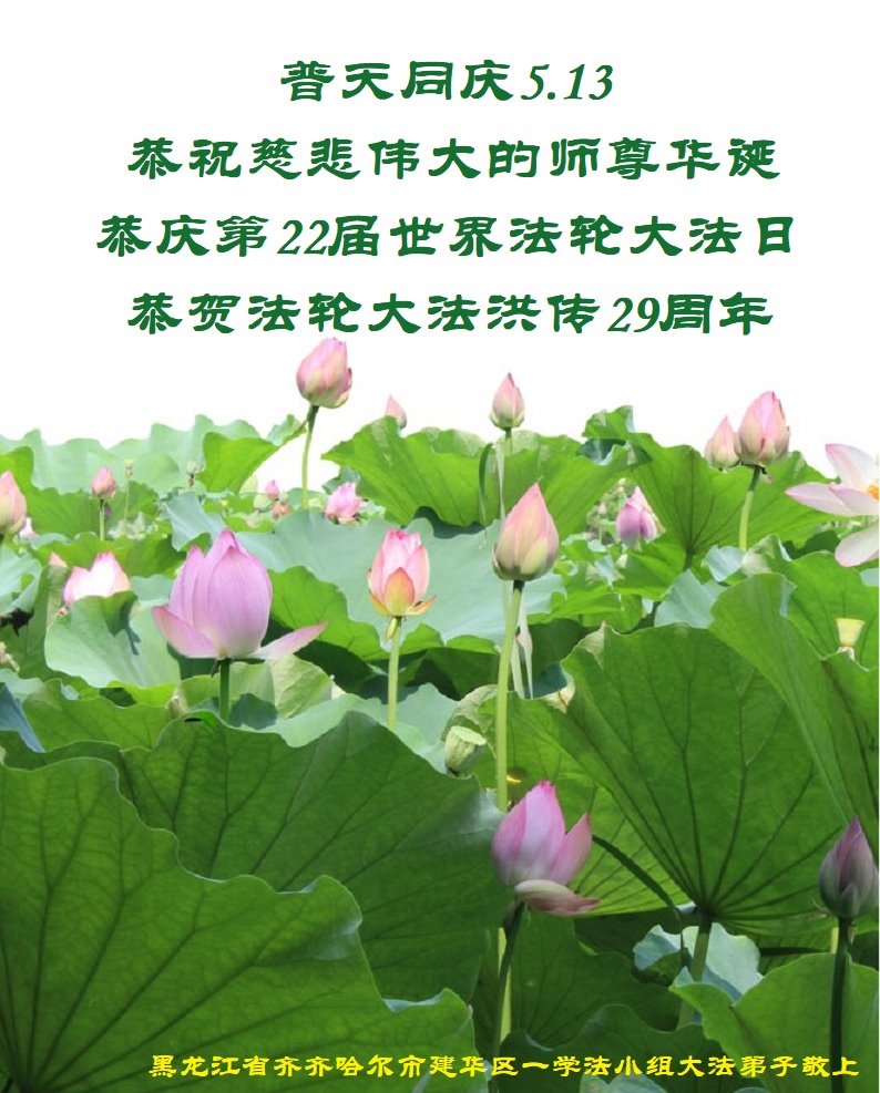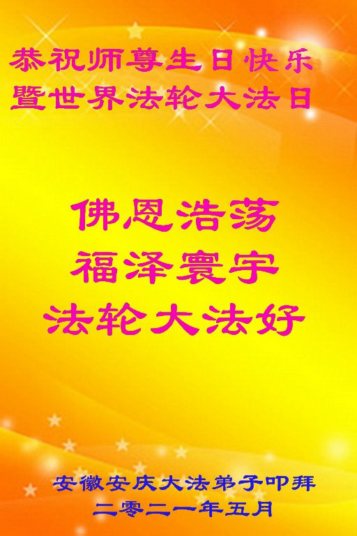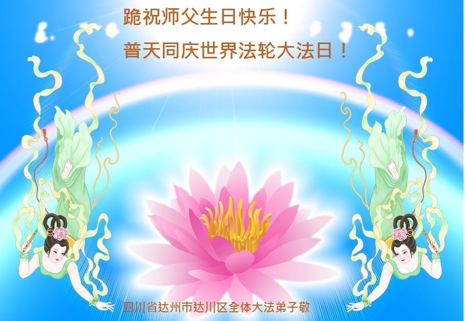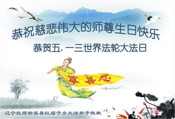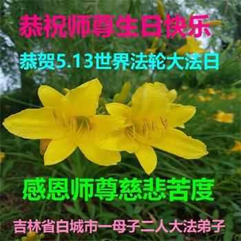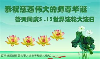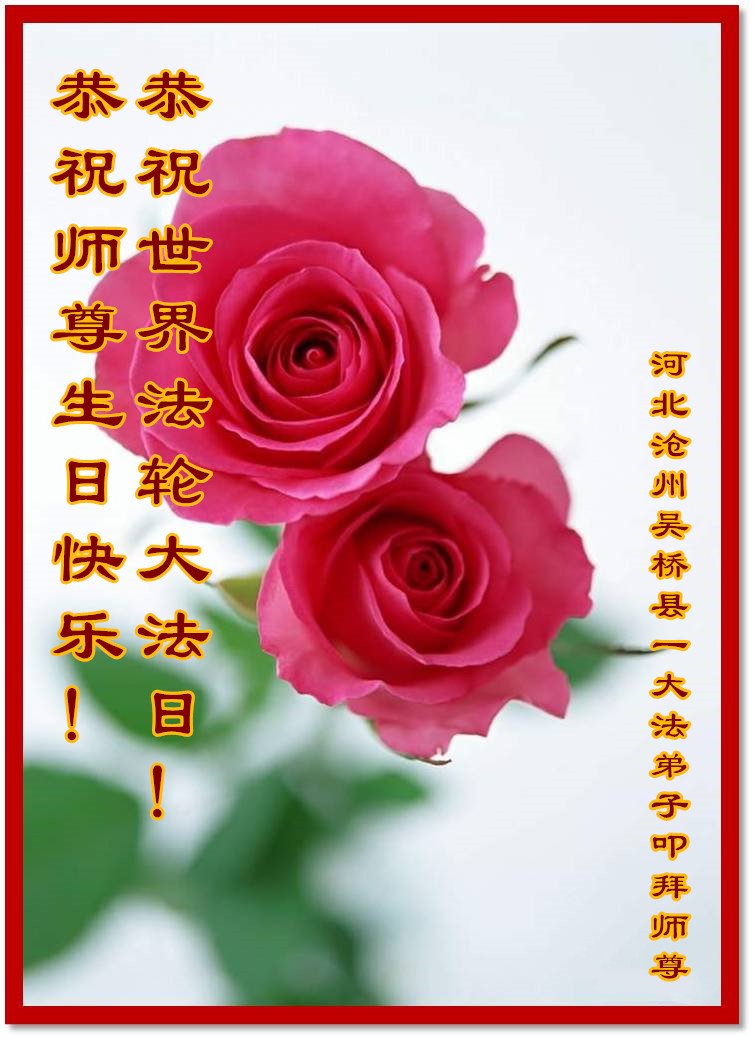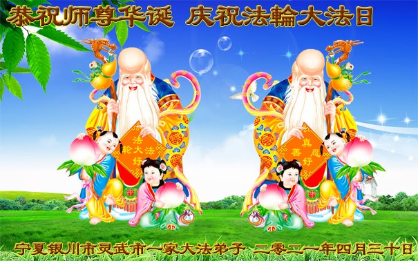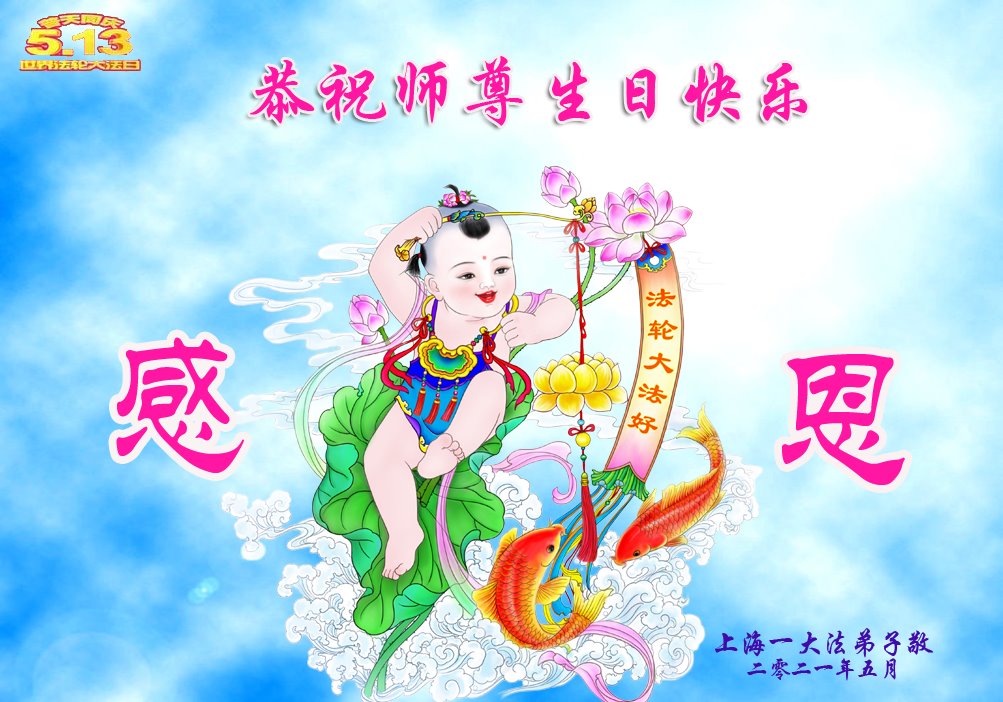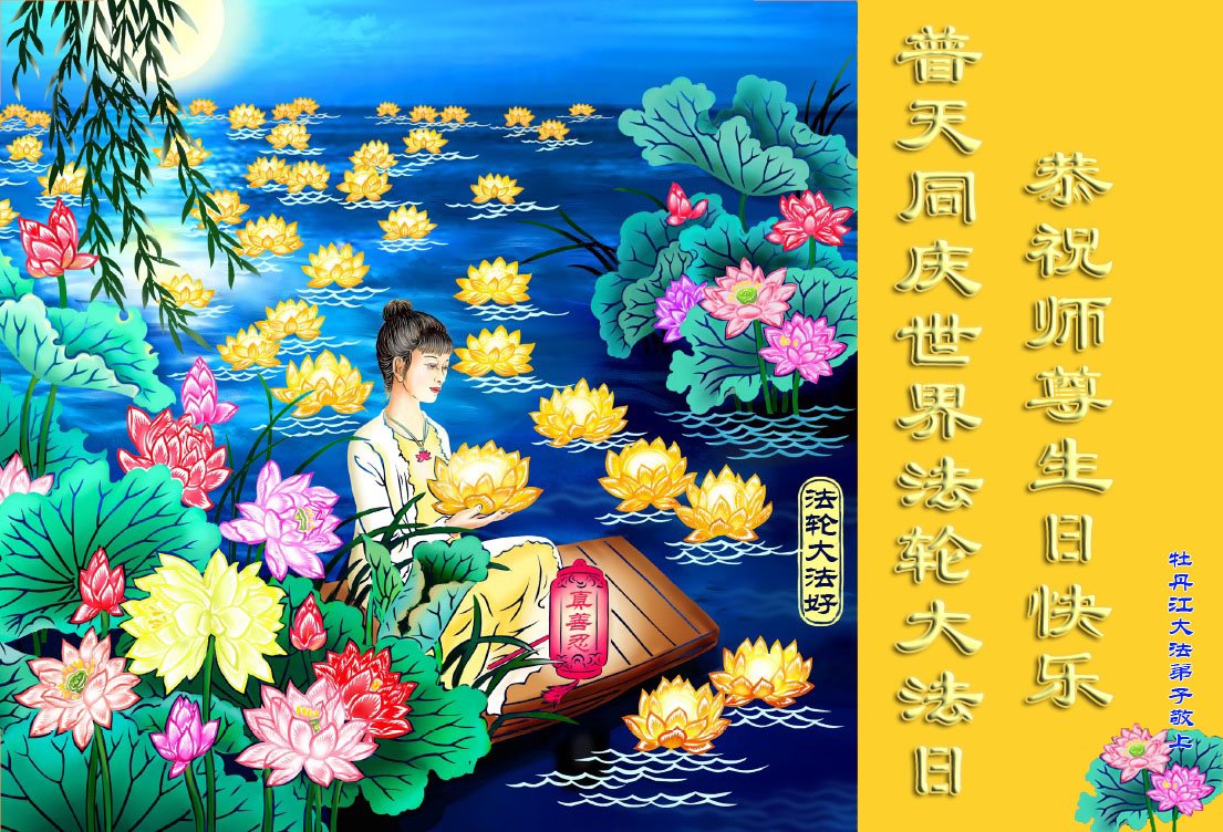 在师尊华诞暨世界法轮大法日来临之际,中国大陆一新学员及家人同修恭祝慈悲伟大的师尊生日快乐!谢谢师尊的慈悲苦度!