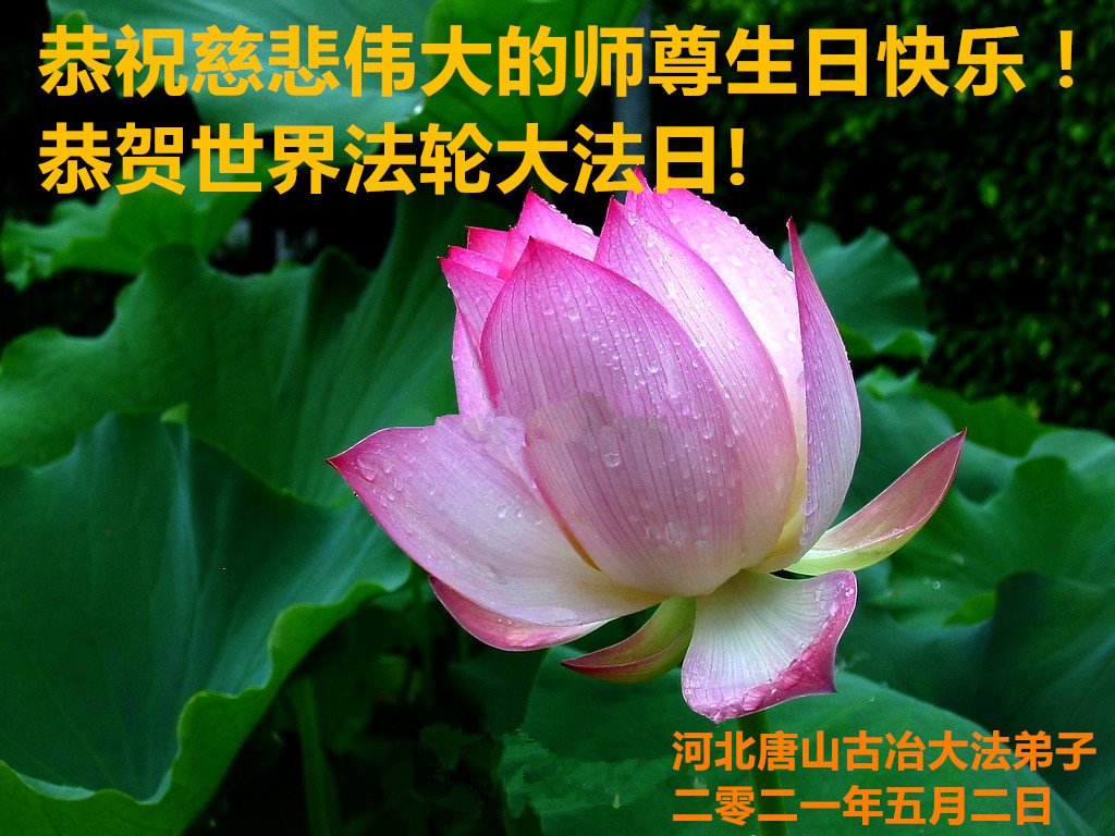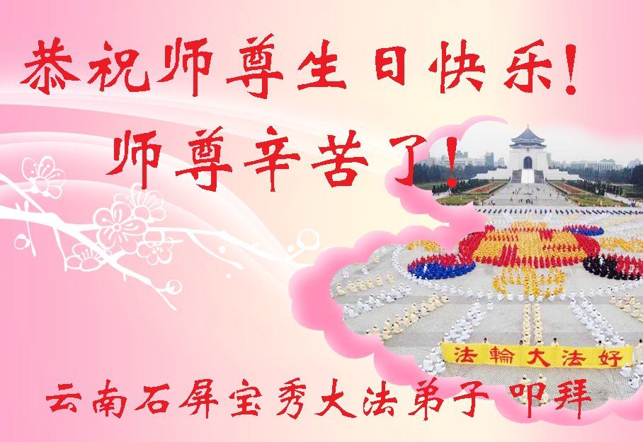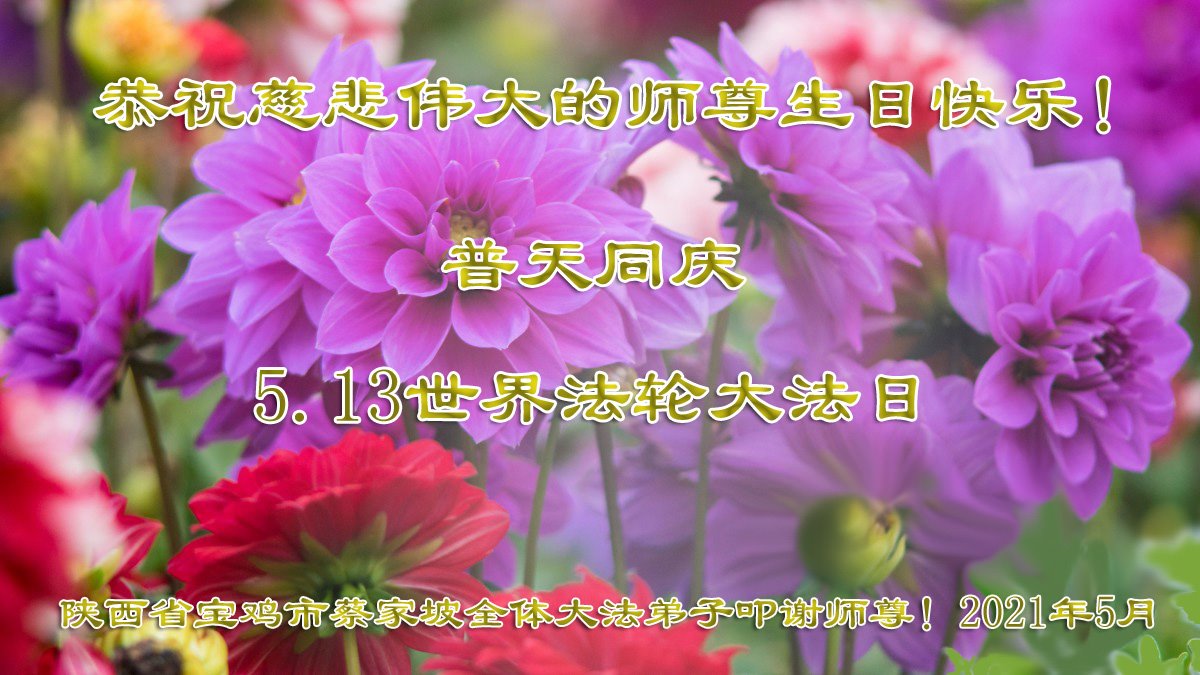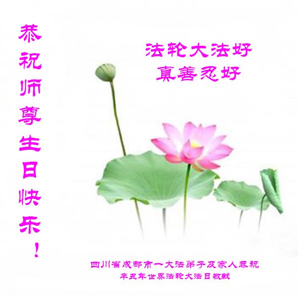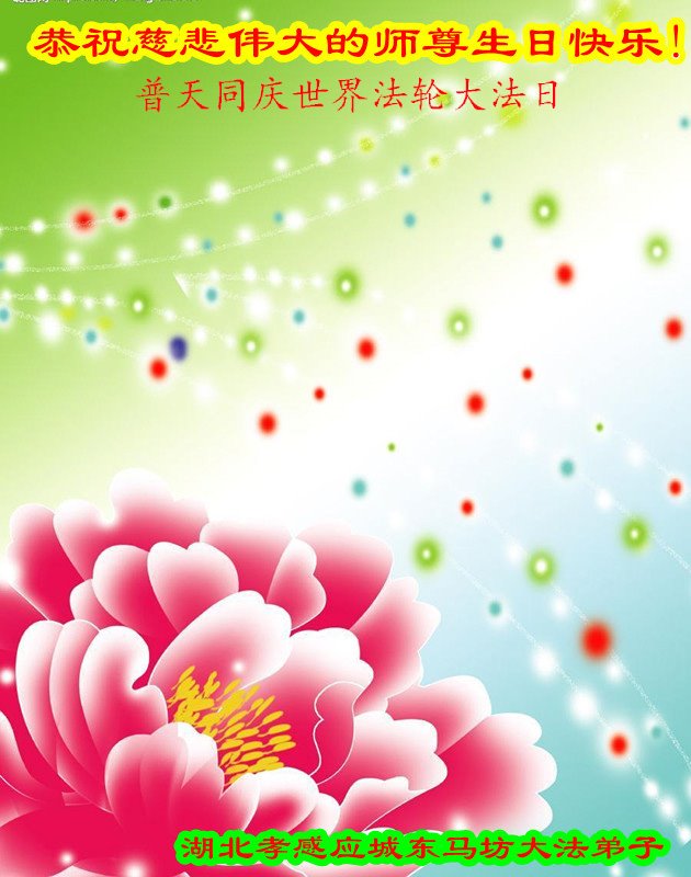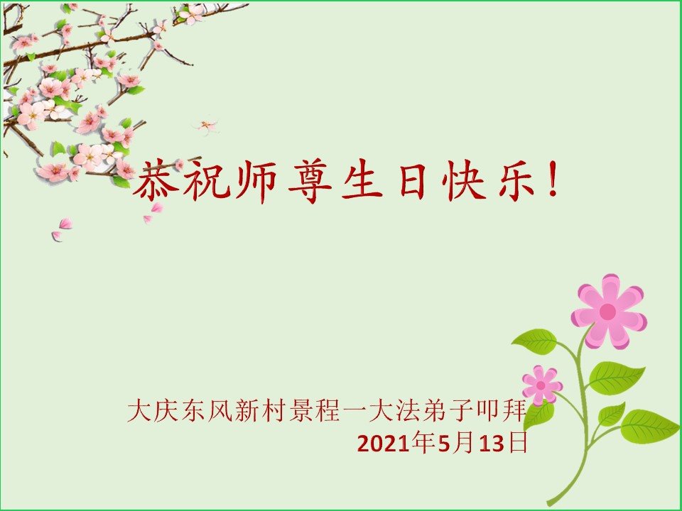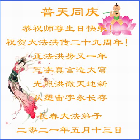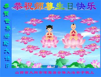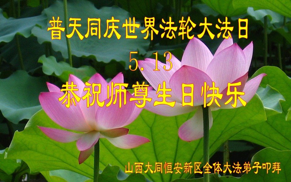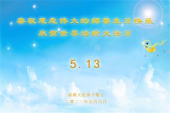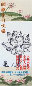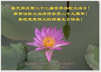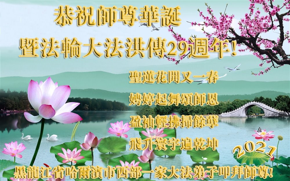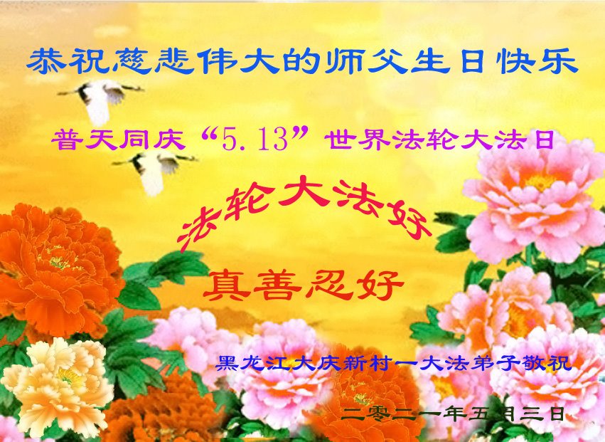 在师尊华诞暨世界法轮大法日来临之际,中国大陆一新学员及家人同修恭祝慈悲伟大的师尊生日快乐!谢谢师尊的慈悲苦度!