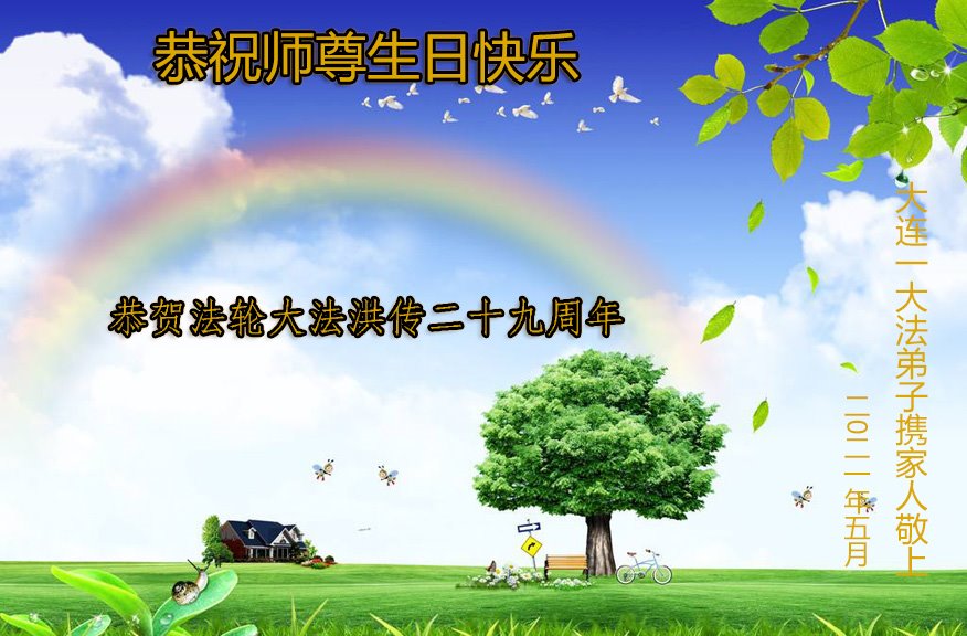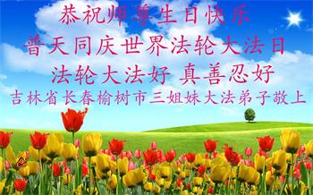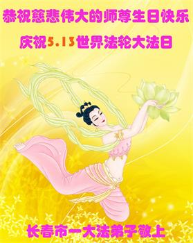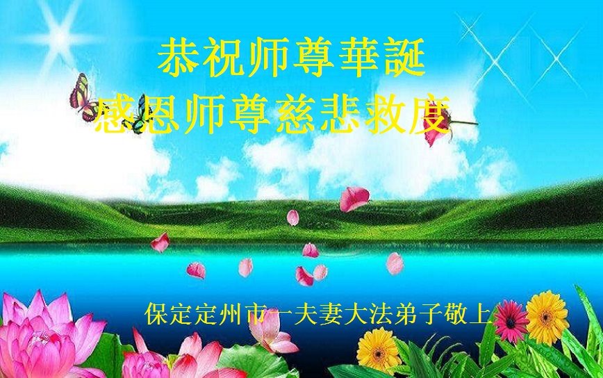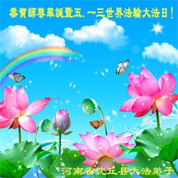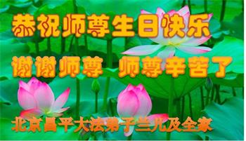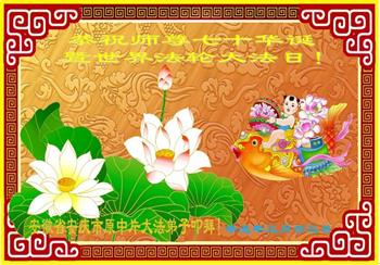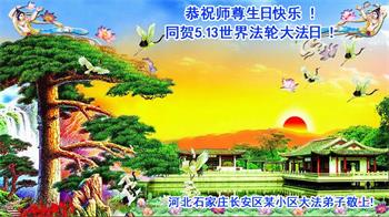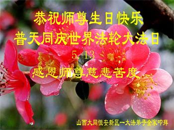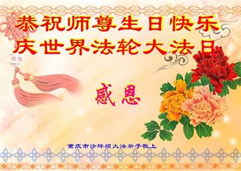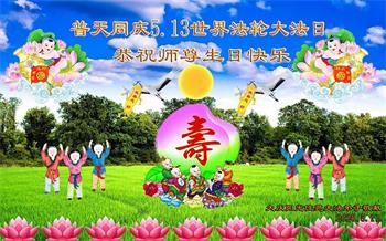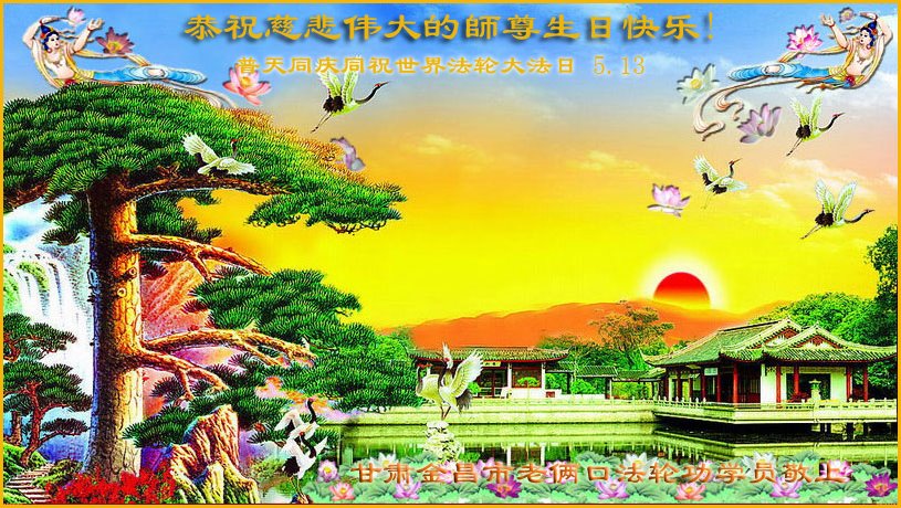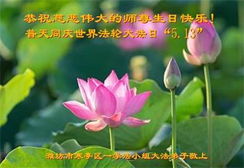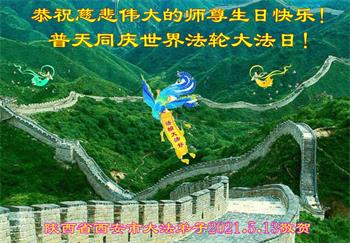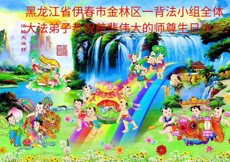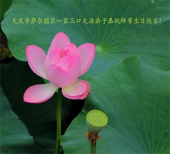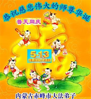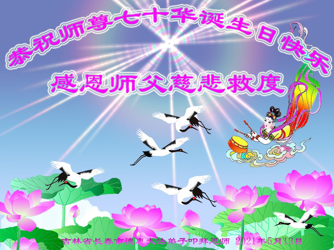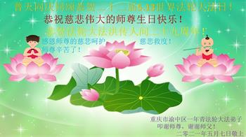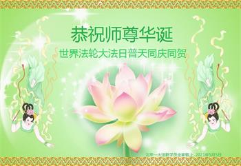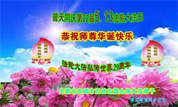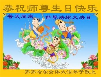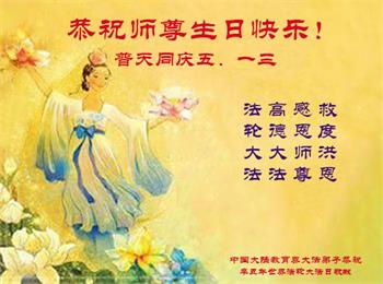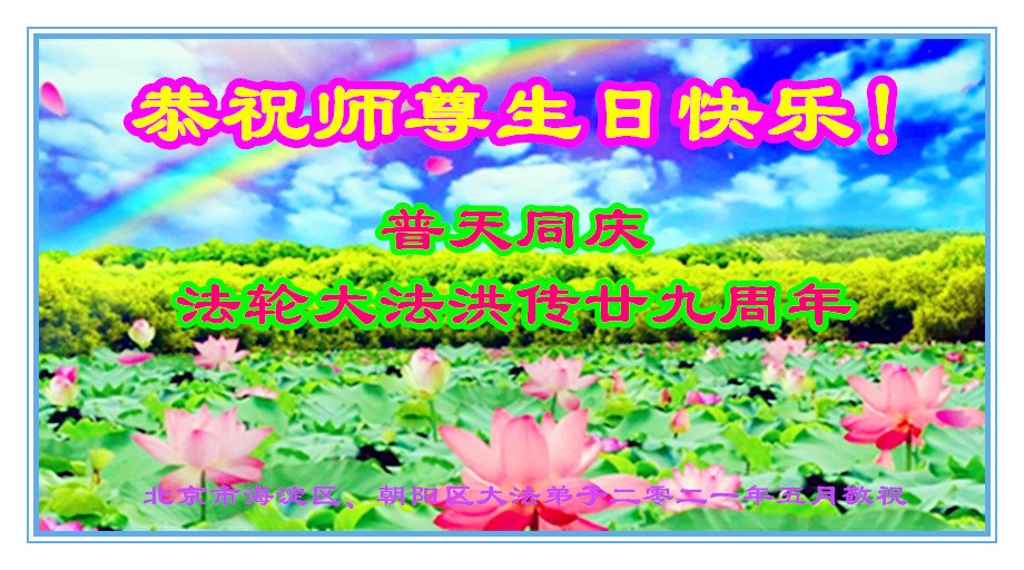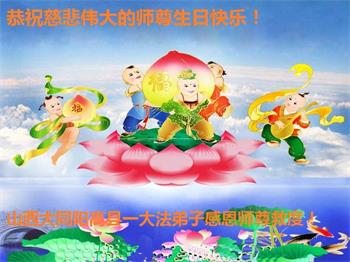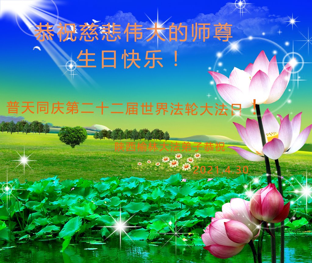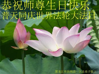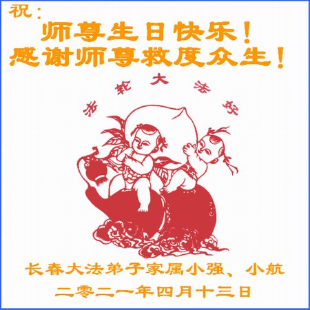 在师尊华诞暨世界法轮大法日来临之际,中国大陆一新学员及家人同修恭祝慈悲伟大的师尊生日快乐!谢谢师尊的慈悲苦度!