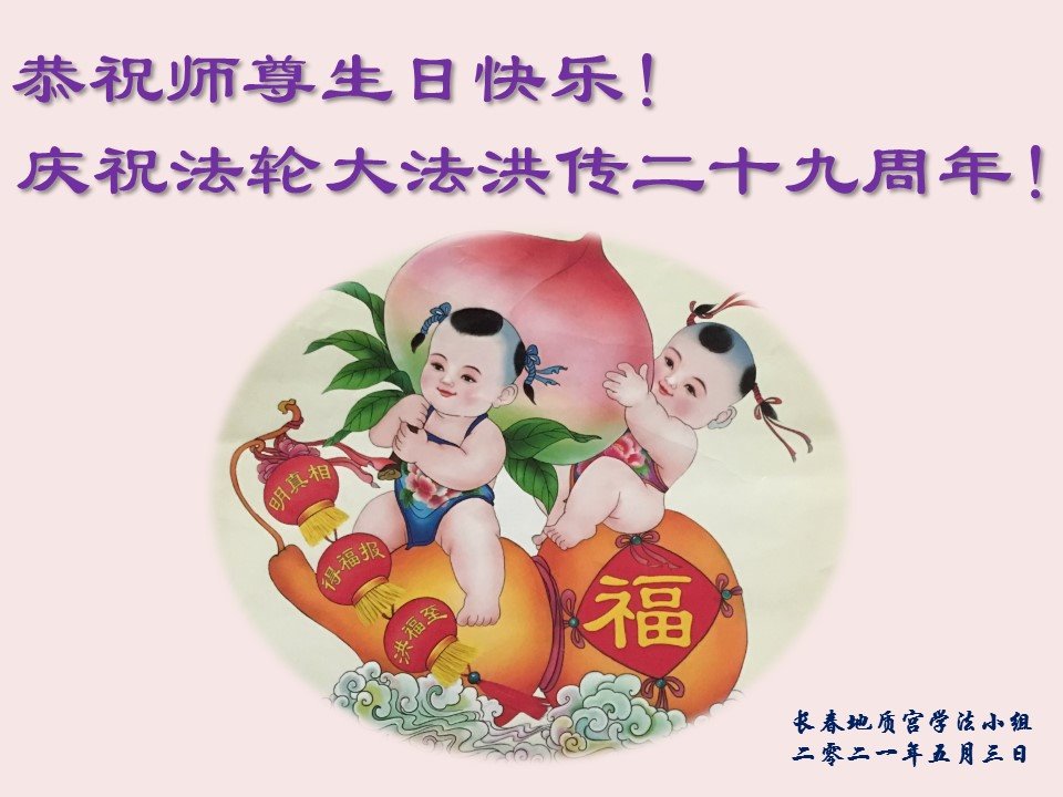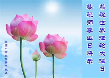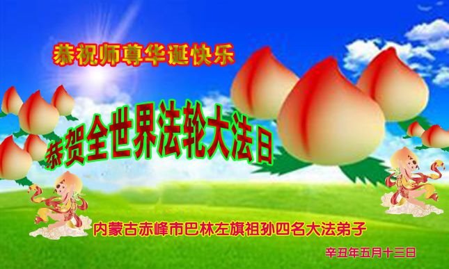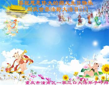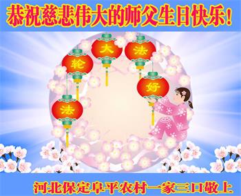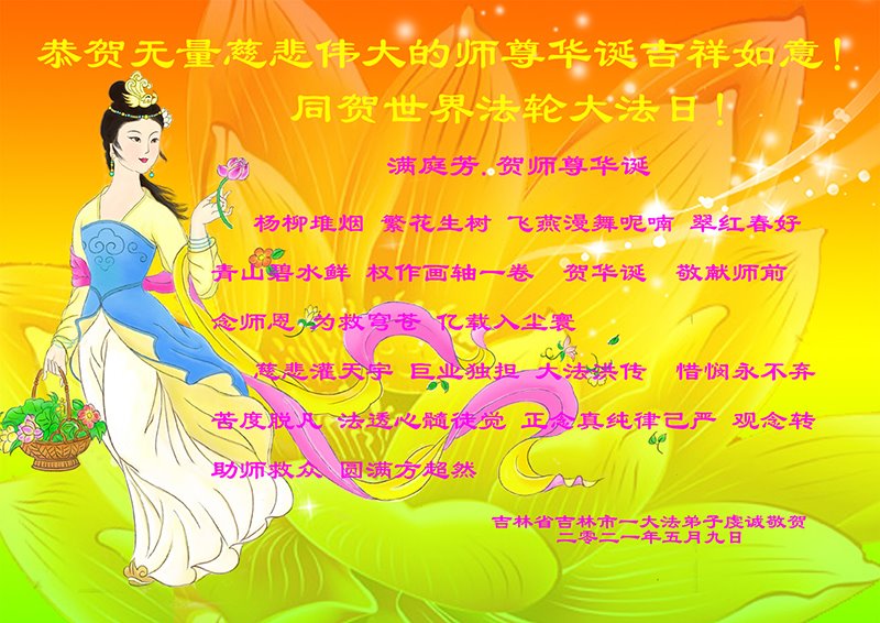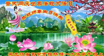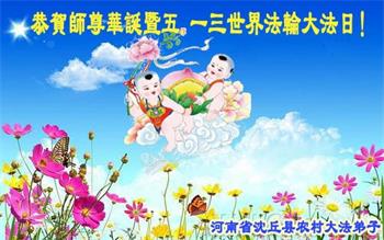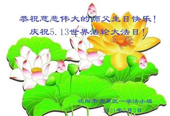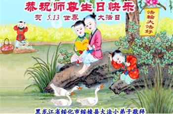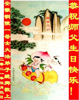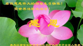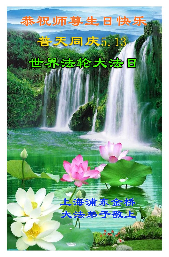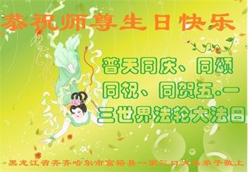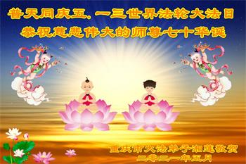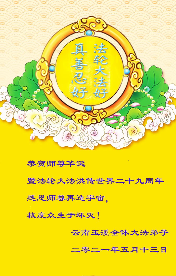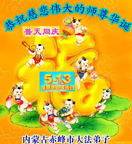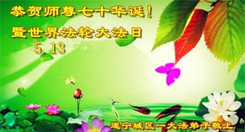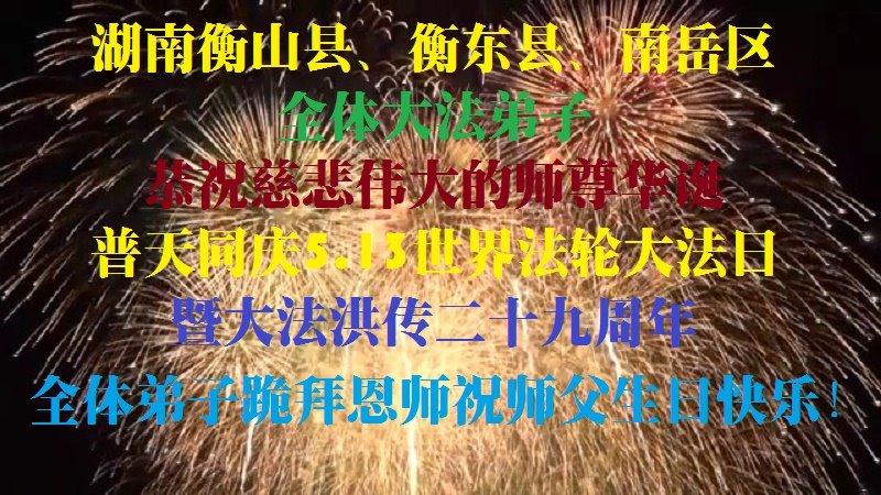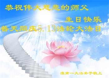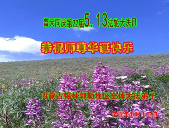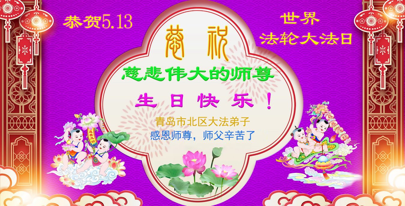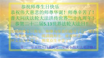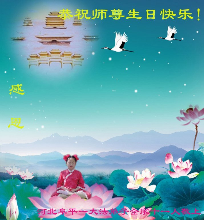 在师尊华诞暨世界法轮大法日来临之际,中国大陆一新学员及家人同修恭祝慈悲伟大的师尊生日快乐!谢谢师尊的慈悲苦度!