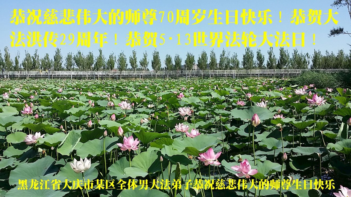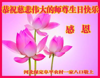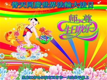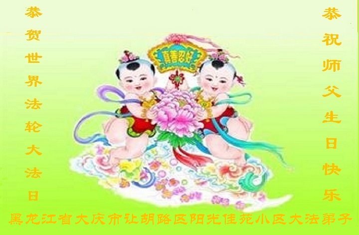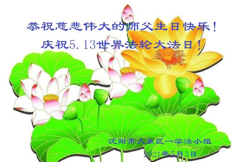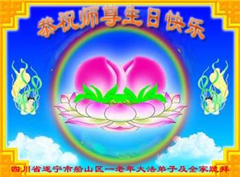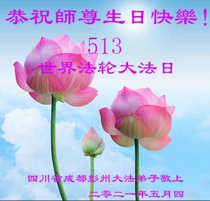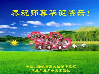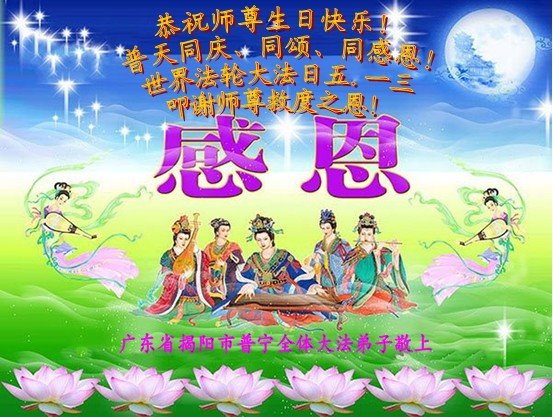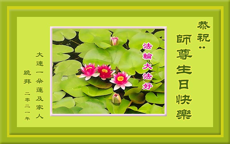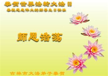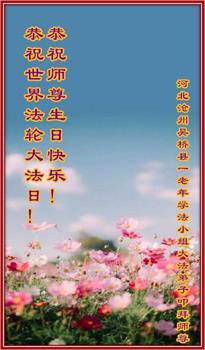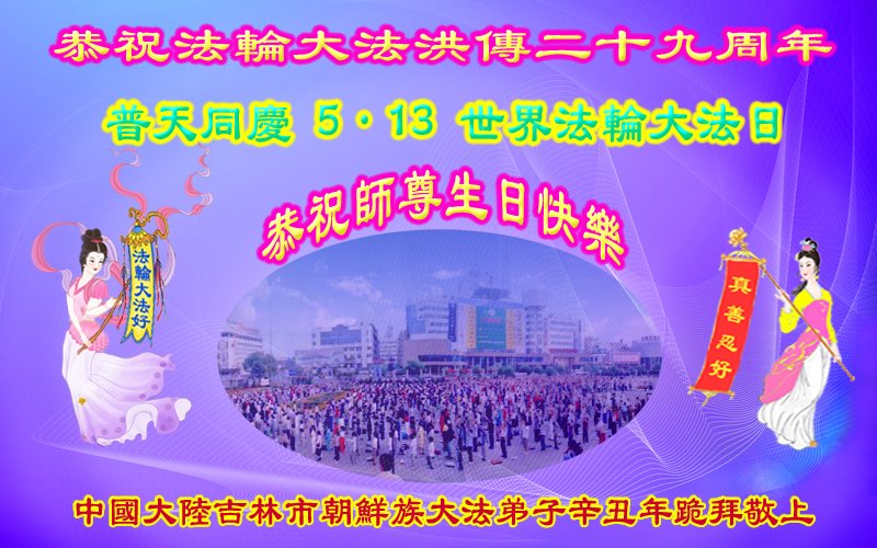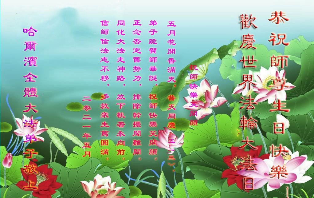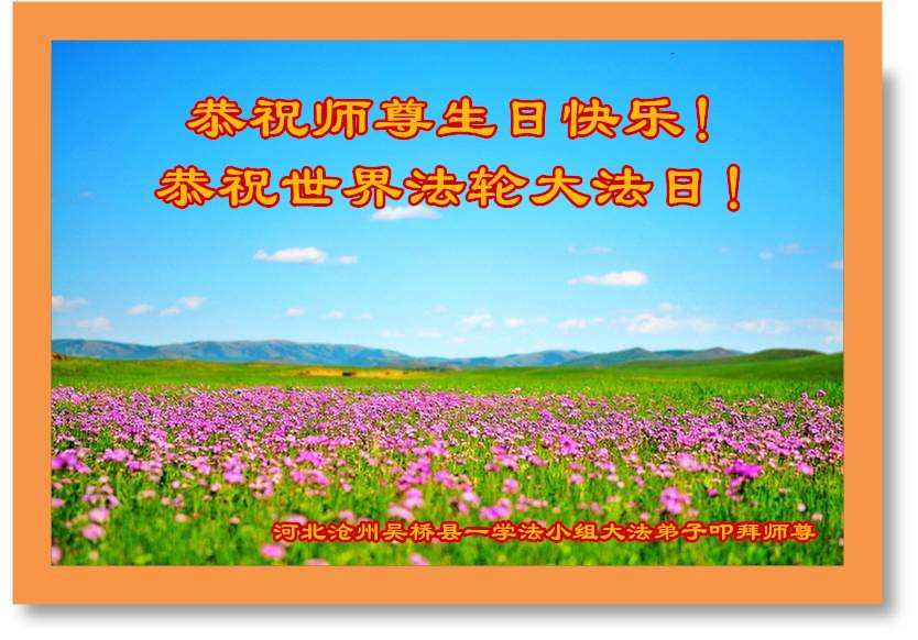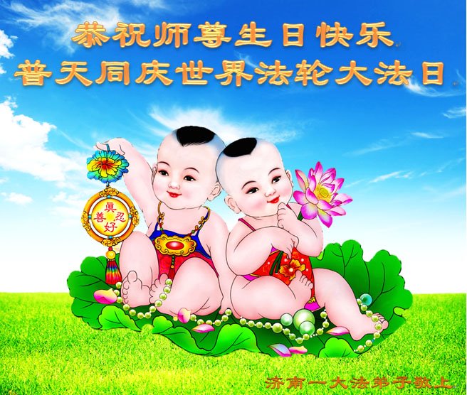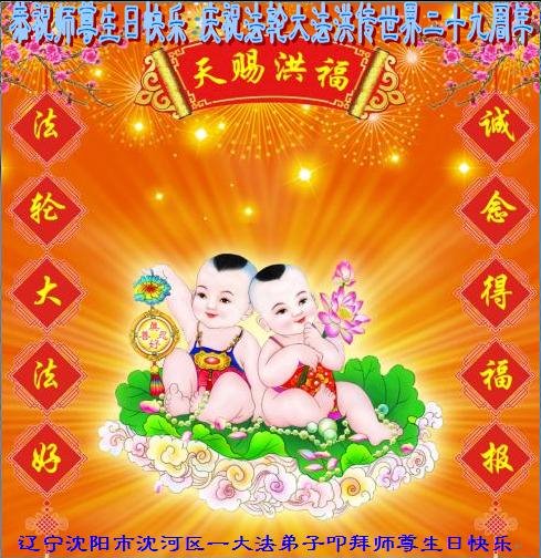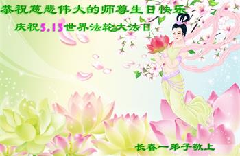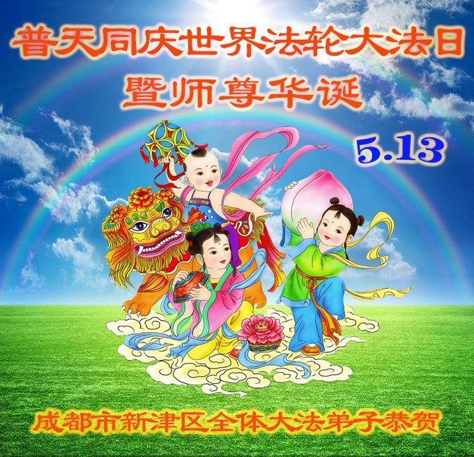 在师尊华诞暨世界法轮大法日来临之际,中国大陆一新学员及家人同修恭祝慈悲伟大的师尊生日快乐!谢谢师尊的慈悲苦度!