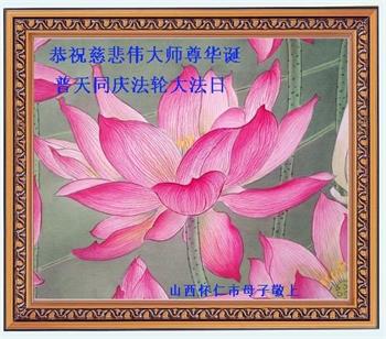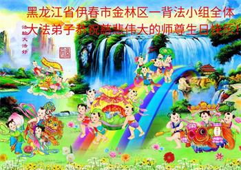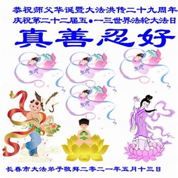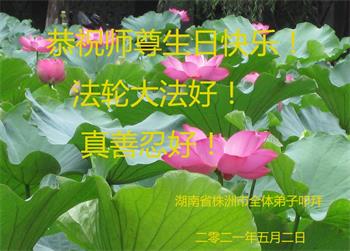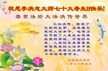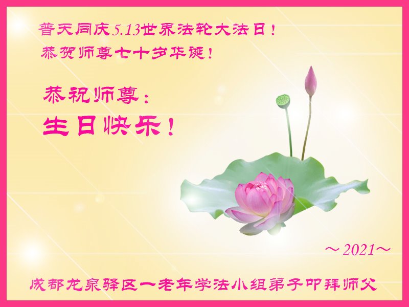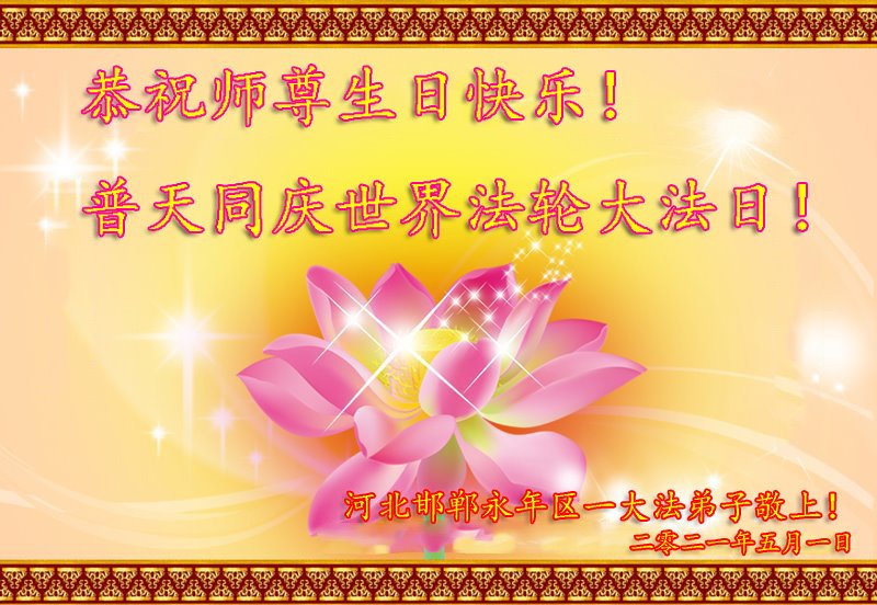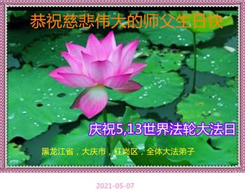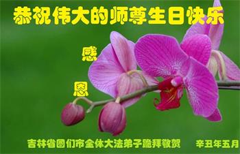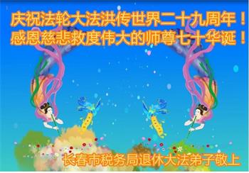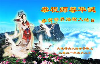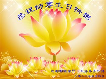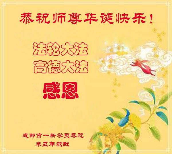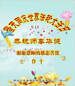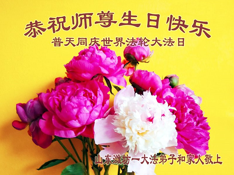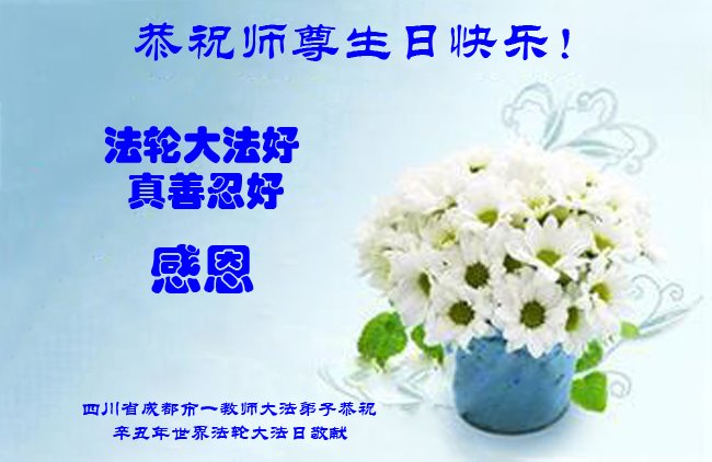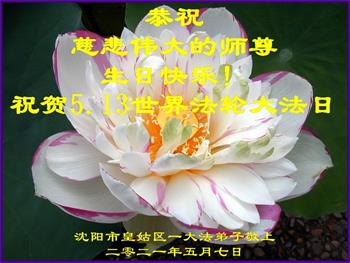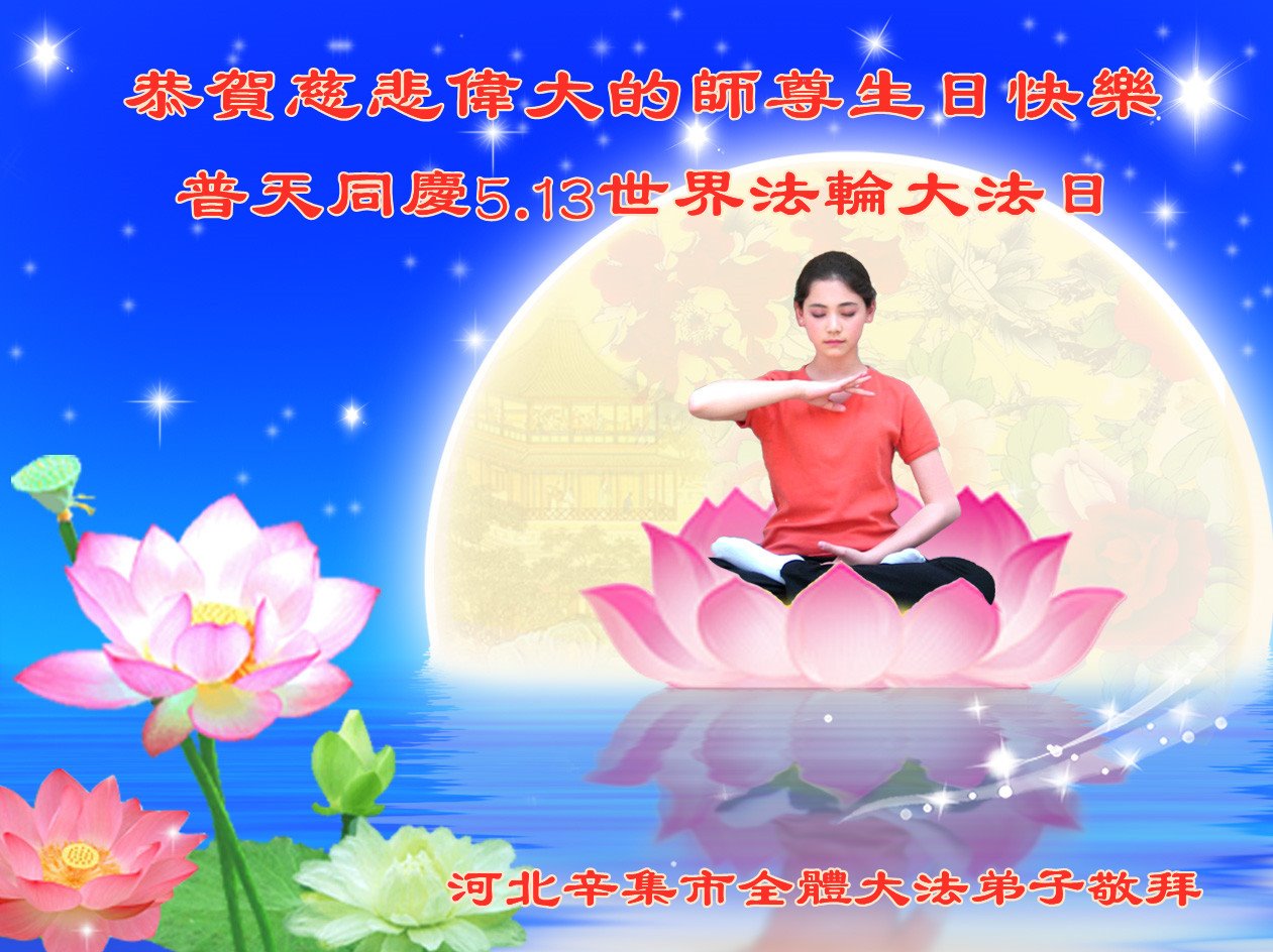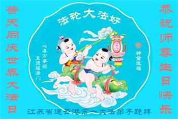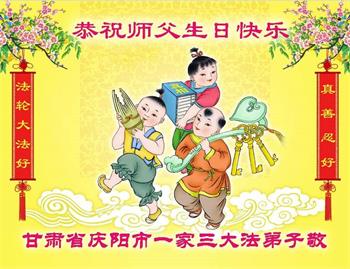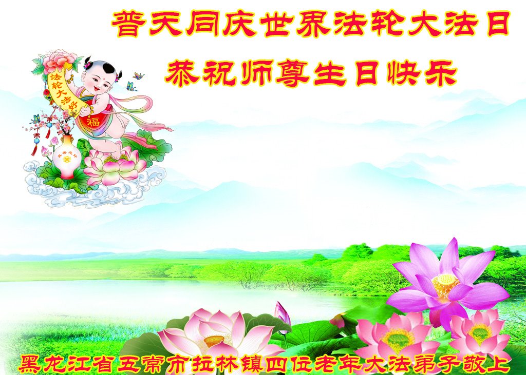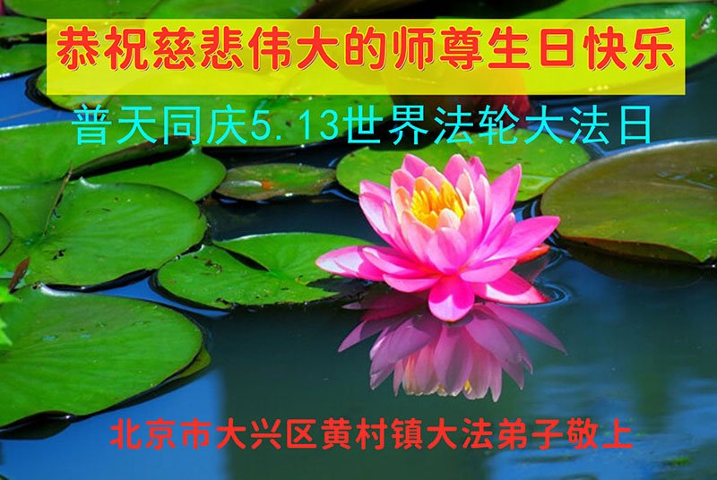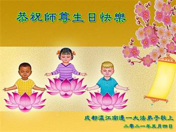 在师尊华诞暨世界法轮大法日来临之际,中国大陆一新学员及家人同修恭祝慈悲伟大的师尊生日快乐!谢谢师尊的慈悲苦度!