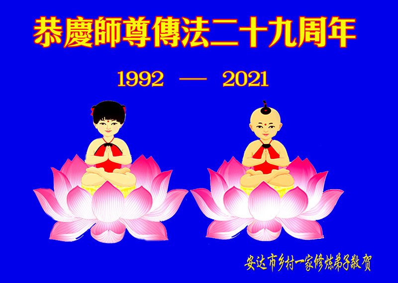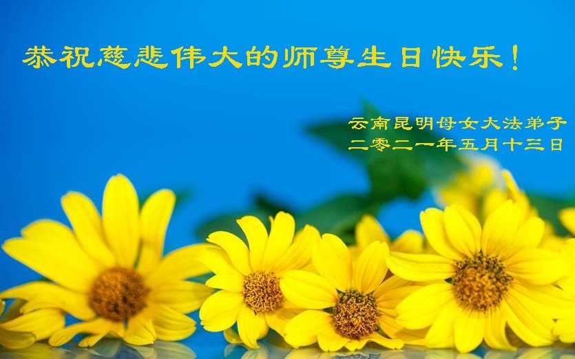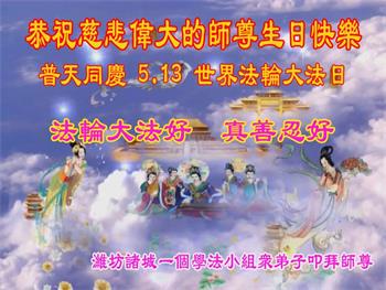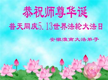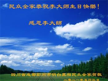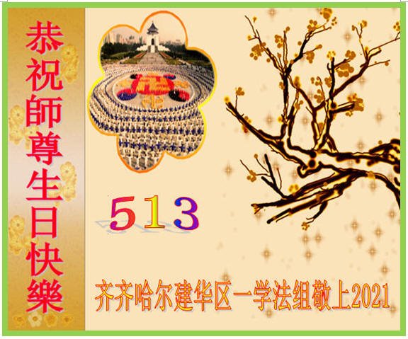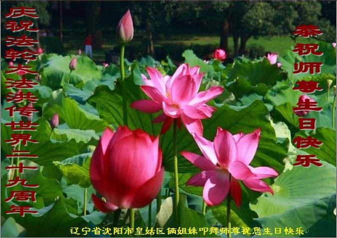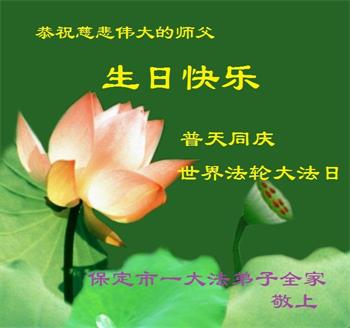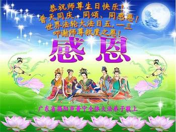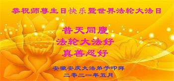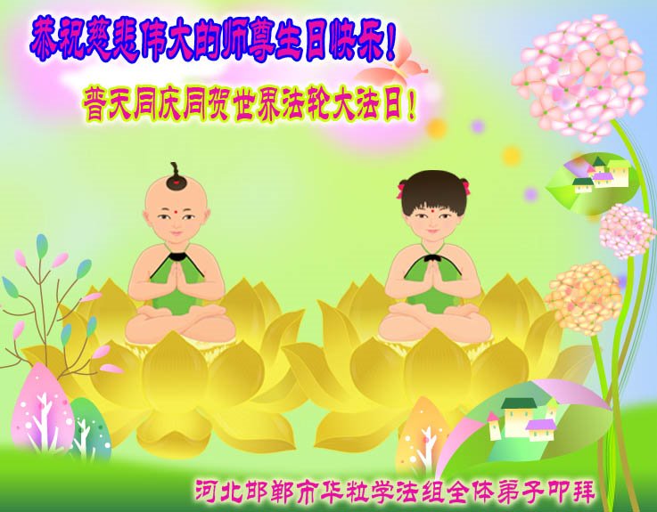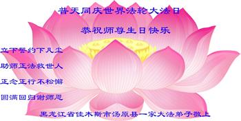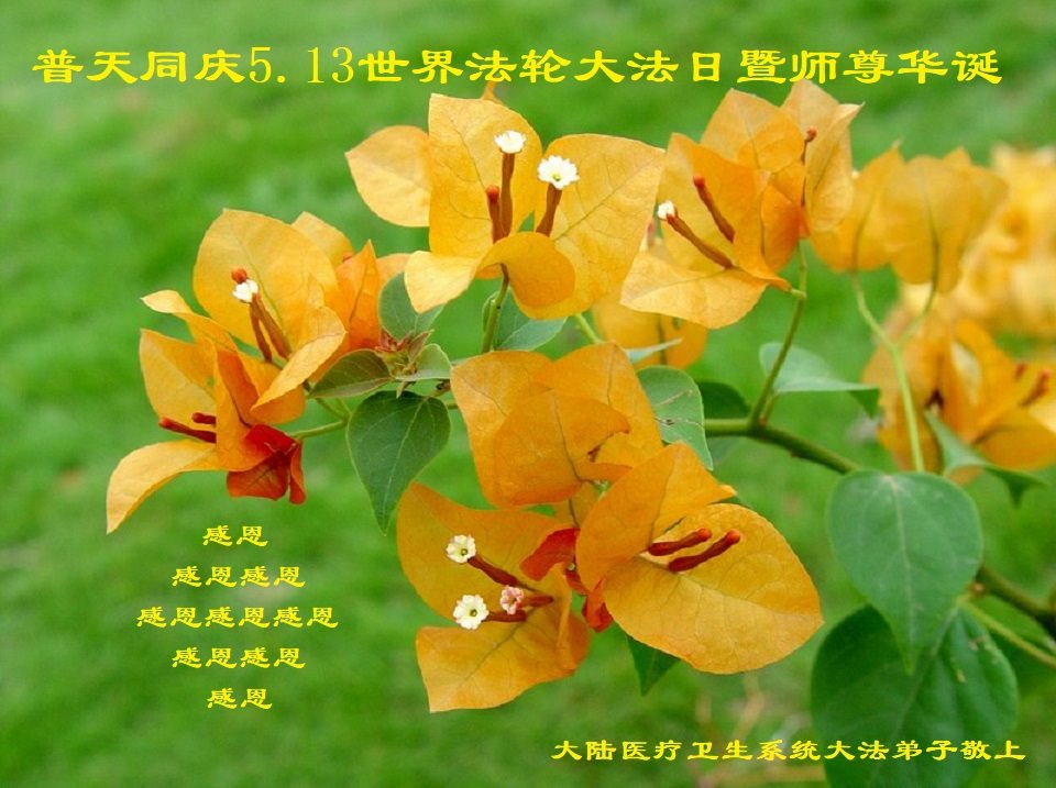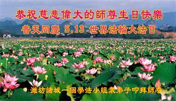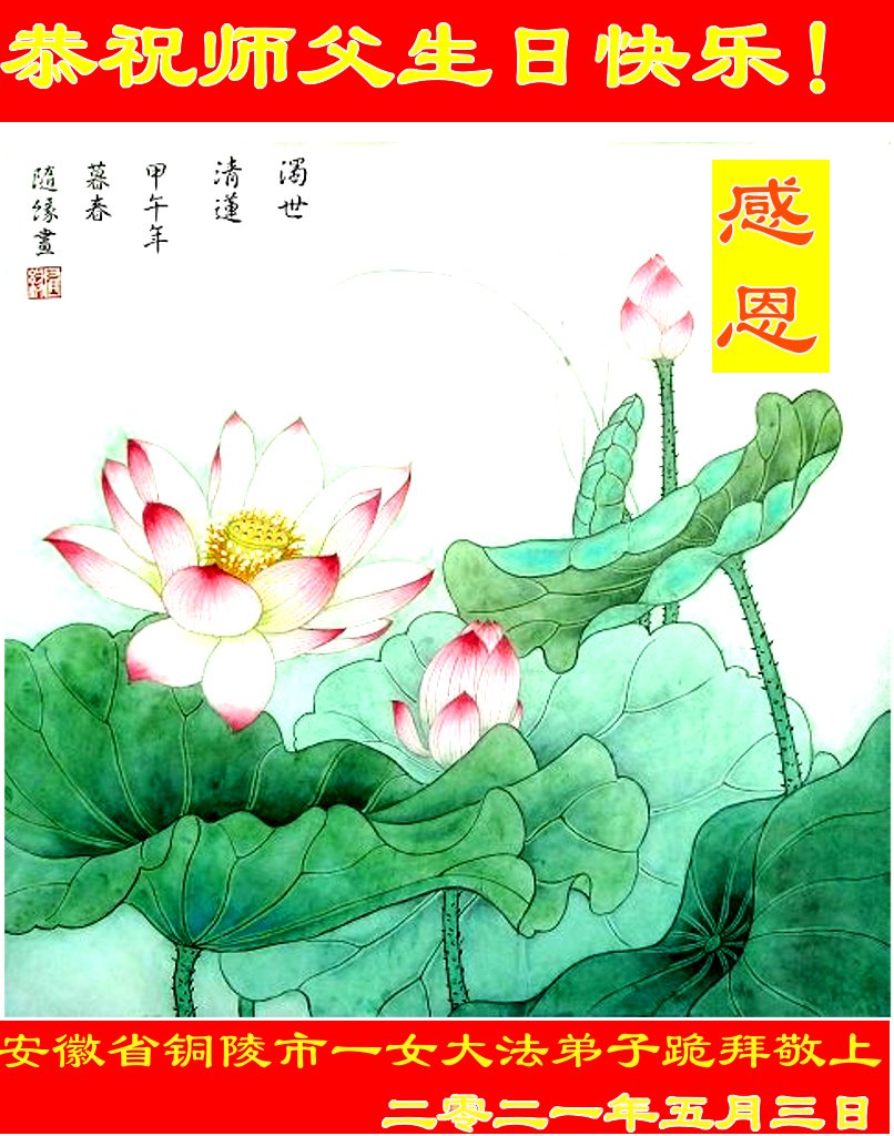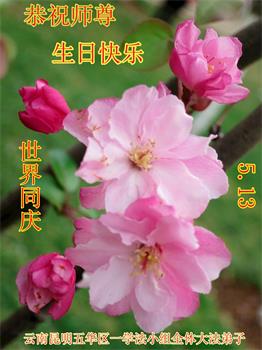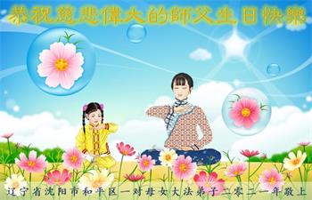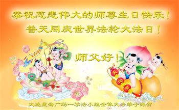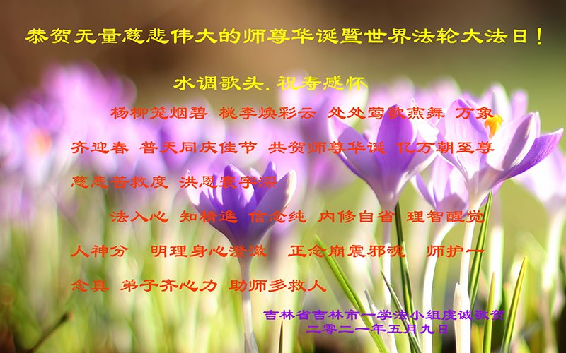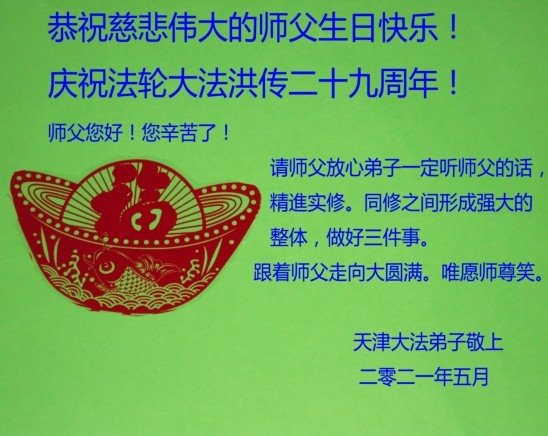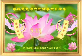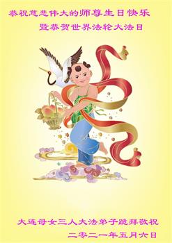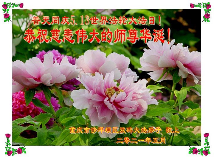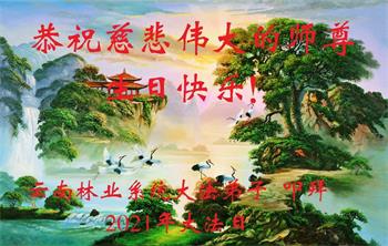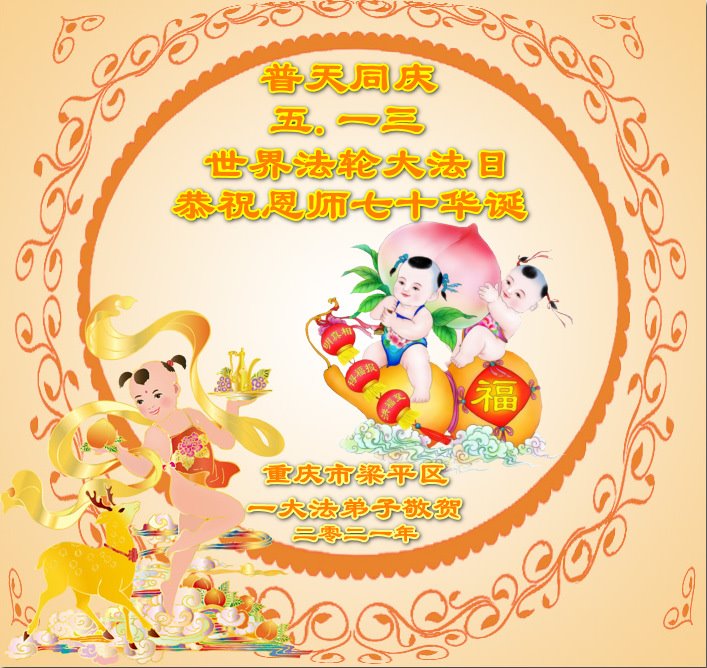 在师尊华诞暨世界法轮大法日来临之际,中国大陆一新学员及家人同修恭祝慈悲伟大的师尊生日快乐!谢谢师尊的慈悲苦度!
