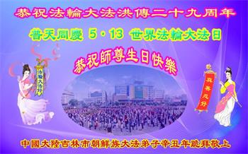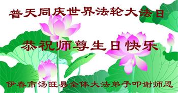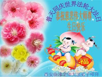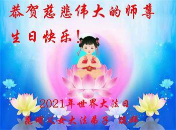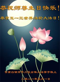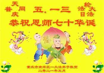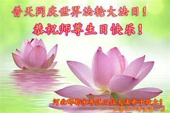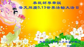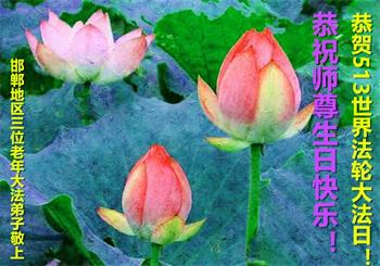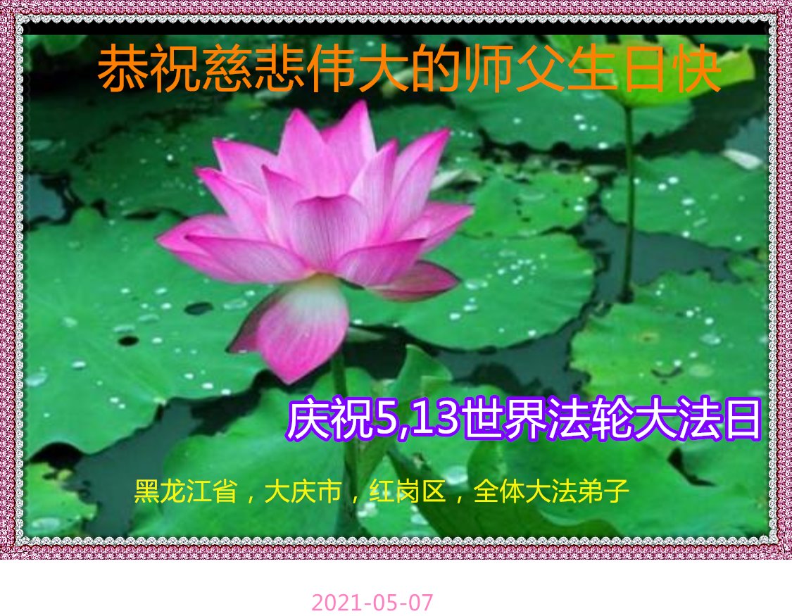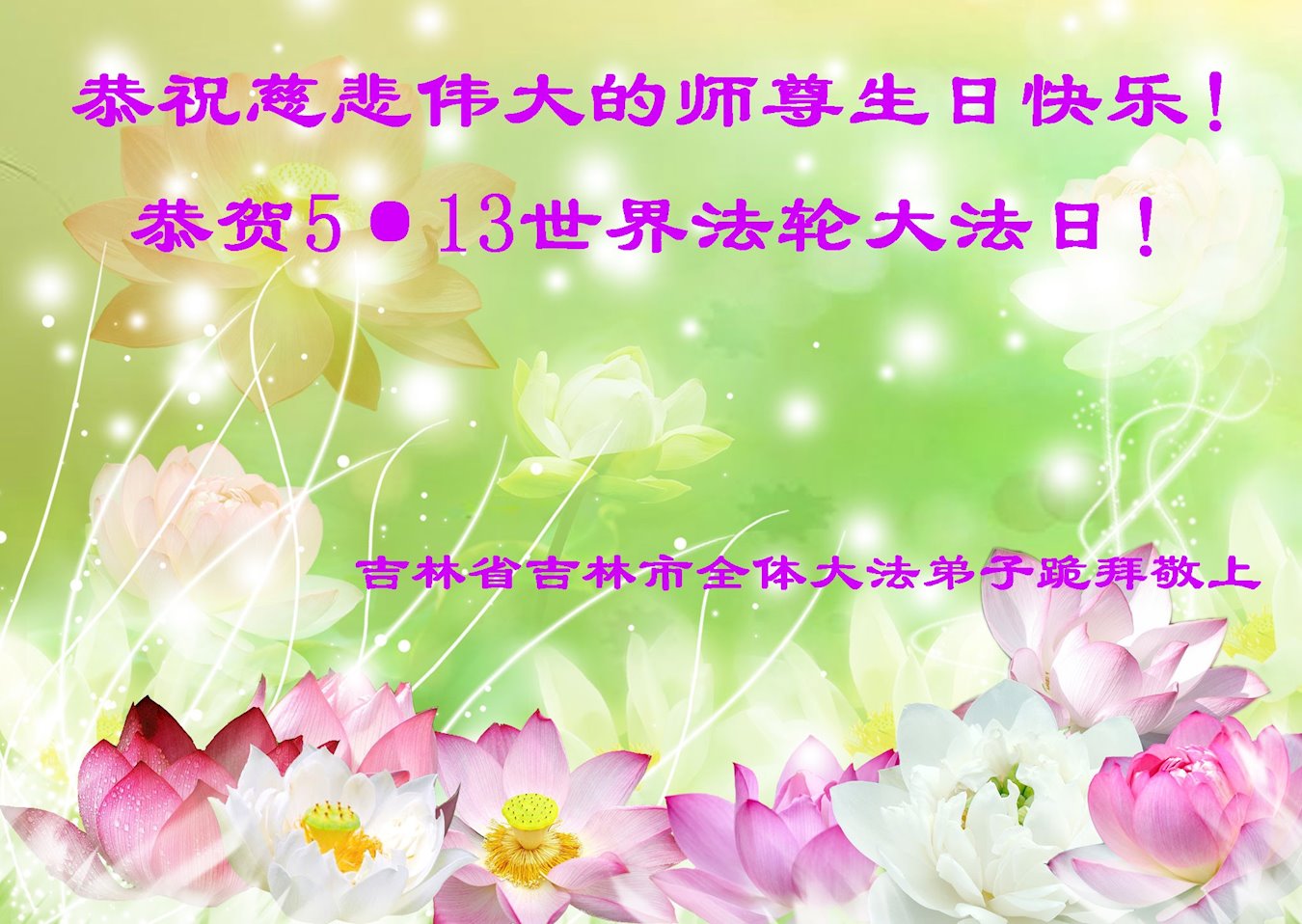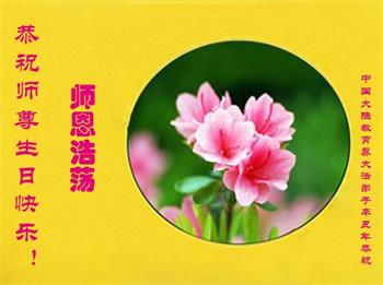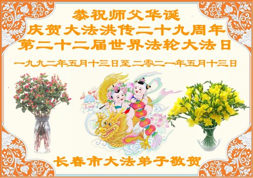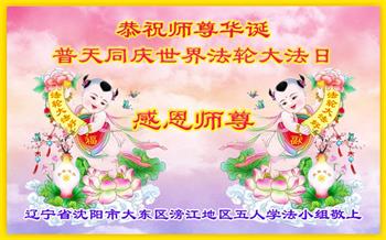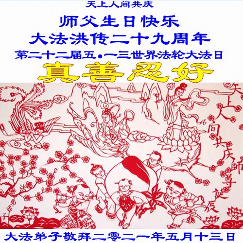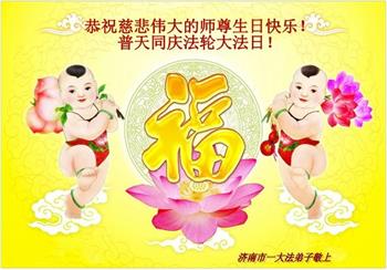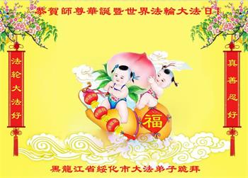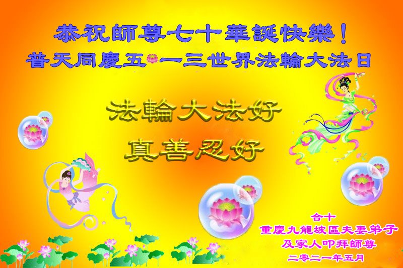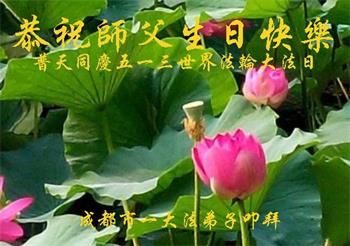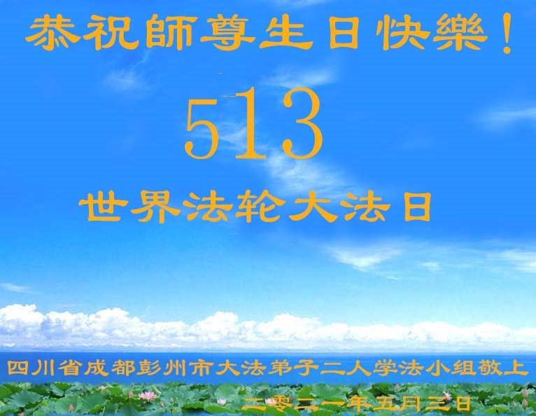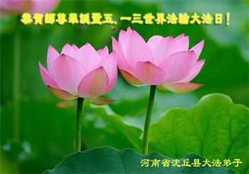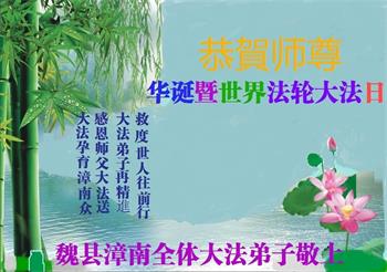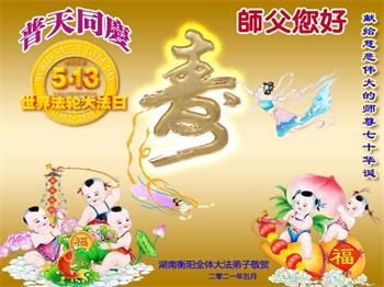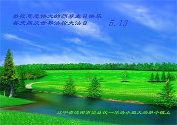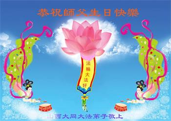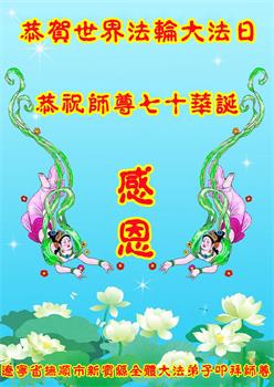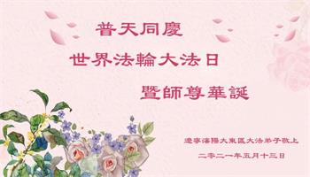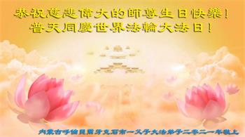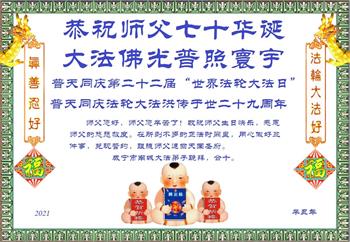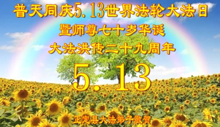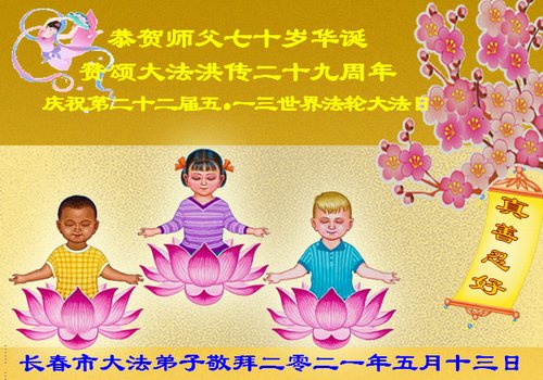 在师尊华诞暨世界法轮大法日来临之际,中国大陆一新学员及家人同修恭祝慈悲伟大的师尊生日快乐!谢谢师尊的慈悲苦度!