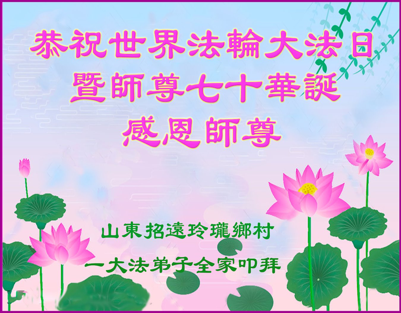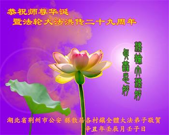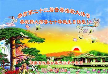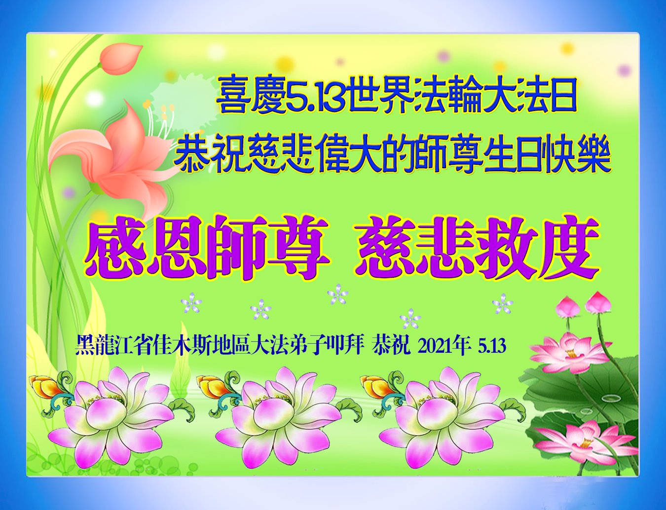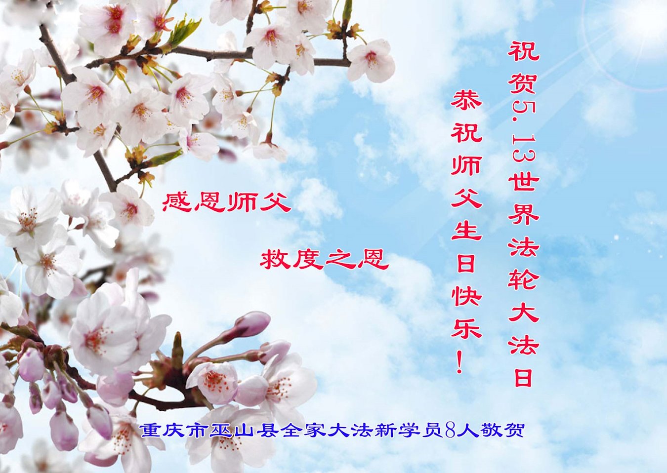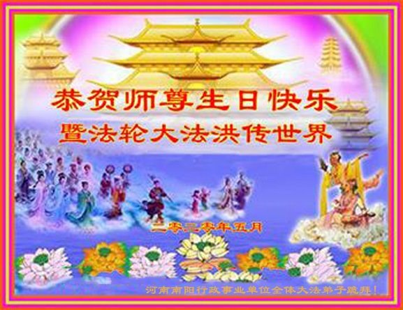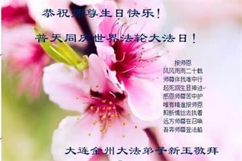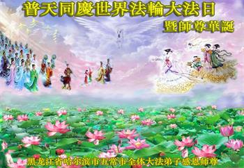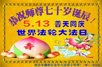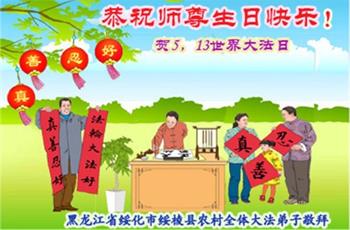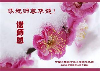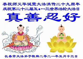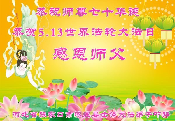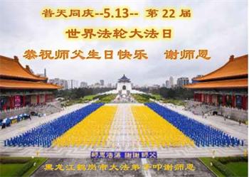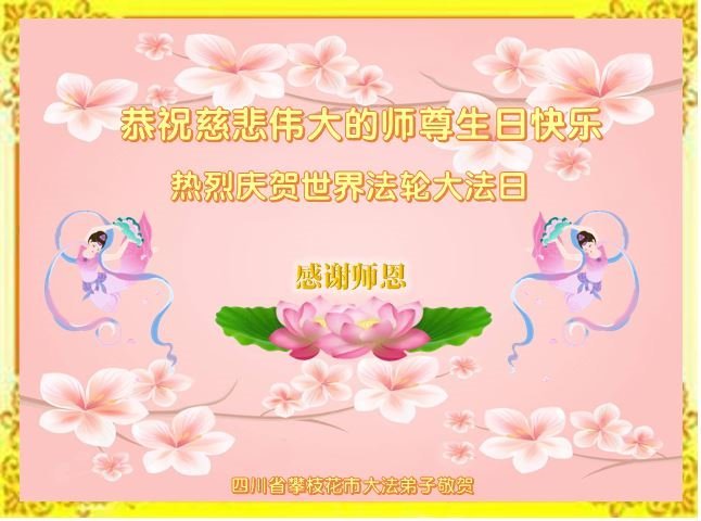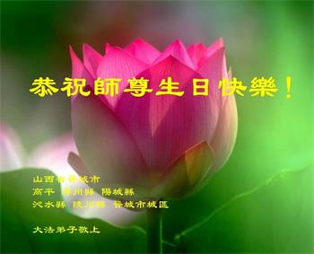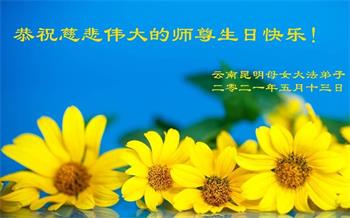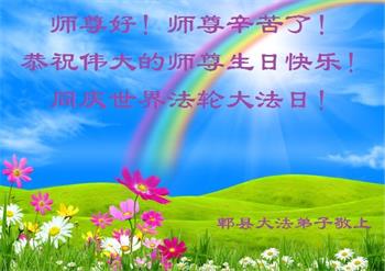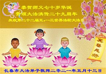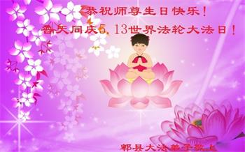 在师尊华诞暨世界法轮大法日来临之际,中国大陆一新学员及家人同修恭祝慈悲伟大的师尊生日快乐!谢谢师尊的慈悲苦度!