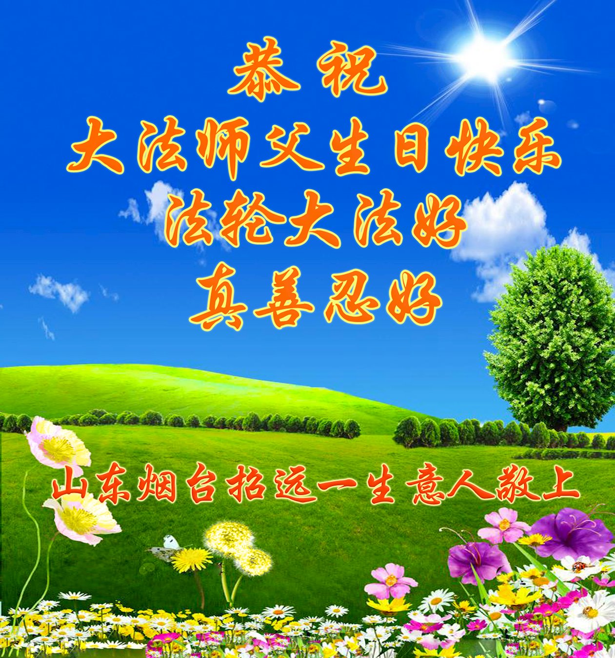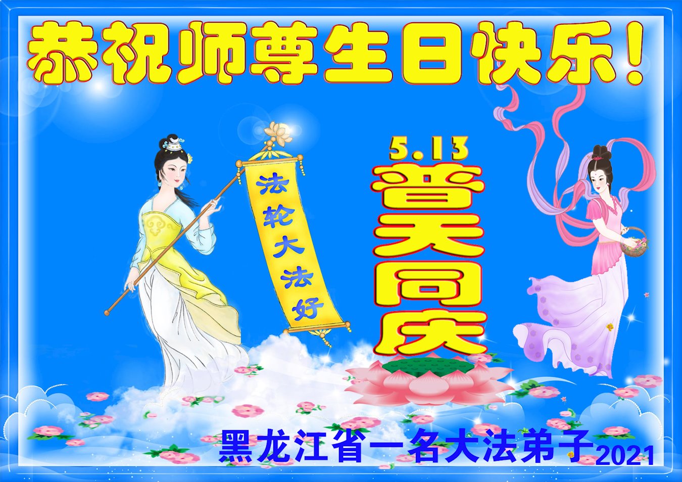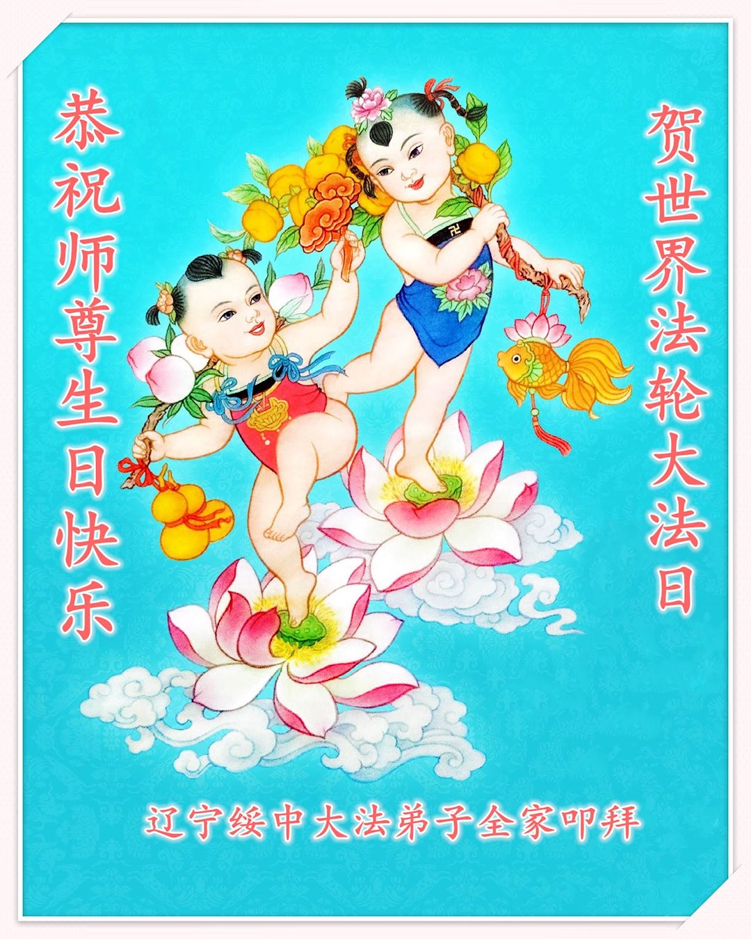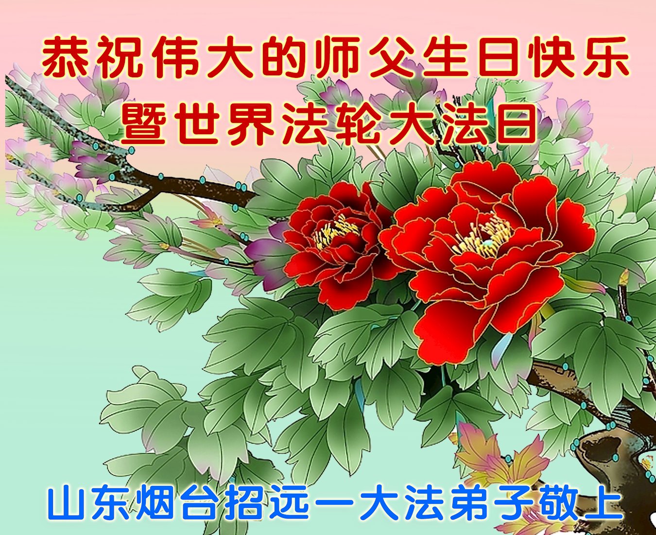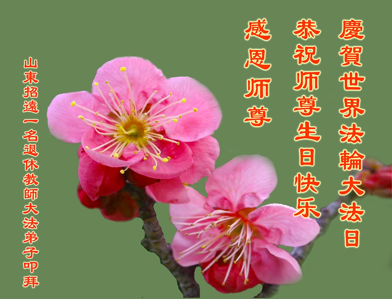 在师尊华诞暨世界法轮大法日来临之际,中国大陆一新学员及家人同修恭祝慈悲伟大的师尊生日快乐!谢谢师尊的慈悲苦度!