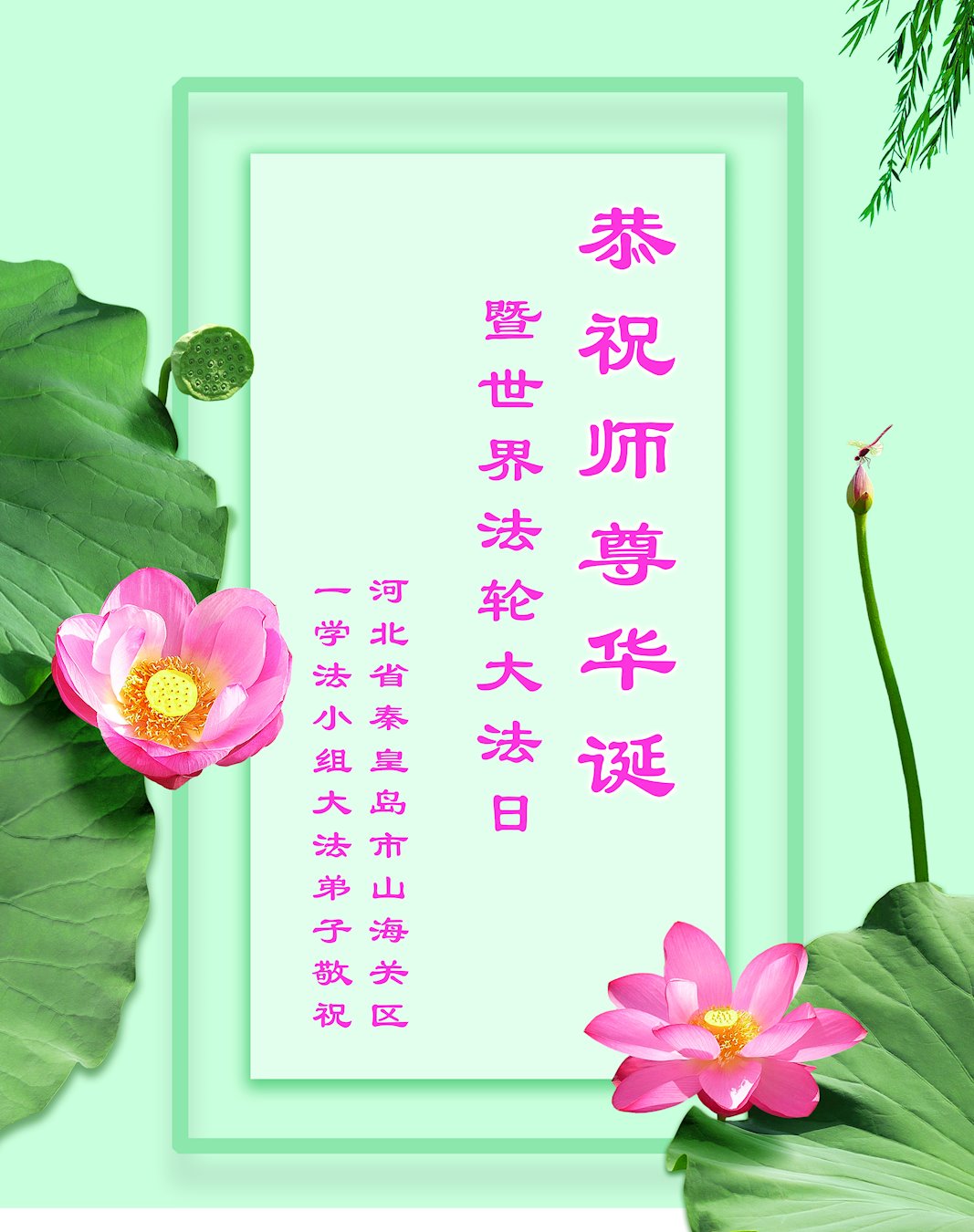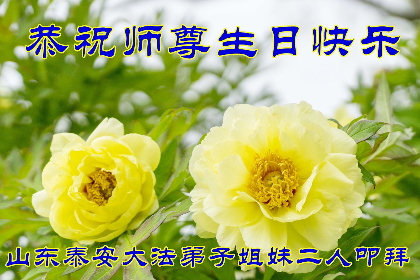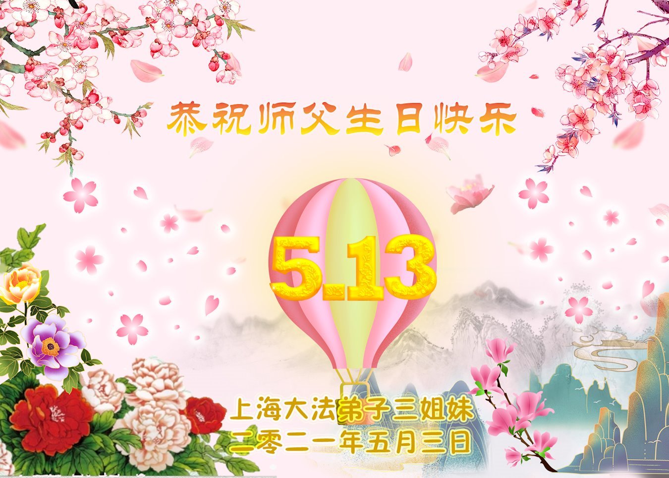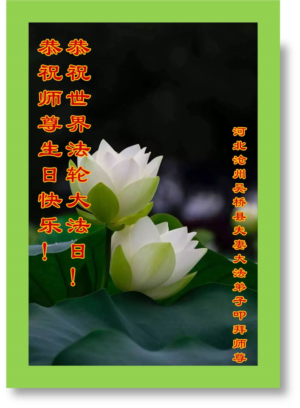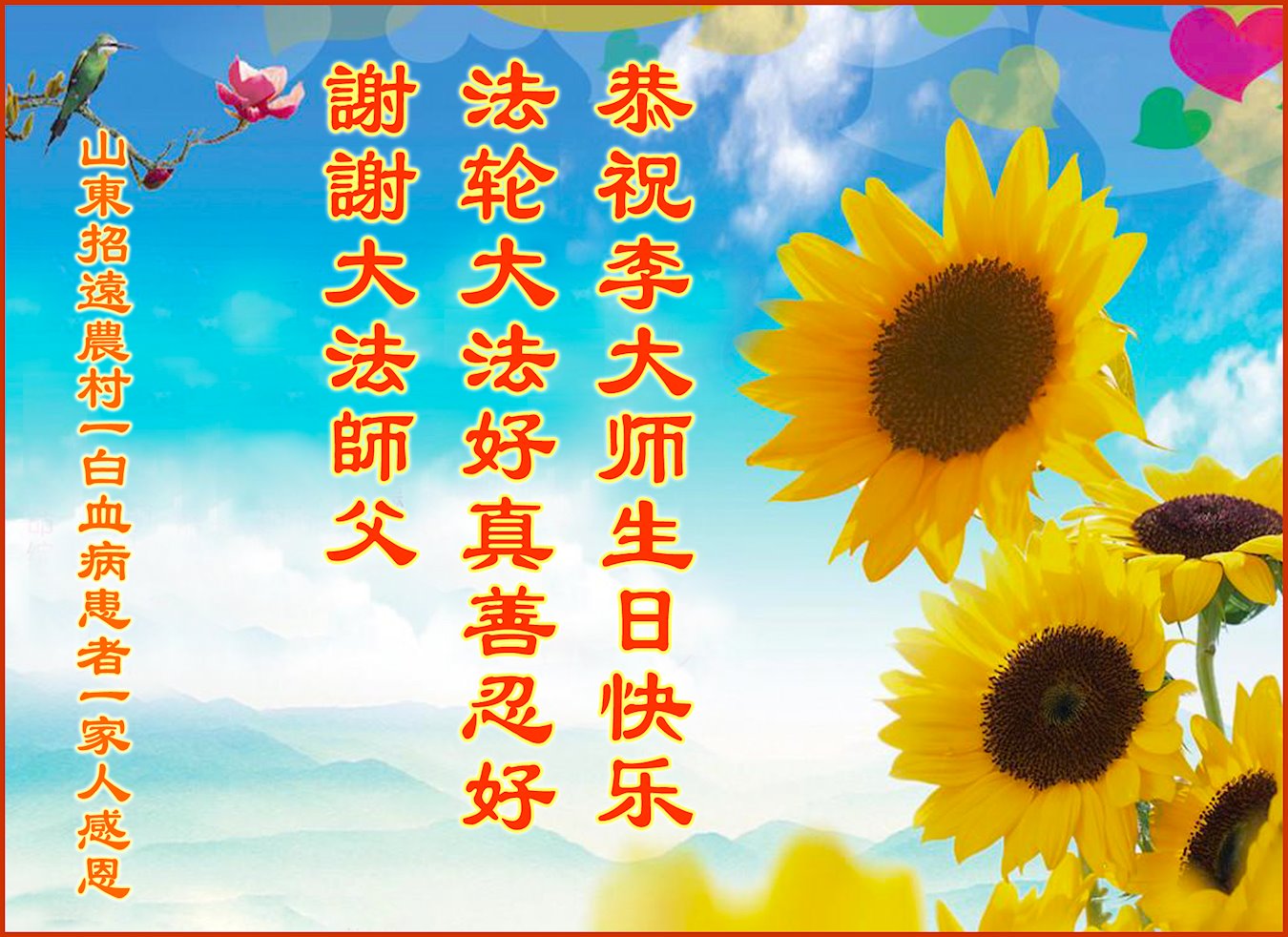 在师尊华诞暨世界法轮大法日来临之际,中国大陆一新学员及家人同修恭祝慈悲伟大的师尊生日快乐!谢谢师尊的慈悲苦度!