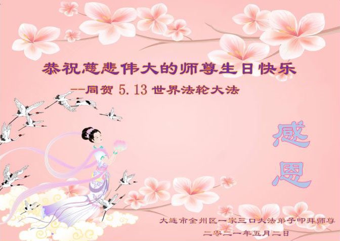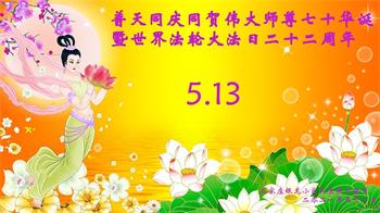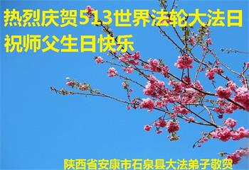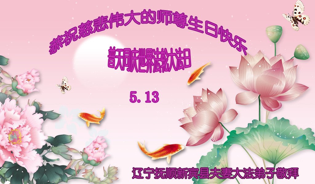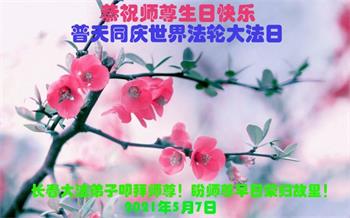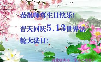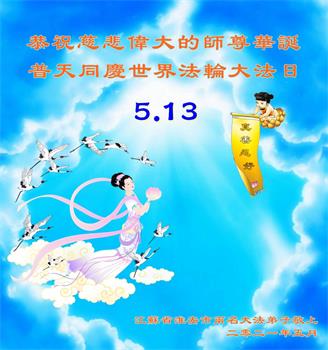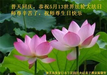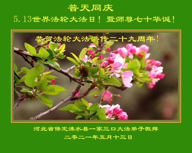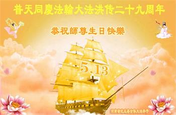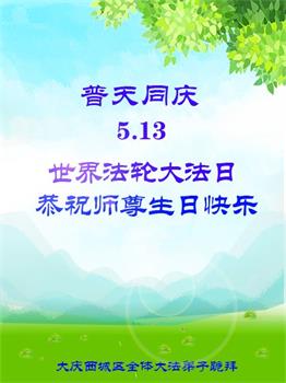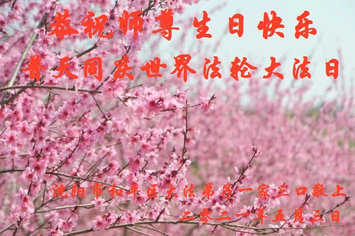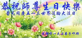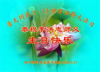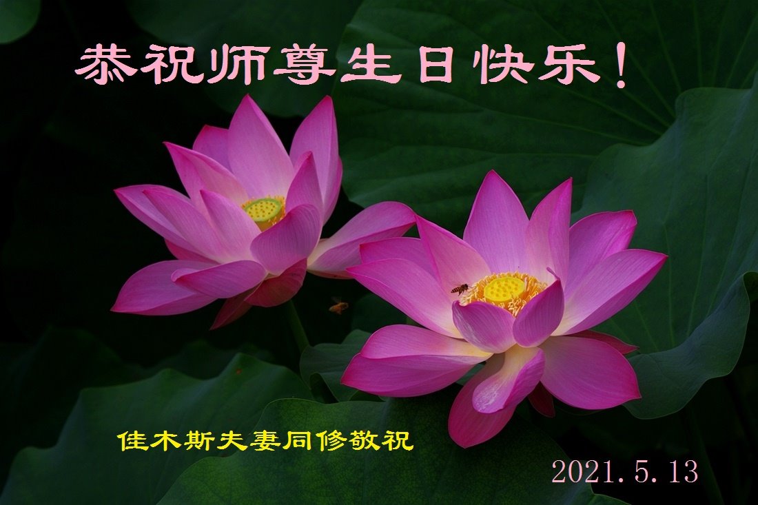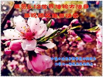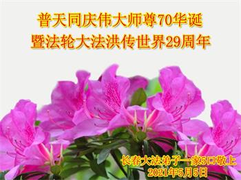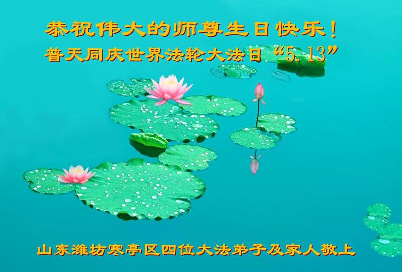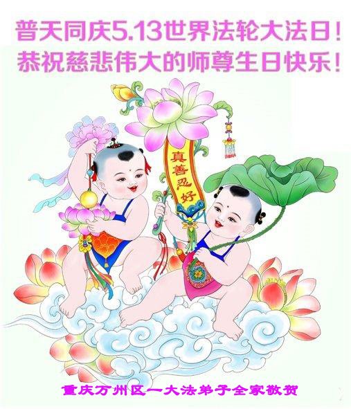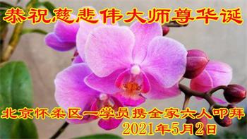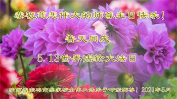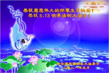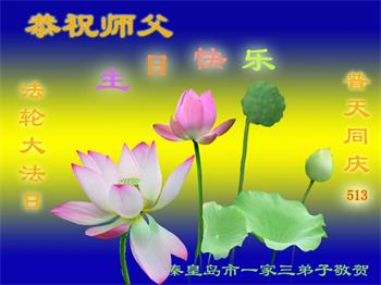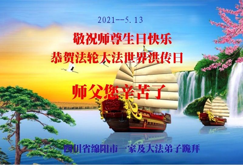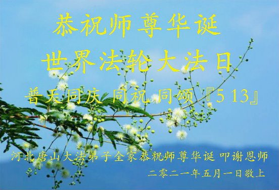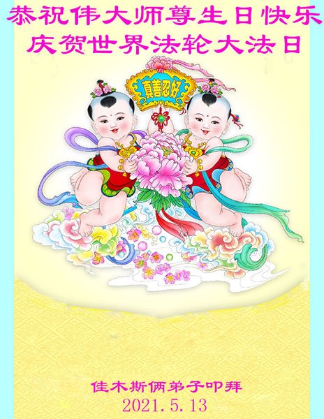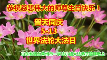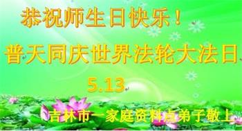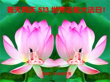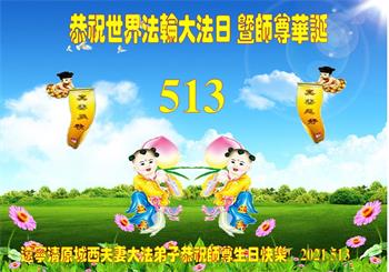 在全世界庆祝“五·一三”法轮大法日之际,我们全家人满怀喜悦庆贺法轮大法洪传世界这个特殊的日子!感恩大法师父救度之恩!恭祝师父生日快乐!