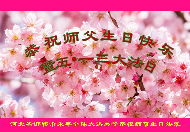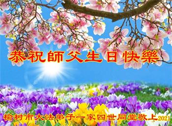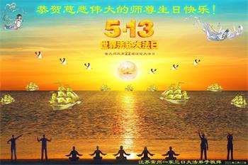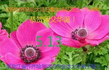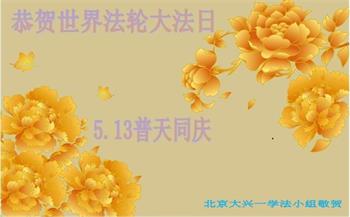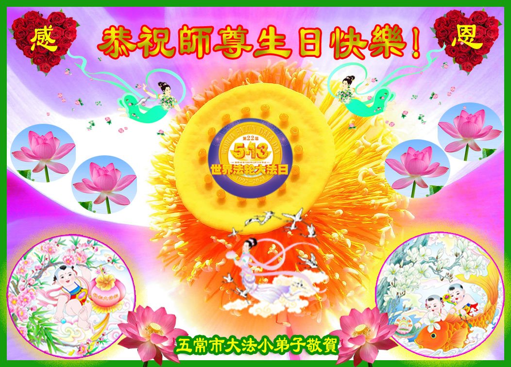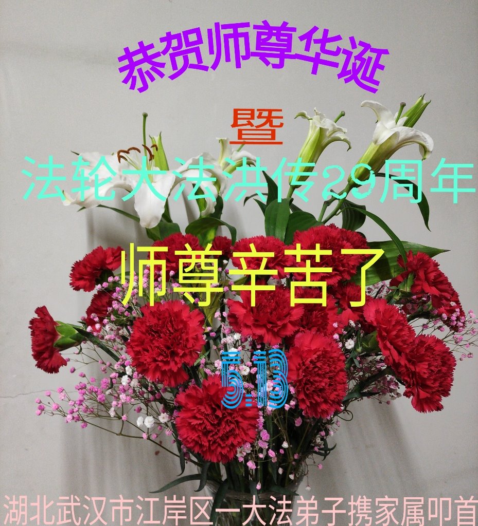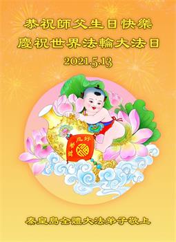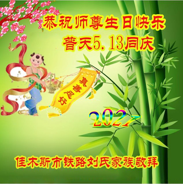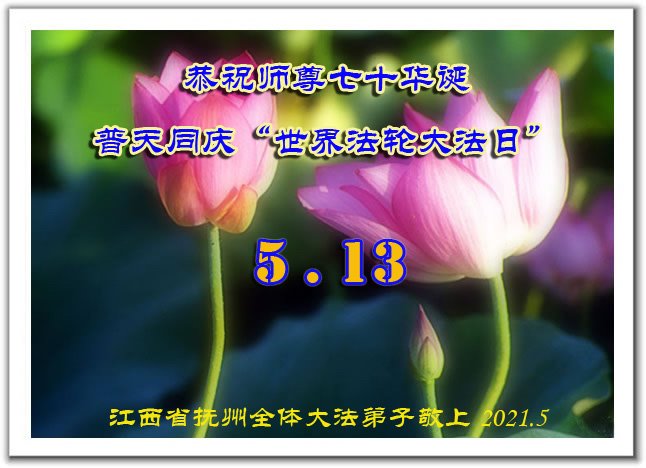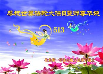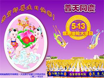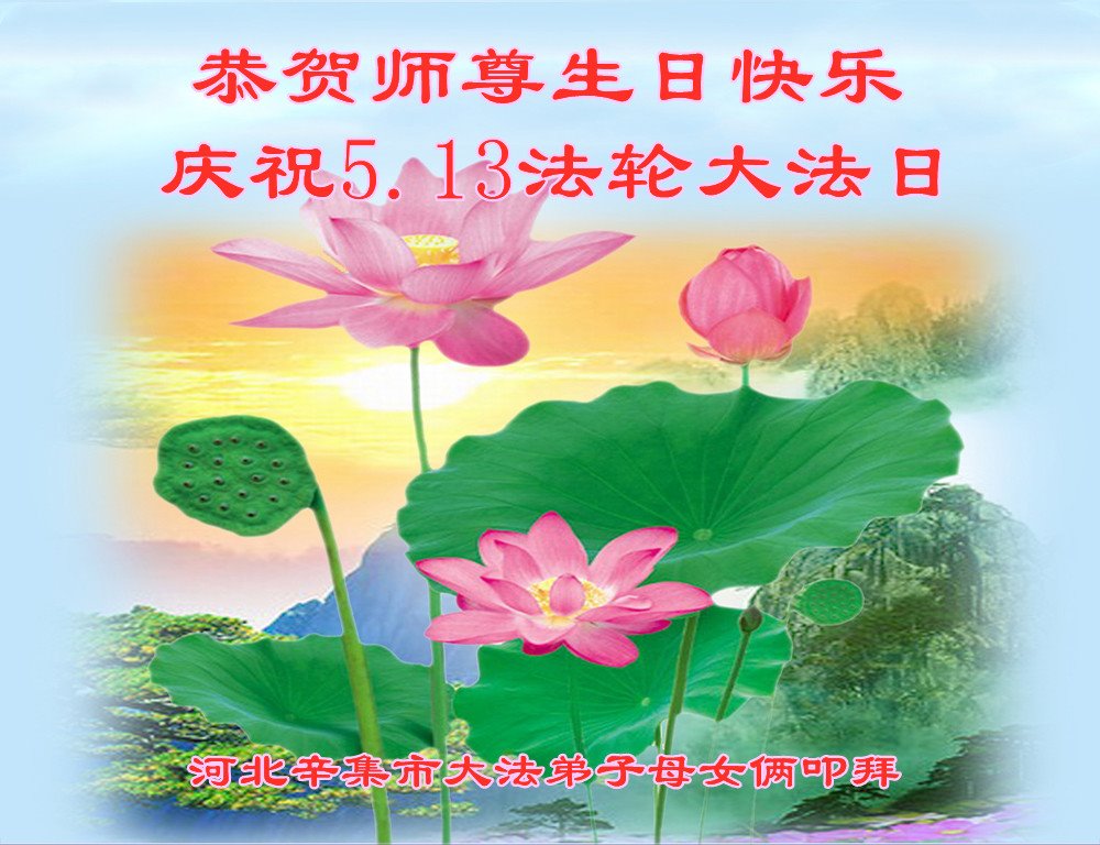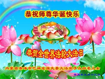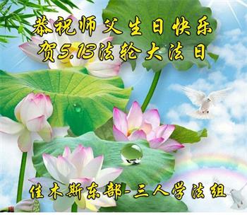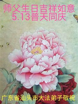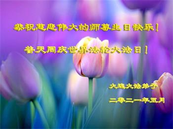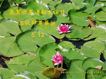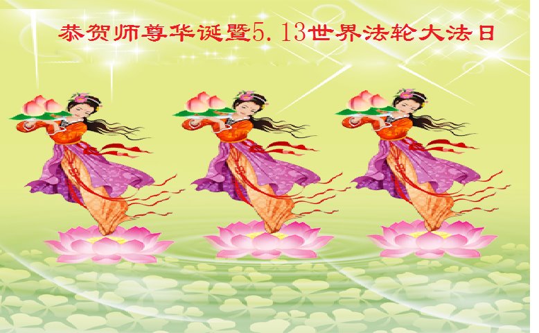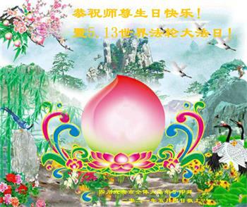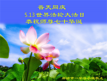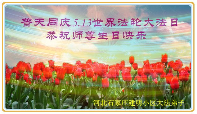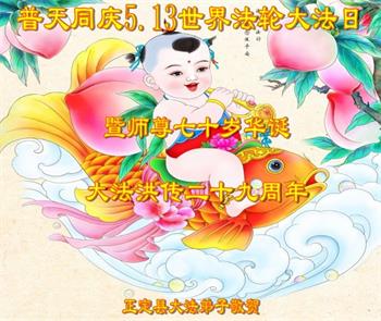 在全世界庆祝“五·一三”法轮大法日之际,我们全家人满怀喜悦庆贺法轮大法洪传世界这个特殊的日子!感恩大法师父救度之恩!恭祝师父生日快乐!