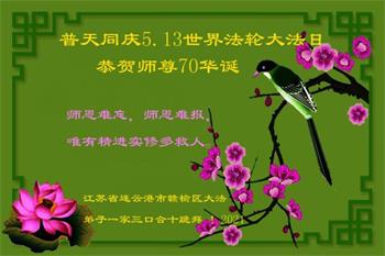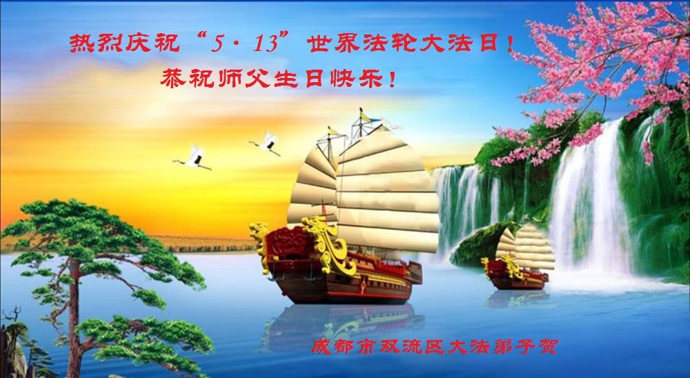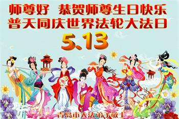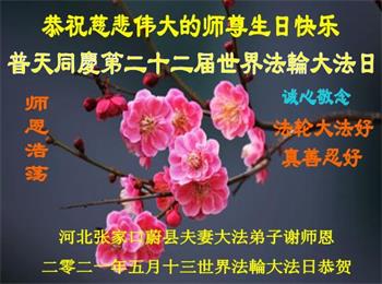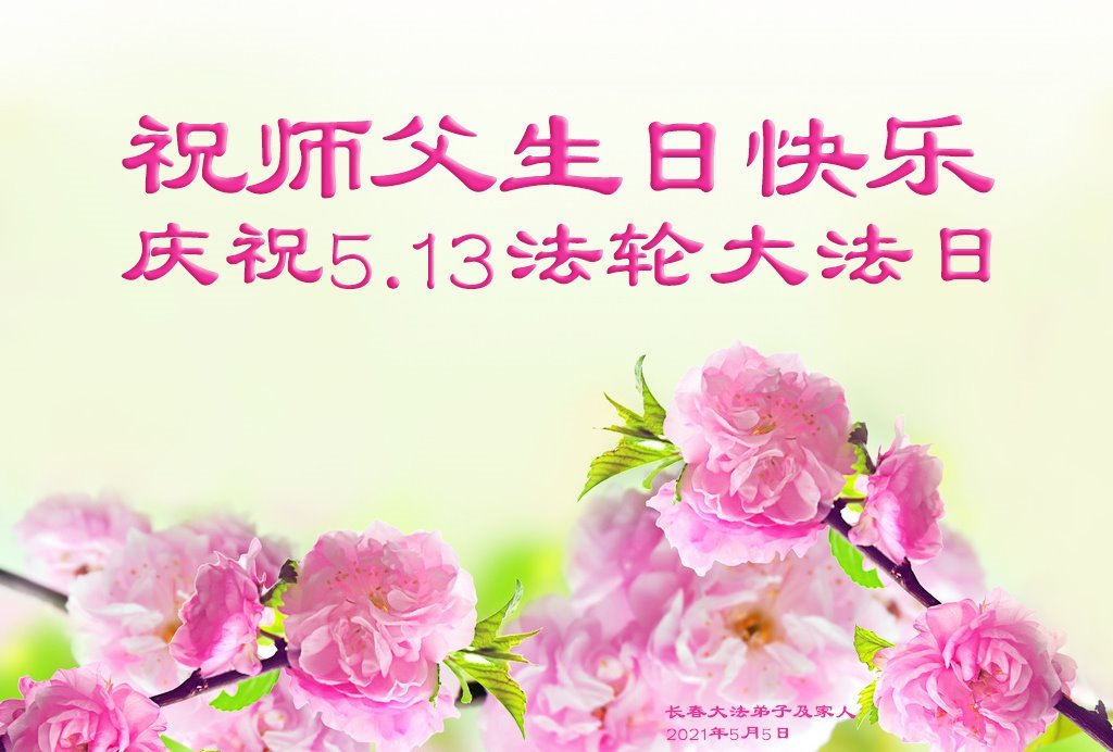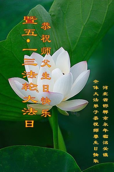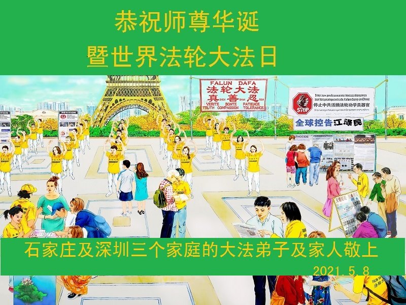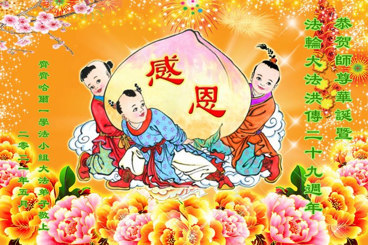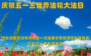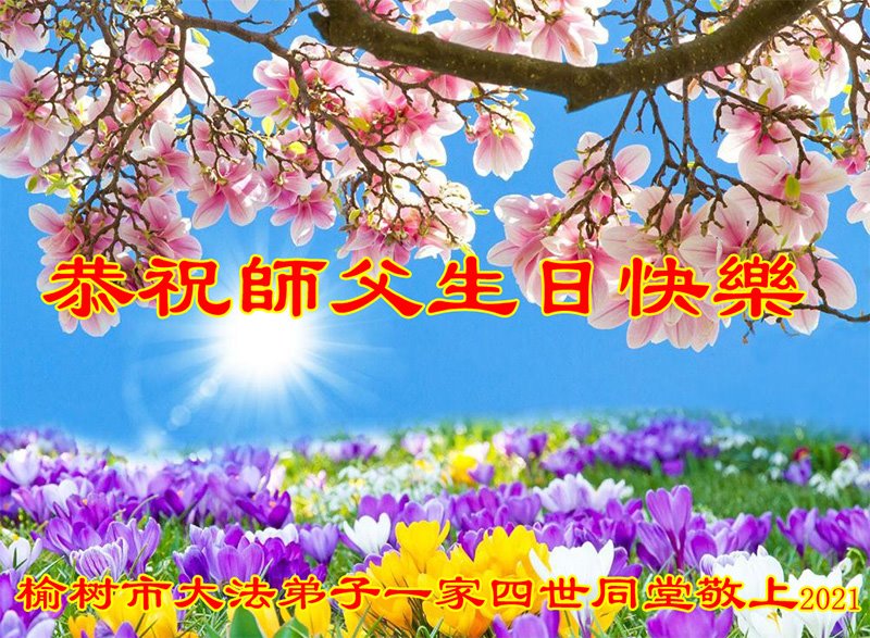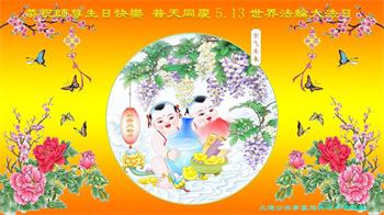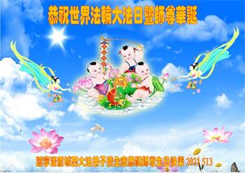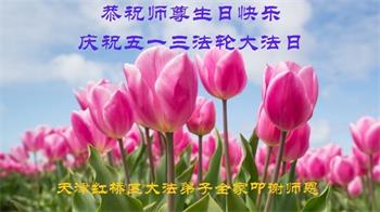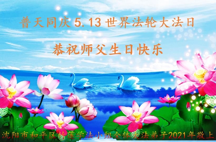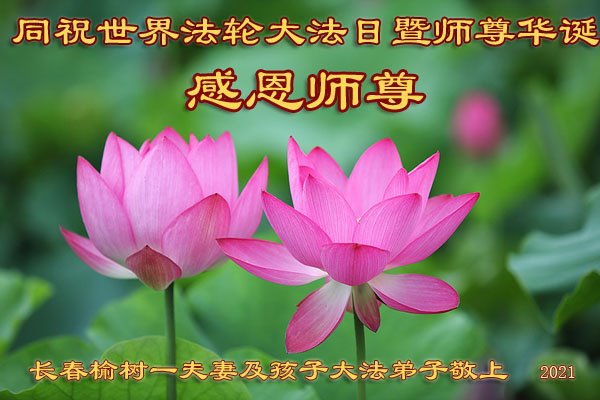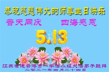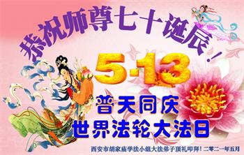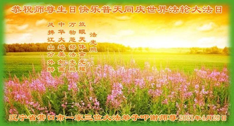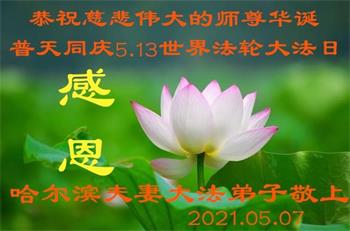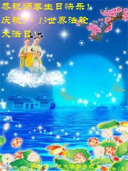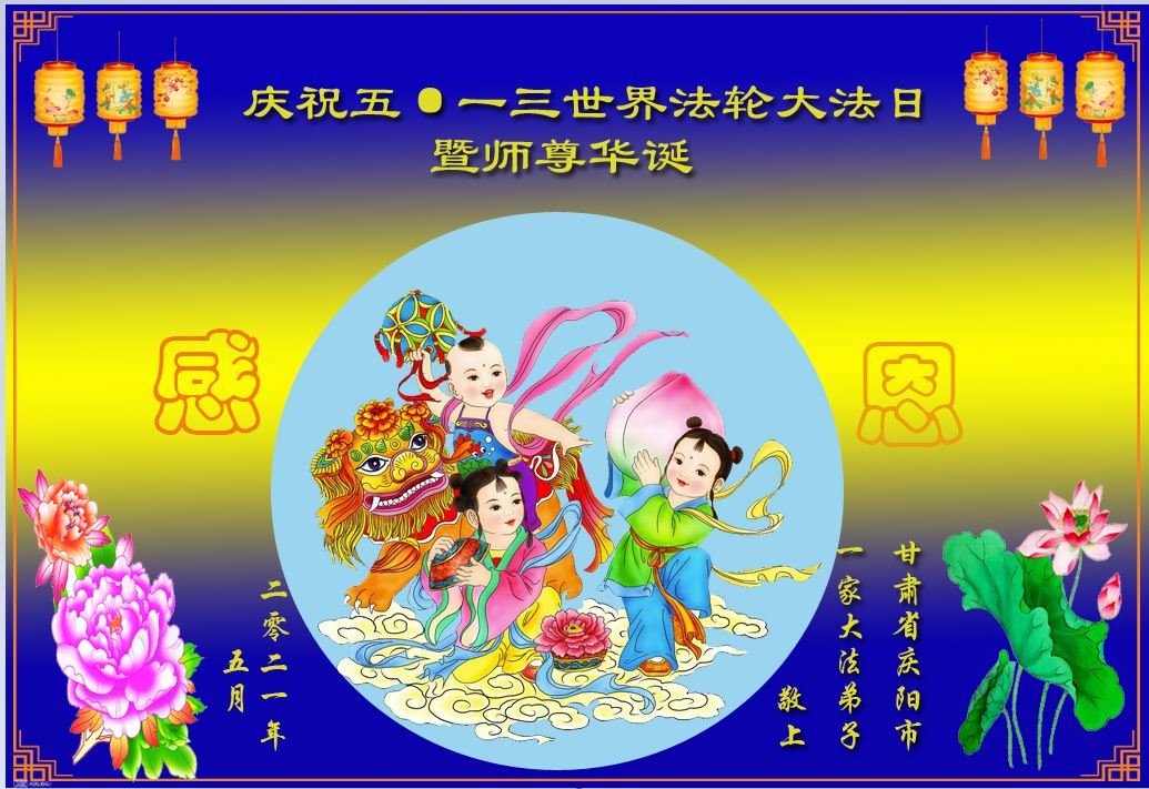 在全世界庆祝“五·一三”法轮大法日之际,我们全家人满怀喜悦庆贺法轮大法洪传世界这个特殊的日子!感恩大法师父救度之恩!恭祝师父生日快乐!