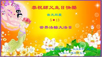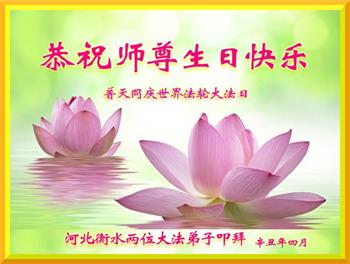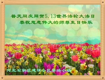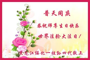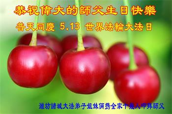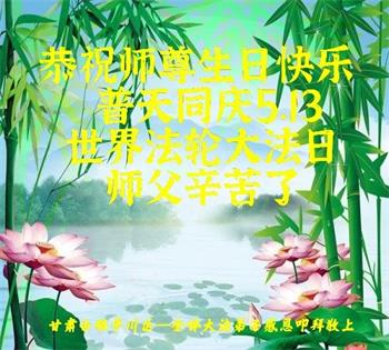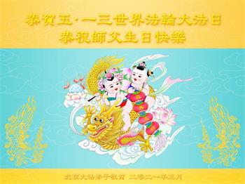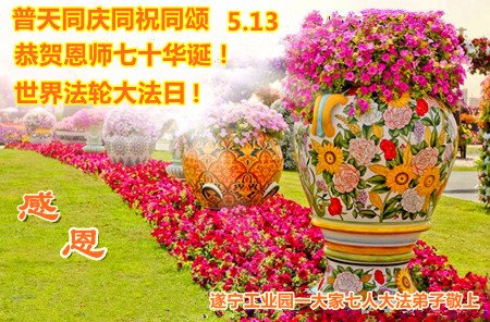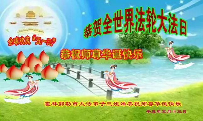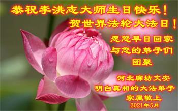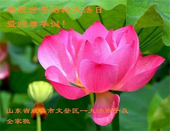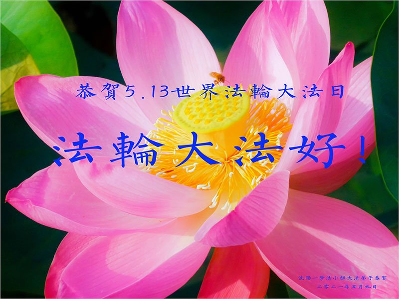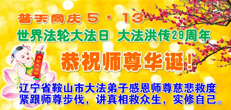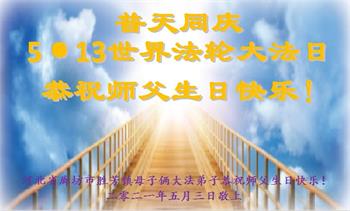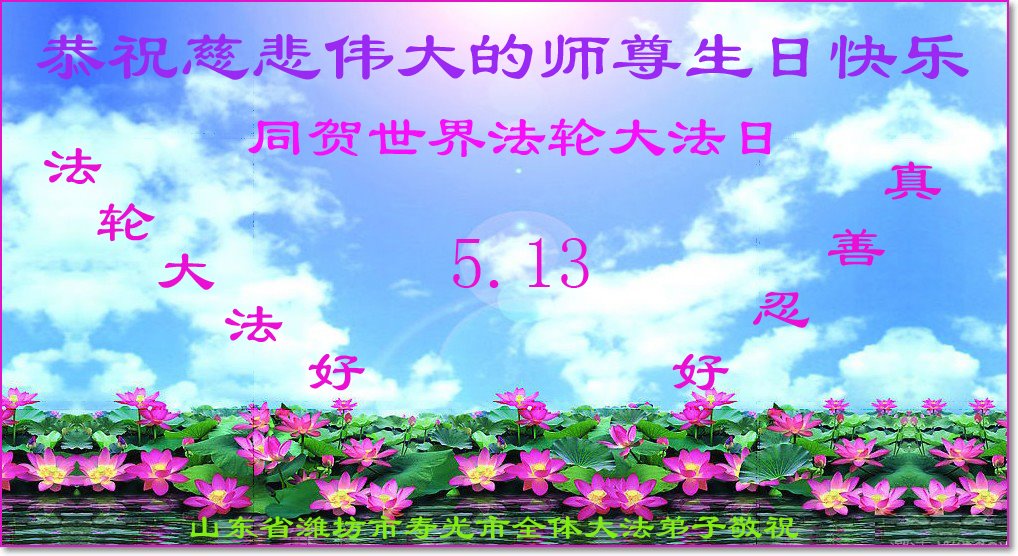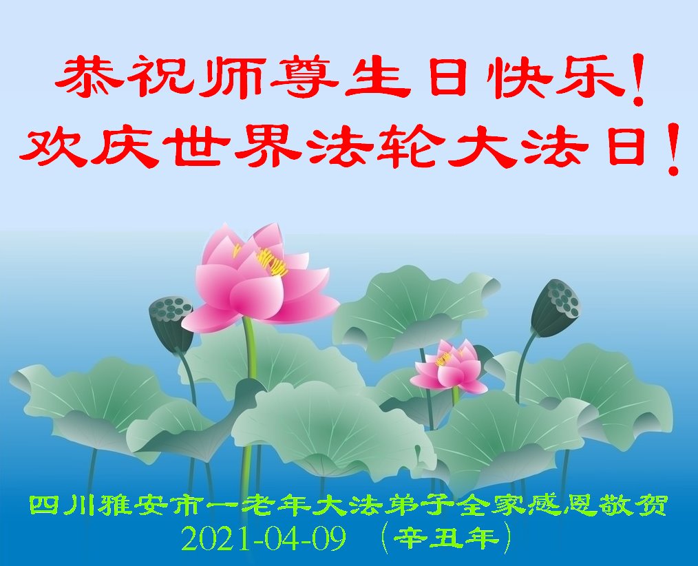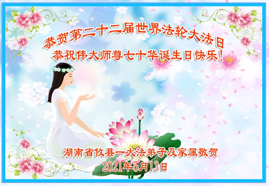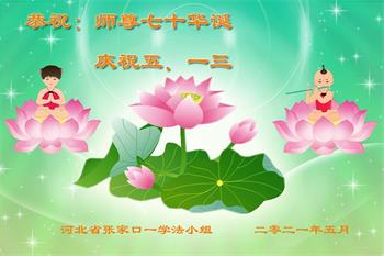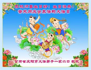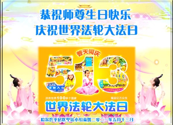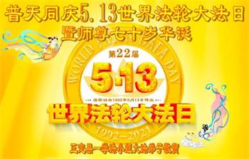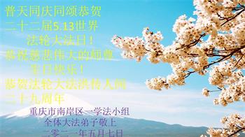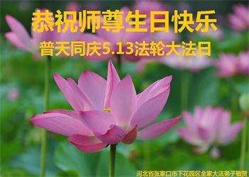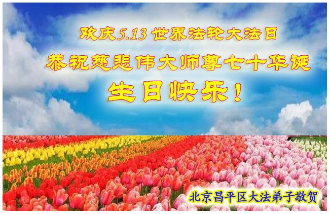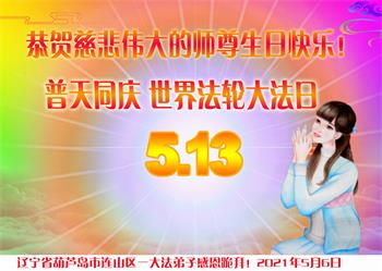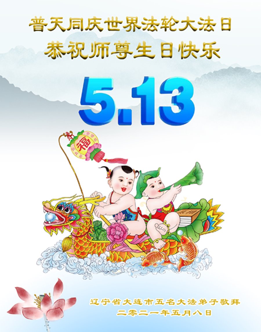 在全世界庆祝“五·一三”法轮大法日之际,我们全家人满怀喜悦庆贺法轮大法洪传世界这个特殊的日子!感恩大法师父救度之恩!恭祝师父生日快乐!