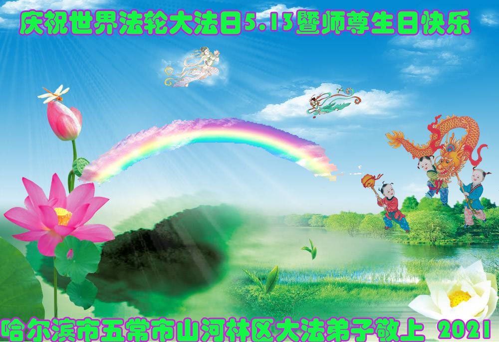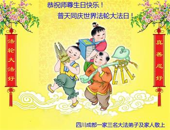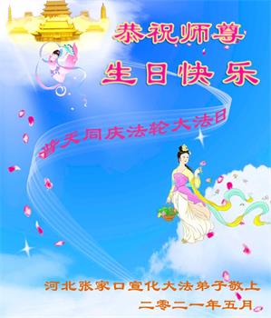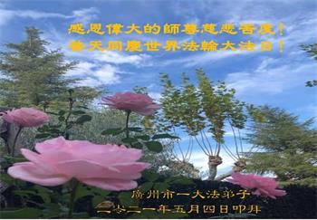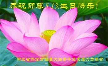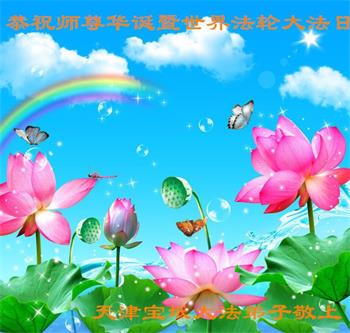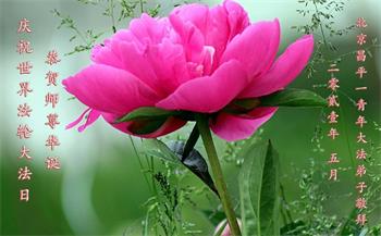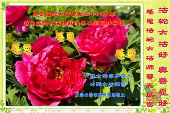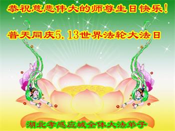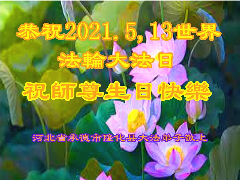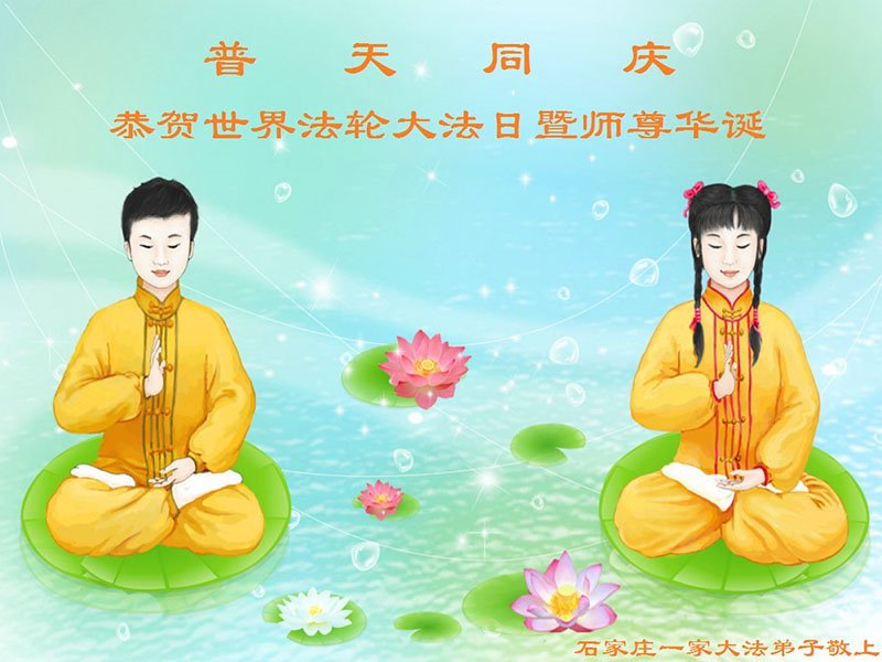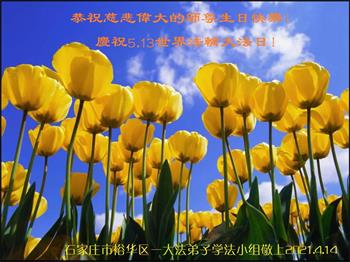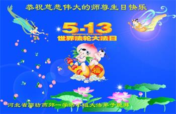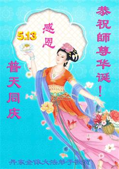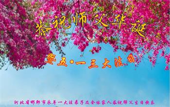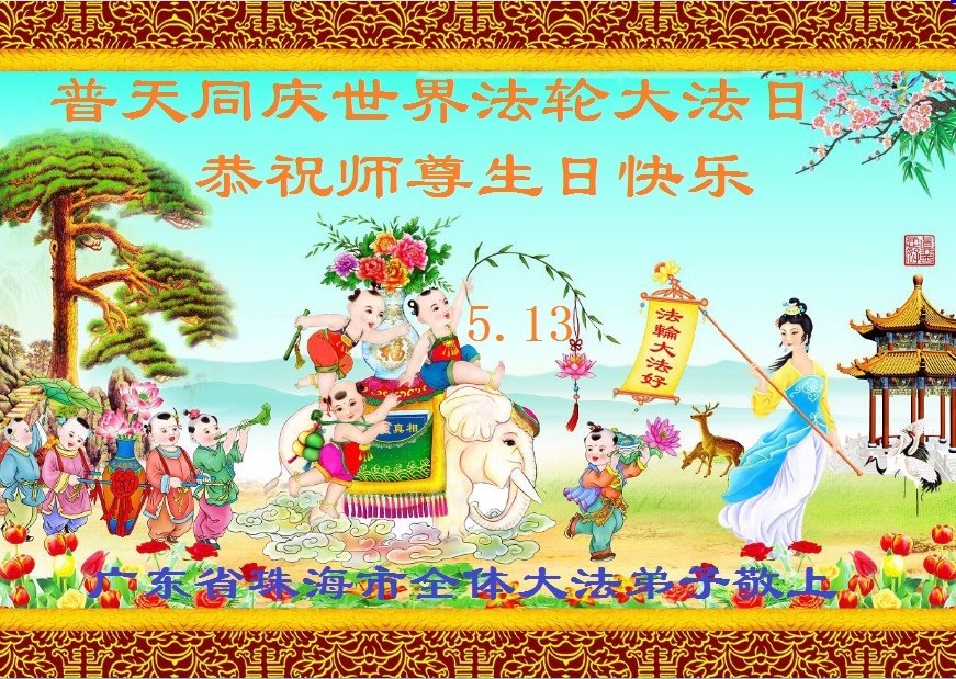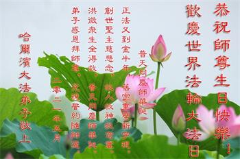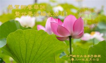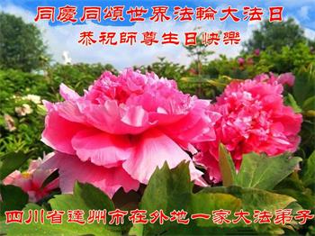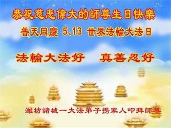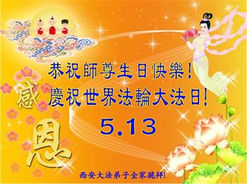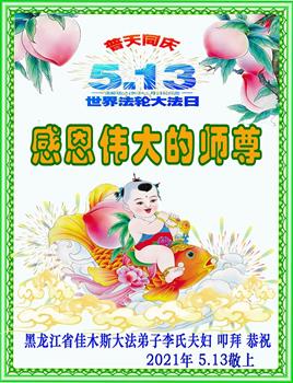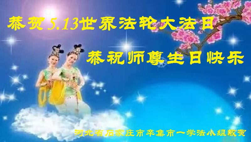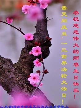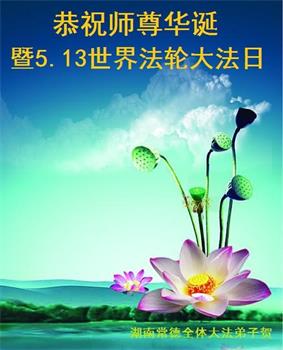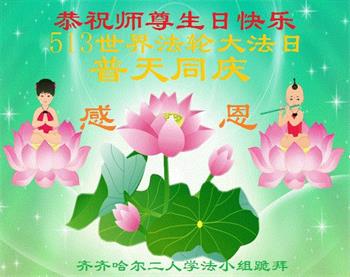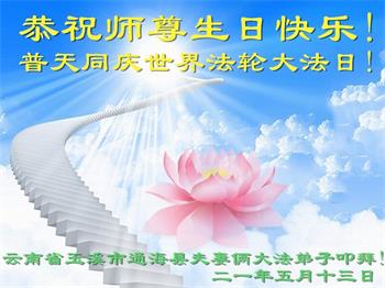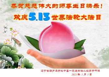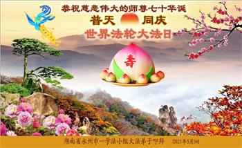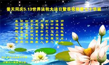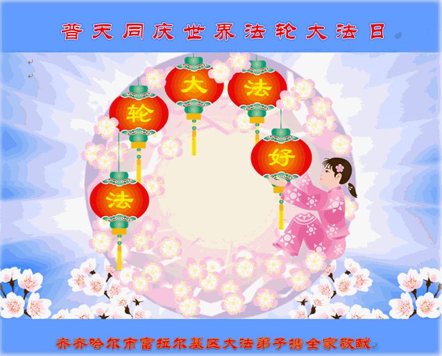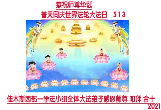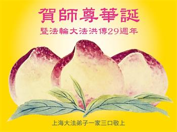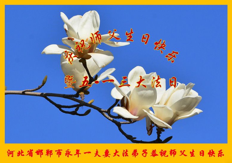 在全世界庆祝“五·一三”法轮大法日之际,我们全家人满怀喜悦庆贺法轮大法洪传世界这个特殊的日子!感恩大法师父救度之恩!恭祝师父生日快乐!