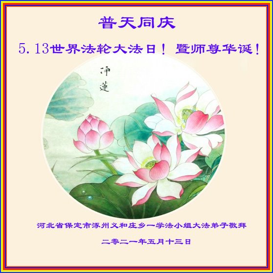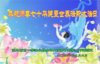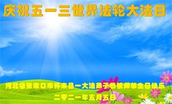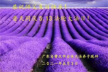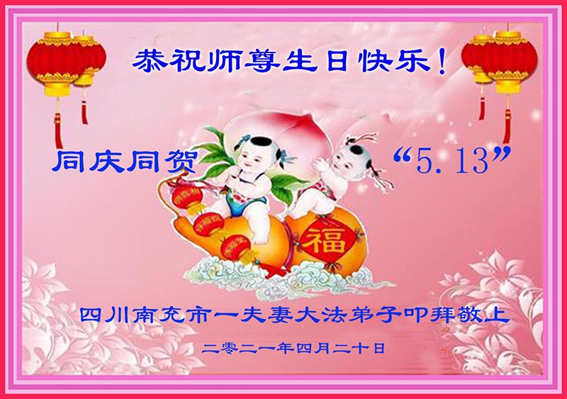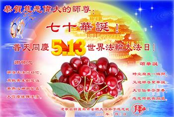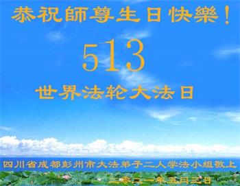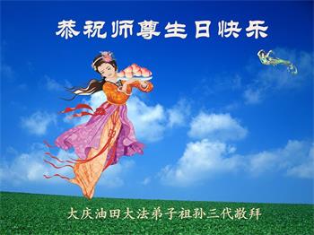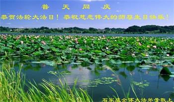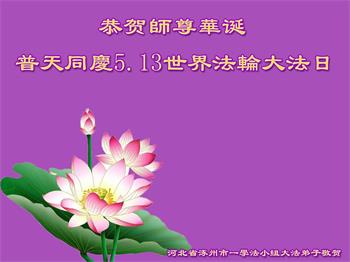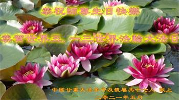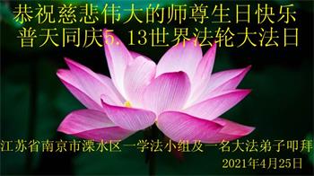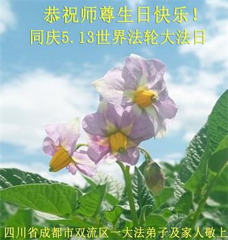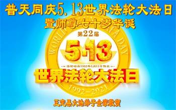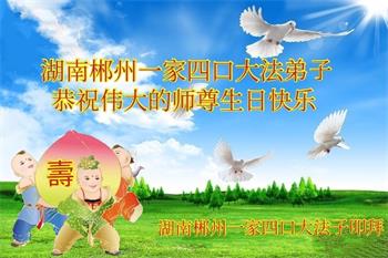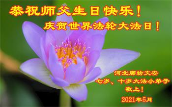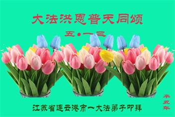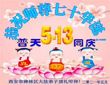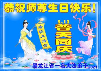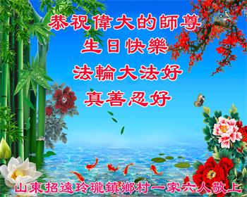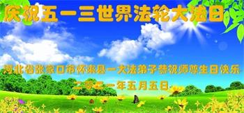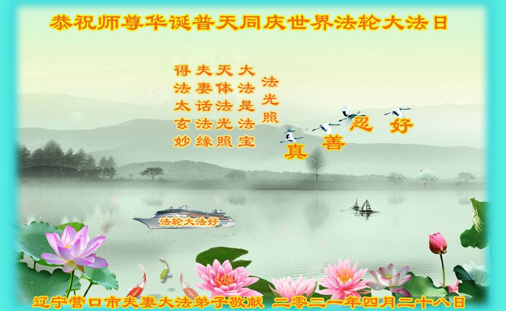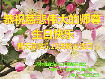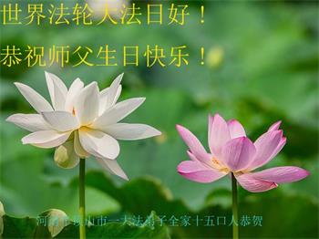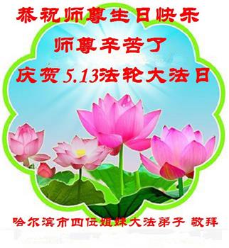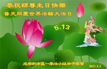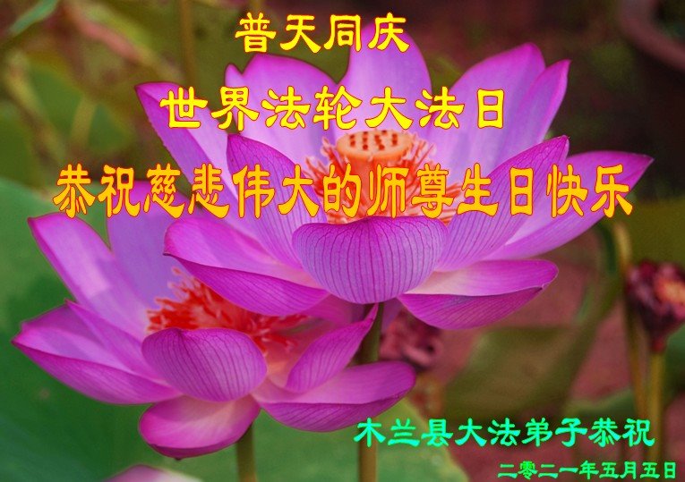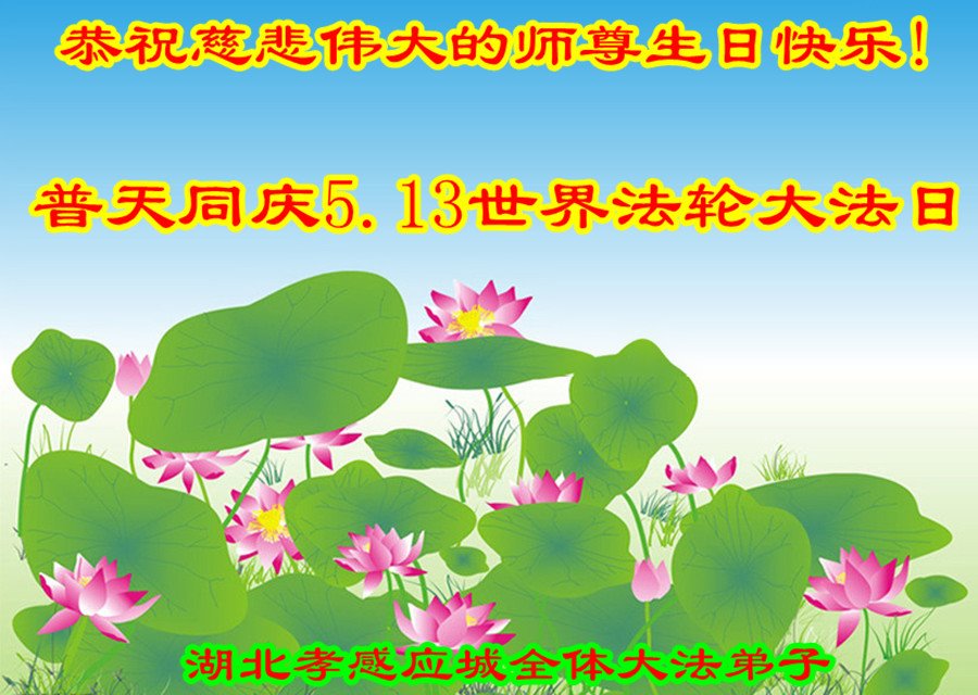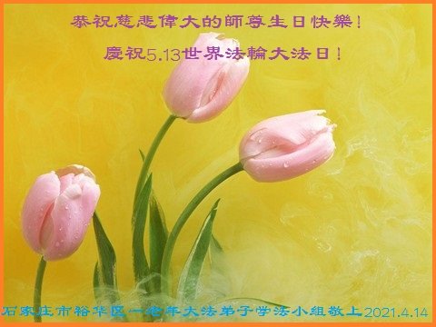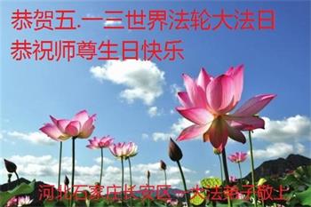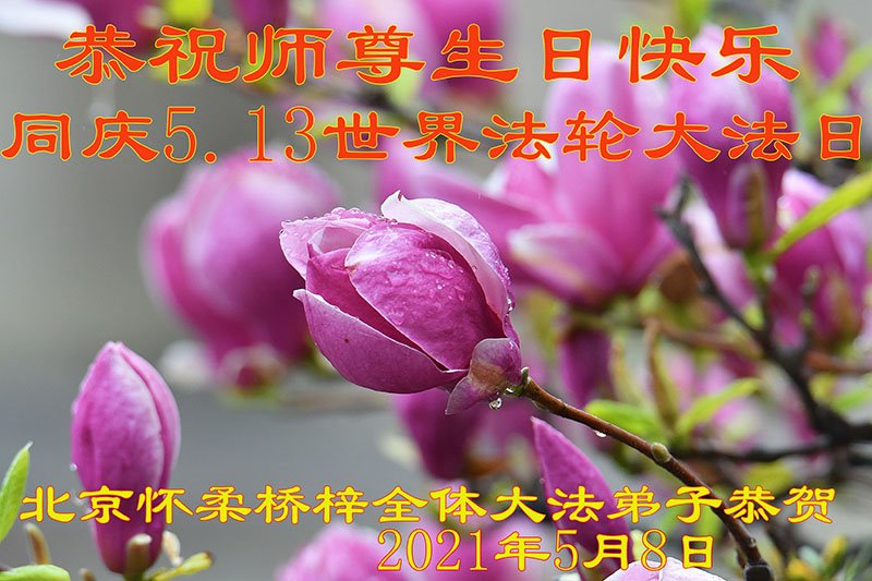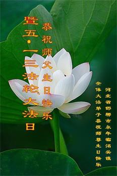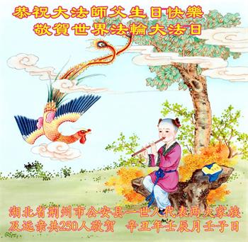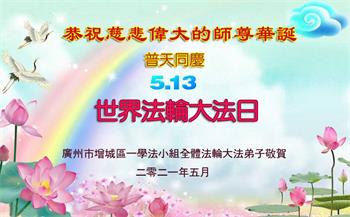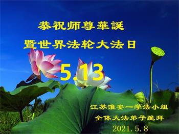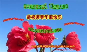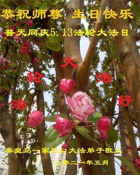 在全世界庆祝“五·一三”法轮大法日之际,我们全家人满怀喜悦庆贺法轮大法洪传世界这个特殊的日子!感恩大法师父救度之恩!恭祝师父生日快乐!
