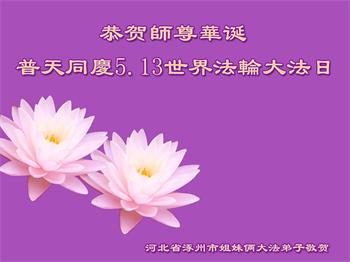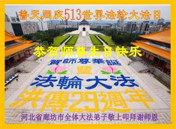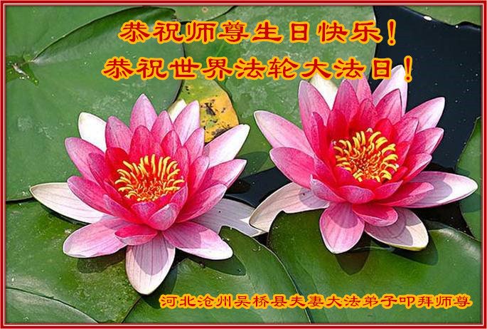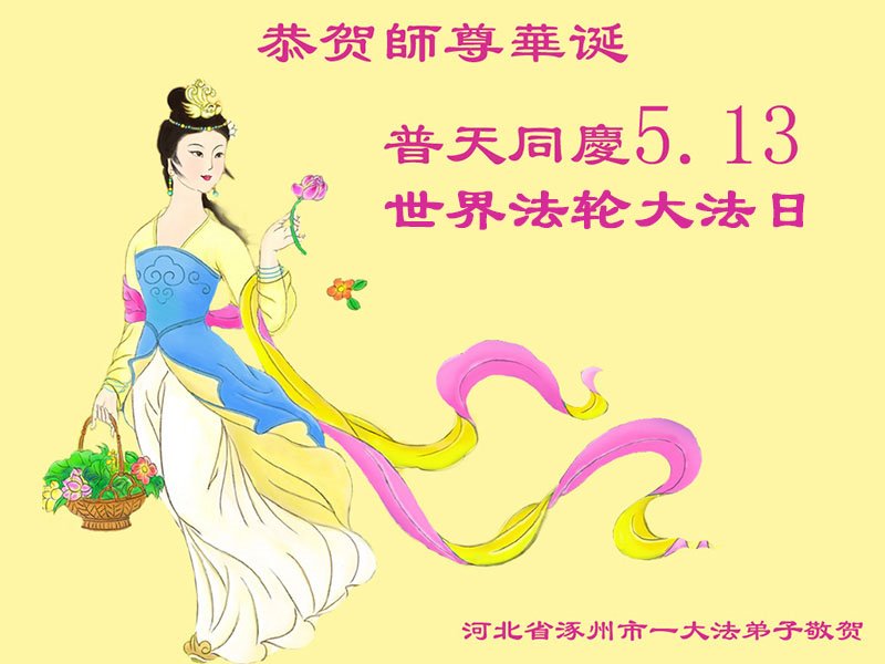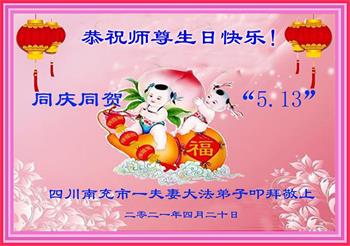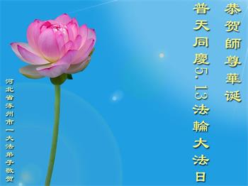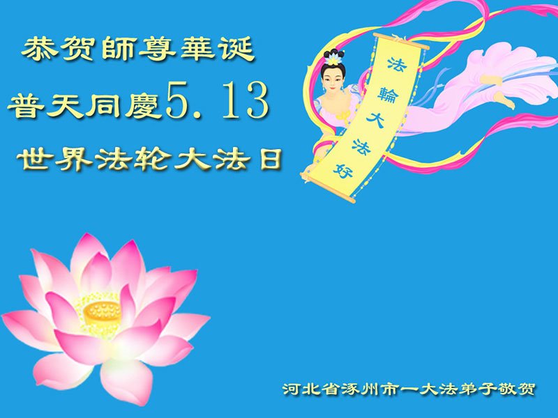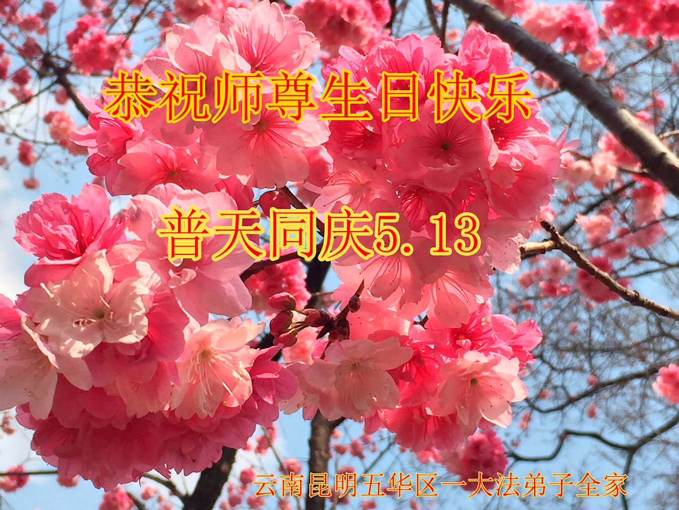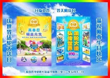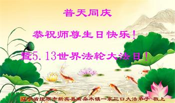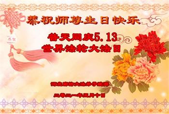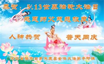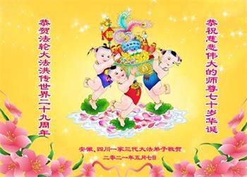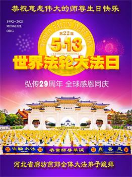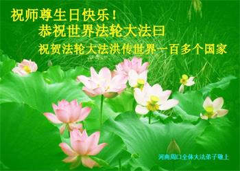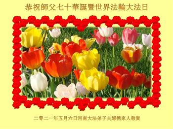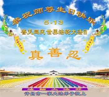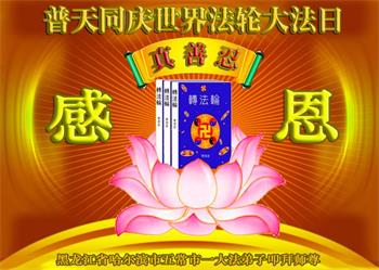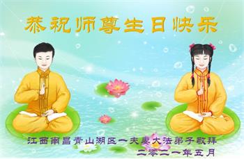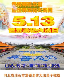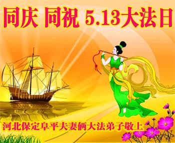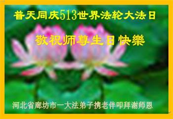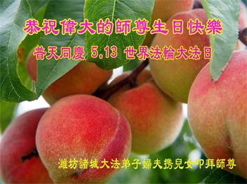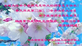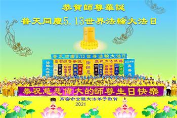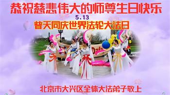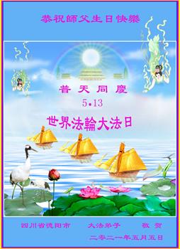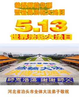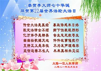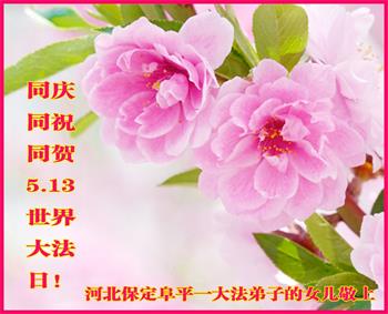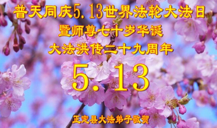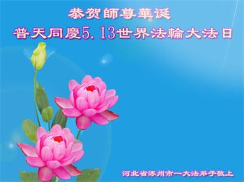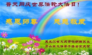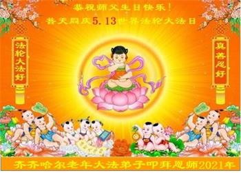 在全世界庆祝“五·一三”法轮大法日之际,我们全家人满怀喜悦庆贺法轮大法洪传世界这个特殊的日子!感恩大法师父救度之恩!恭祝师父生日快乐!